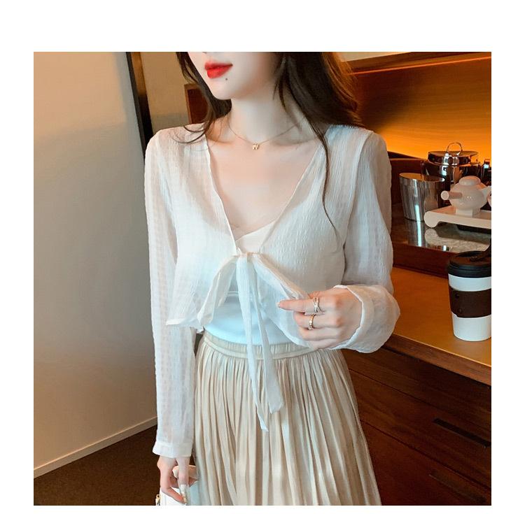 Chaqueta Chal Pequeño para Mujer 2025 Primavera y Verano Nuevo Estilo Chaleco Pequeño Versátil Ropa de Protección Solar de Gasa Ultradelgada Cárdigan Exterior Corto