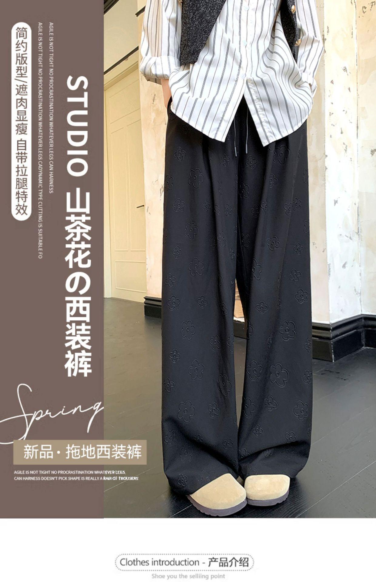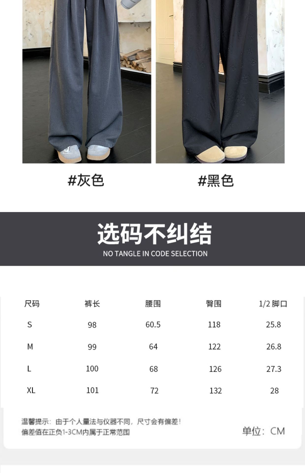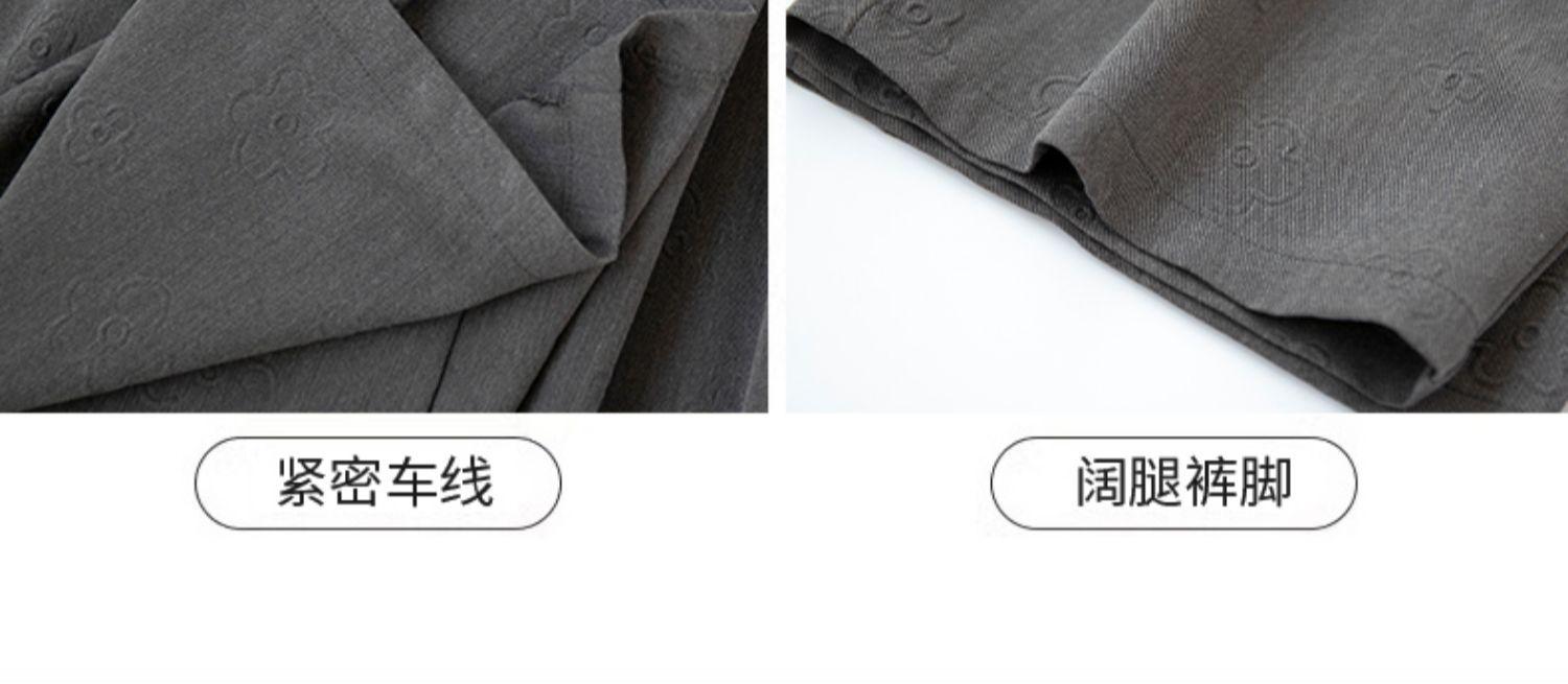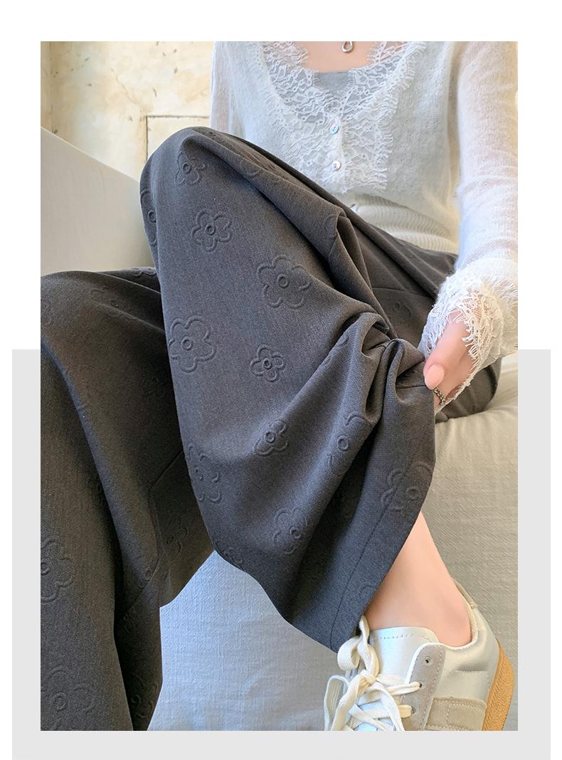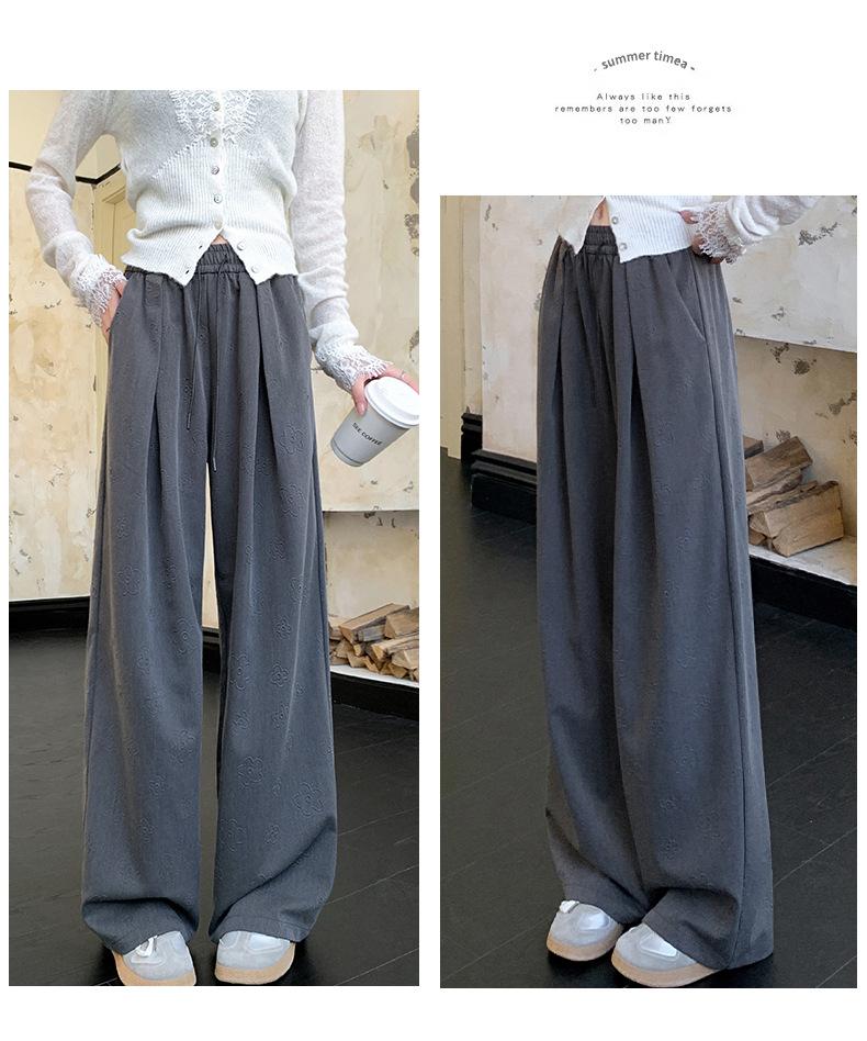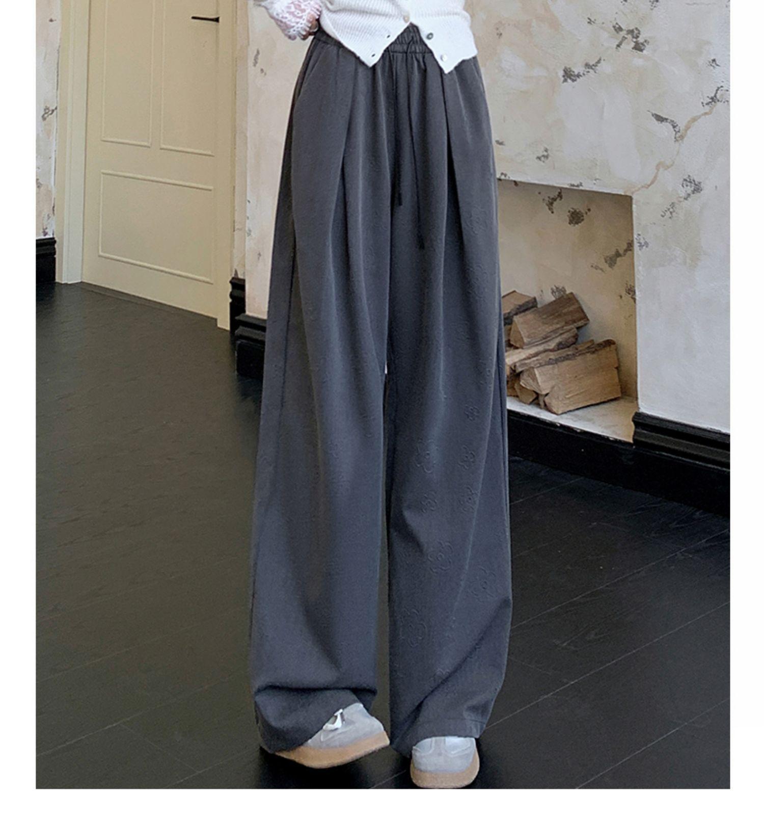 Pantalones grises de pierna ancha en relieve para mujer Primavera y Otoño 2024 Nuevo sentido del diseño Cintura alta Adelgazantes Sentido de la pose Pantalones casuales texturizados