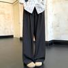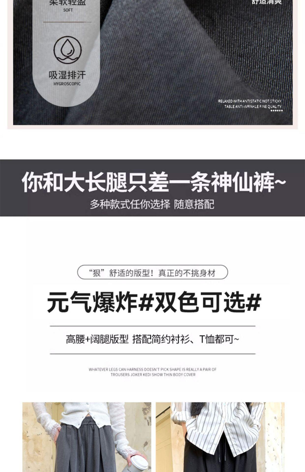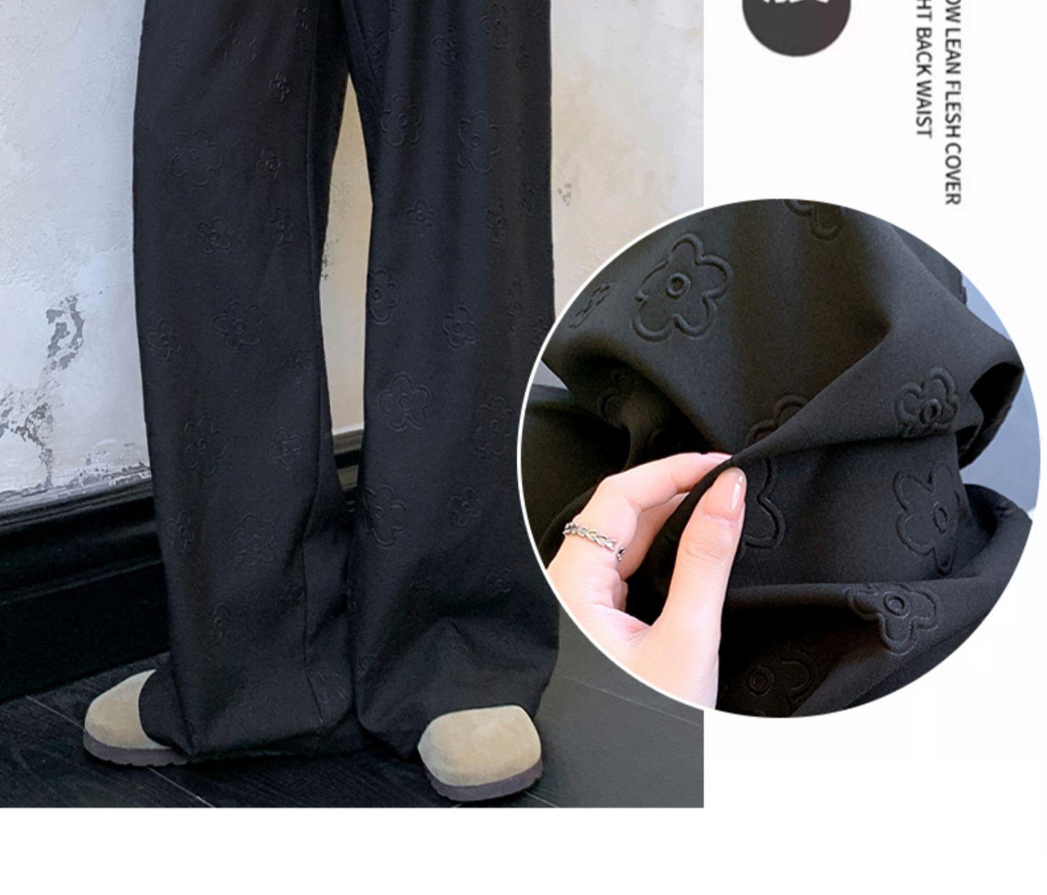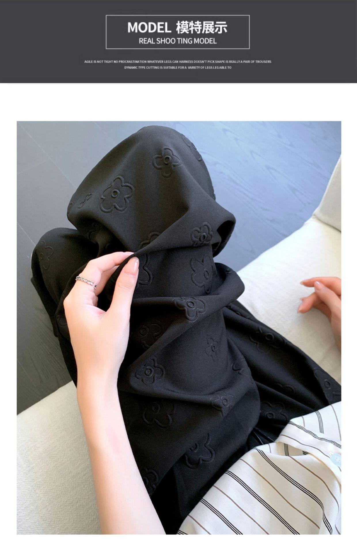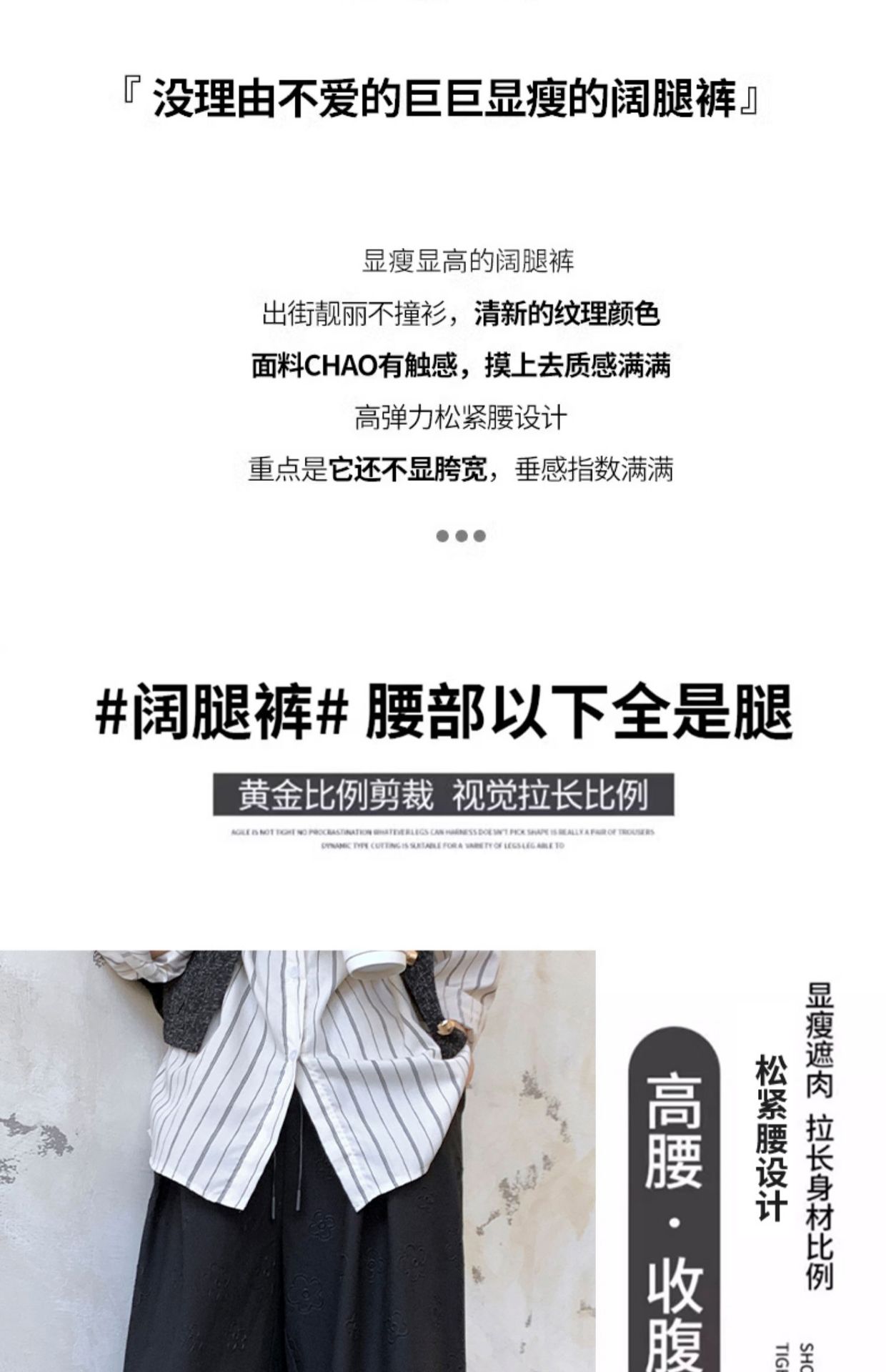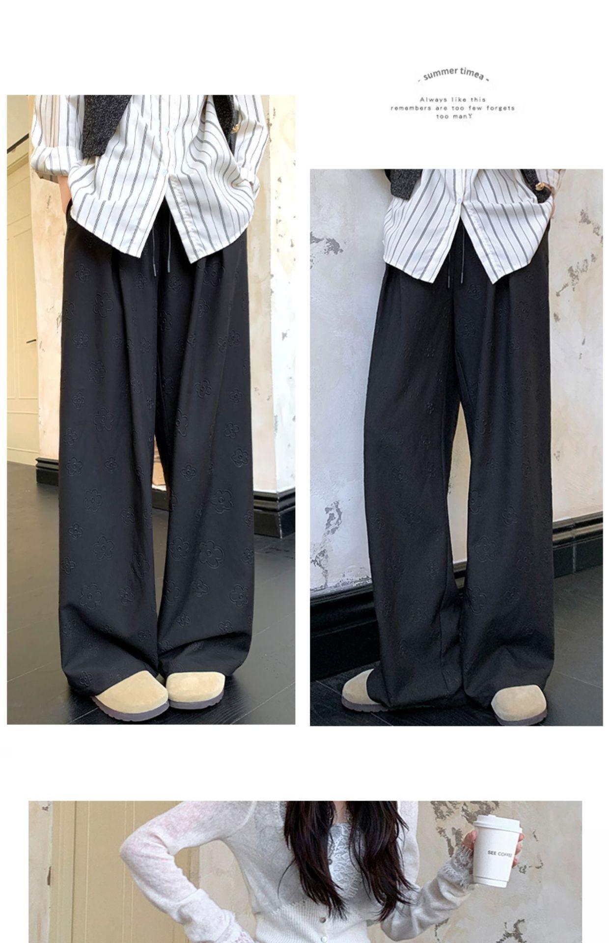Pantalones grises de pierna ancha en relieve para mujer Primavera y Otoño 2024 Nuevo sentido del diseño Cintura alta Adelgazantes Sentido de la pose Pantalones casuales texturizados