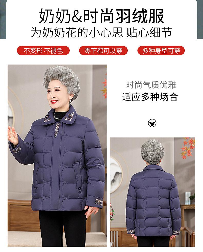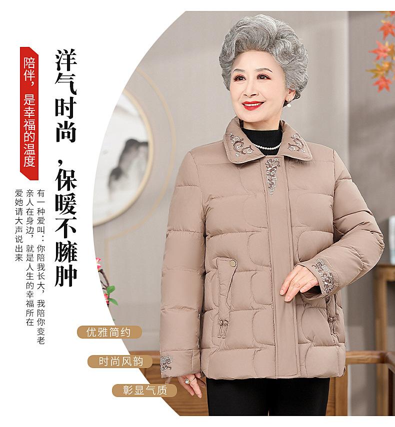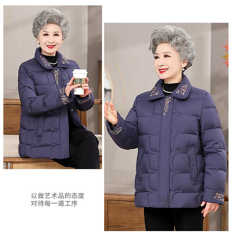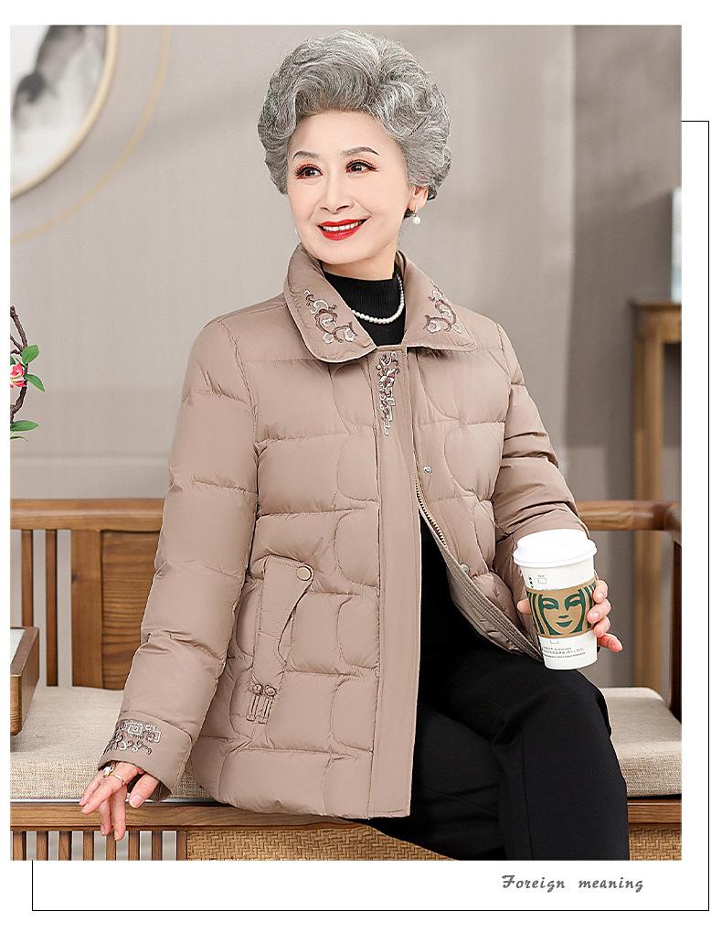 Ropa de Invierno para Mujeres de Mediana Edad y Ancianas Chaqueta de Plumón de Pato Blanco Chaqueta de Plumón Cálida Gruesa para la Abuela Ropa para la Madre Noble Chaqueta de Algodón de Invierno