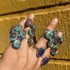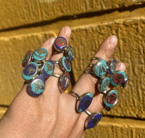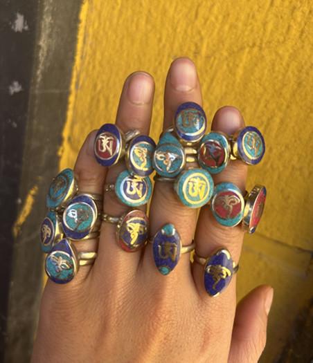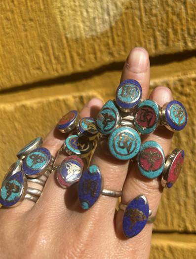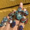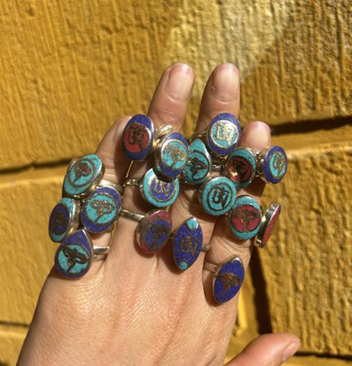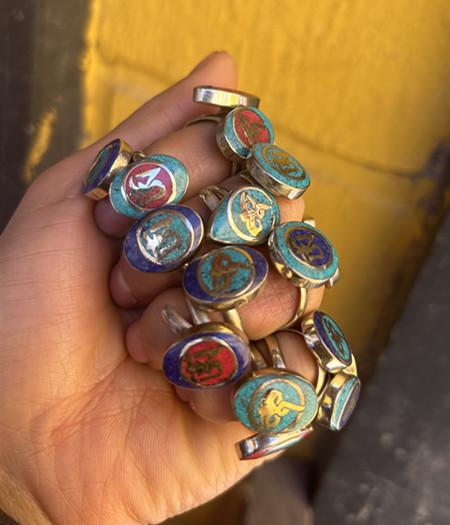Anillo de cobre blanco hecho a mano de Nepal con incrustaciones anillo de nicho de boca abierta neutral múltiple aleatorio