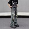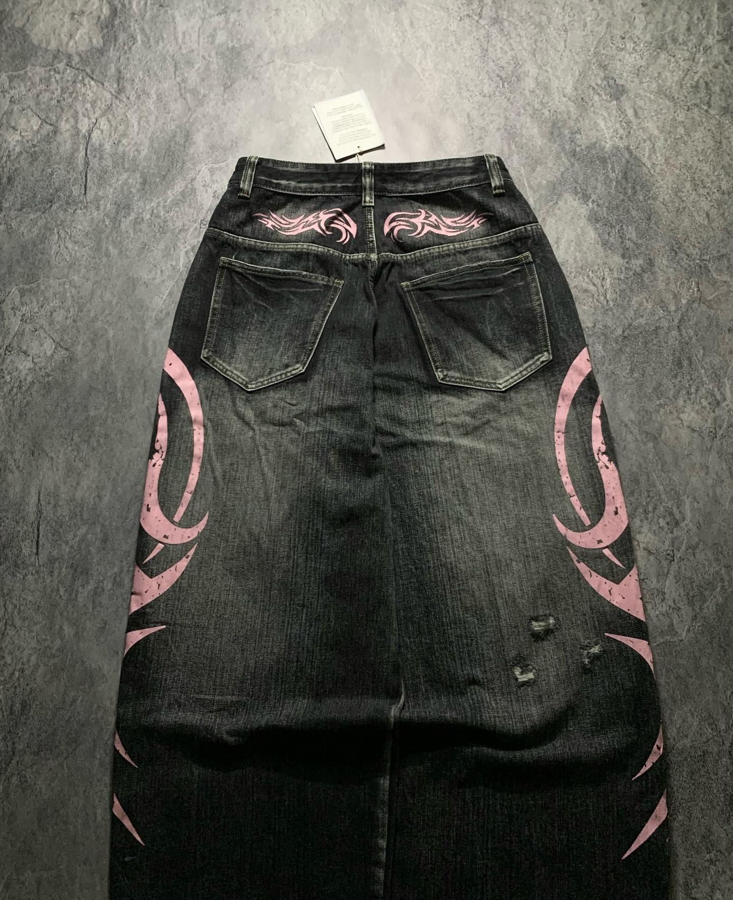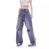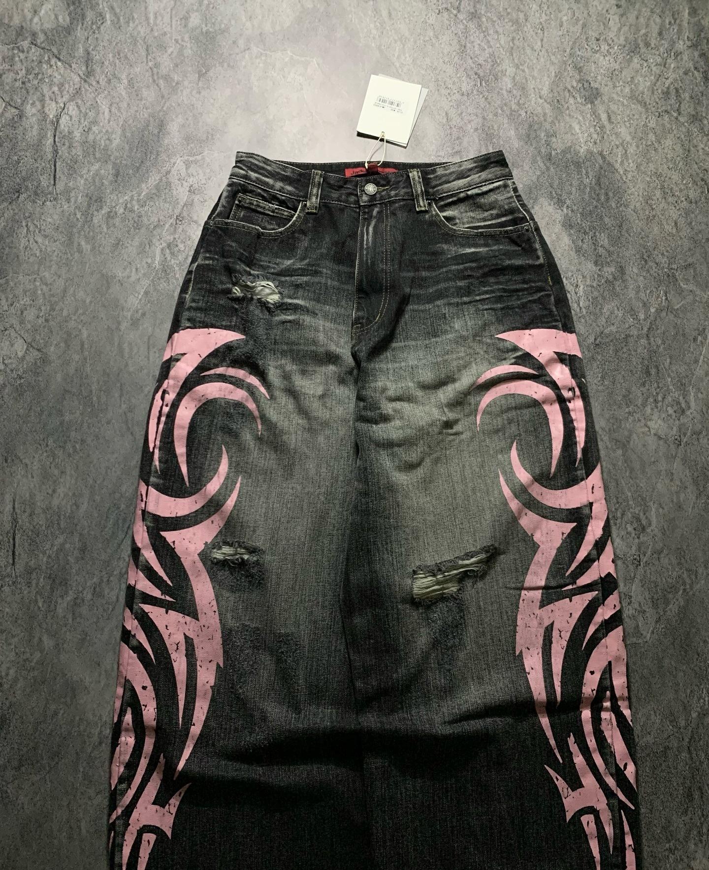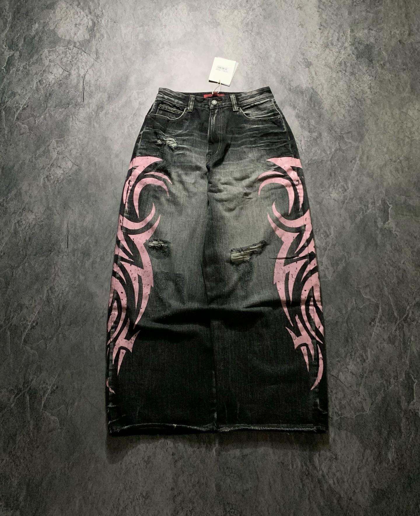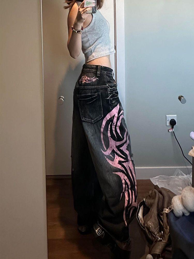 Marca de Moda Transfronteriza Lavados Rotos Estampados Jeansjadedlondon Calle Hip-Hop Pantalones Rectos Casuales para Mujer