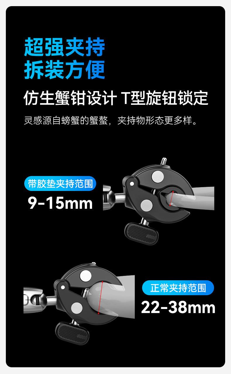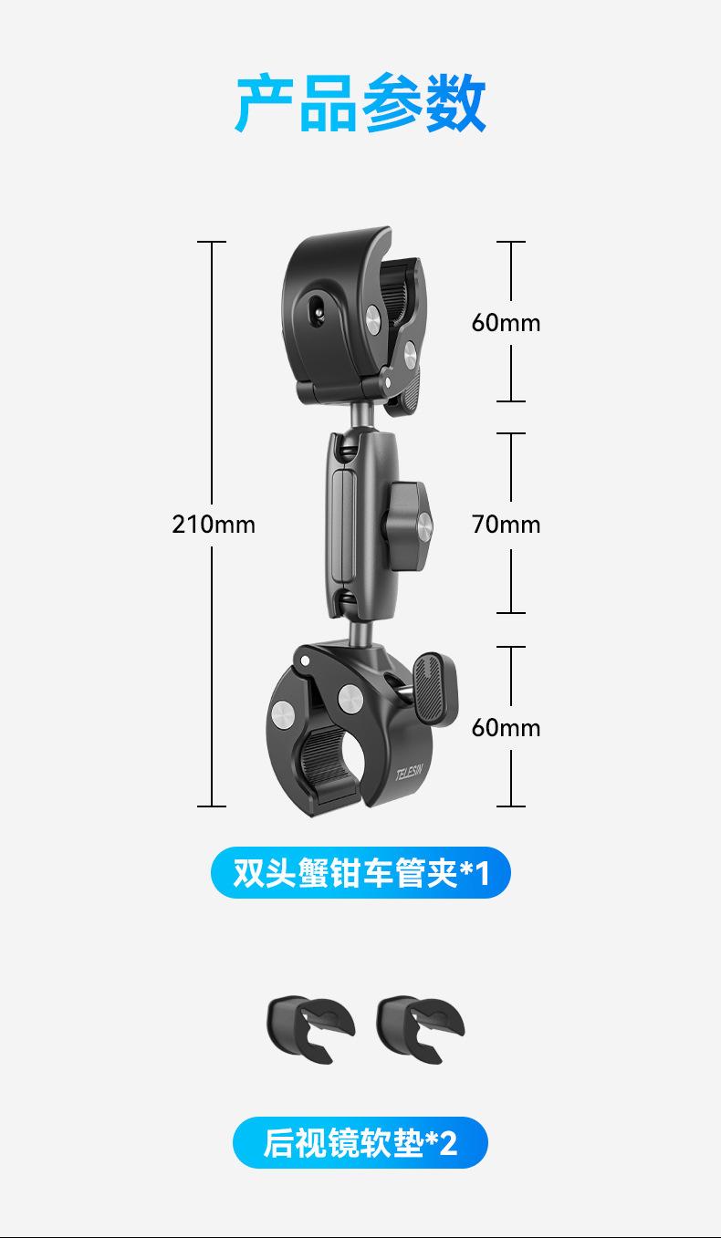 Taixun aplicable a insta360x3x2 dji Dajiang pinzas de cangrejo de doble mandíbula soporte fuerte para montar en motocicleta bicicleta