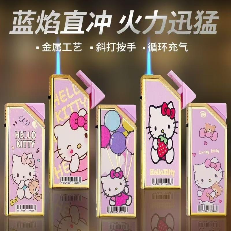Encendedor inflable de metal resistente al viento con diseño de Hello Kitty, regalo para niñas, con carcasa de hierro y grabado personalizado gratis para publicidad.