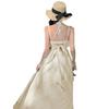 Vacaciones Junto al Mar Azul Estilo Suave Vestido de Tirantes para Mujer Verano Diseño Nicho Tira Trasera Playa Falda Larga