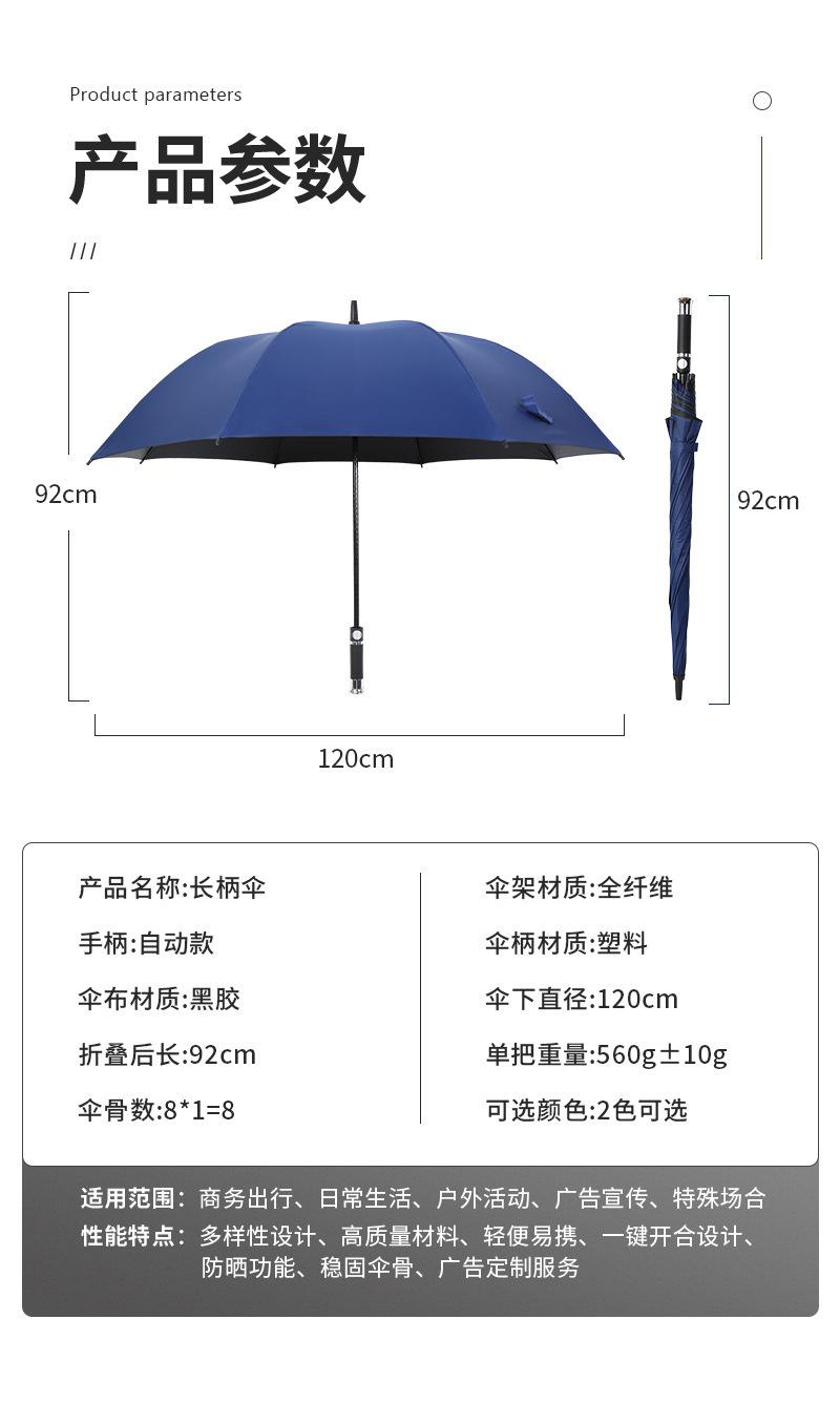 Paraguas de golf de mango largo automático de fibra completa paraguas publicitario de negocios automático de un botón paraguas de varilla recta con logo paraguas de regalo