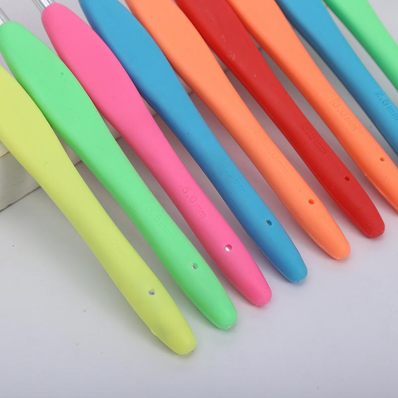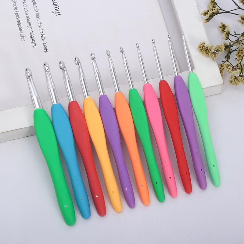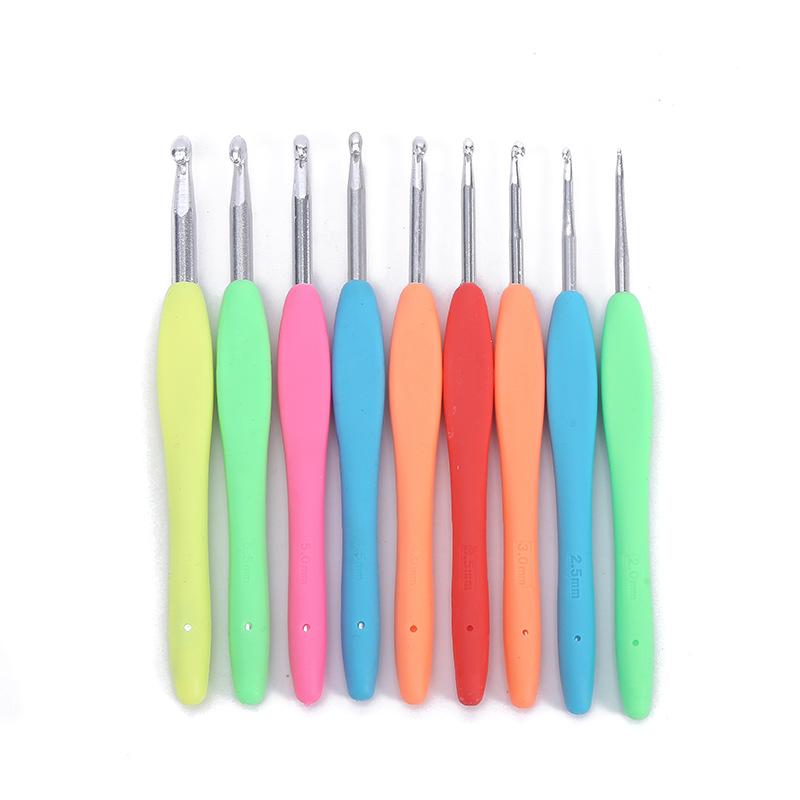 Venta al por mayor de fábrica de goma de color de un solo cabezal para tejer a crochet, juego de ganchillo DIY, herramienta de lana para tejer