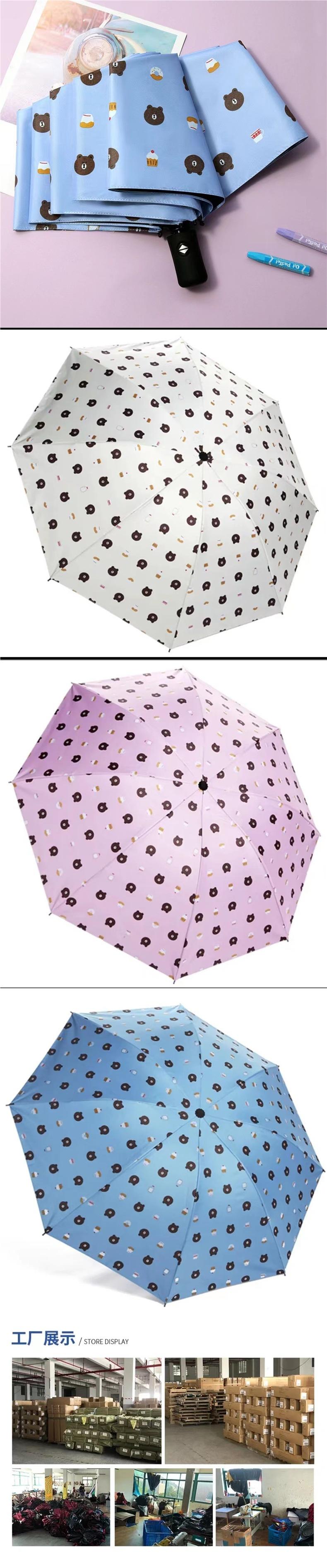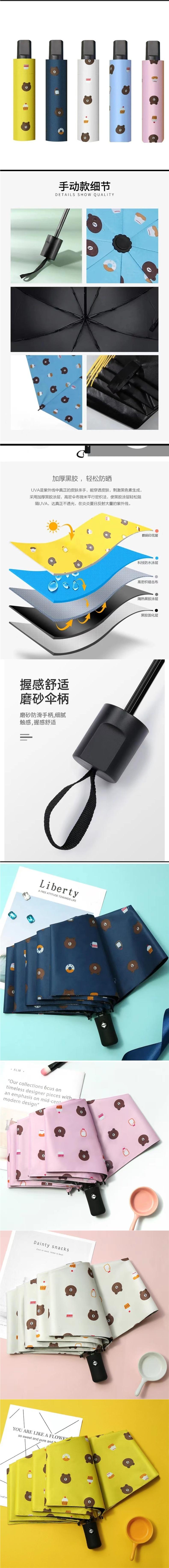 Paraguas de oso de dibujos animados nuevo paraguas parasol de goma negra paraguas plegable de triple capa para sol y lluvia de doble uso venta al por mayor de paraguas
