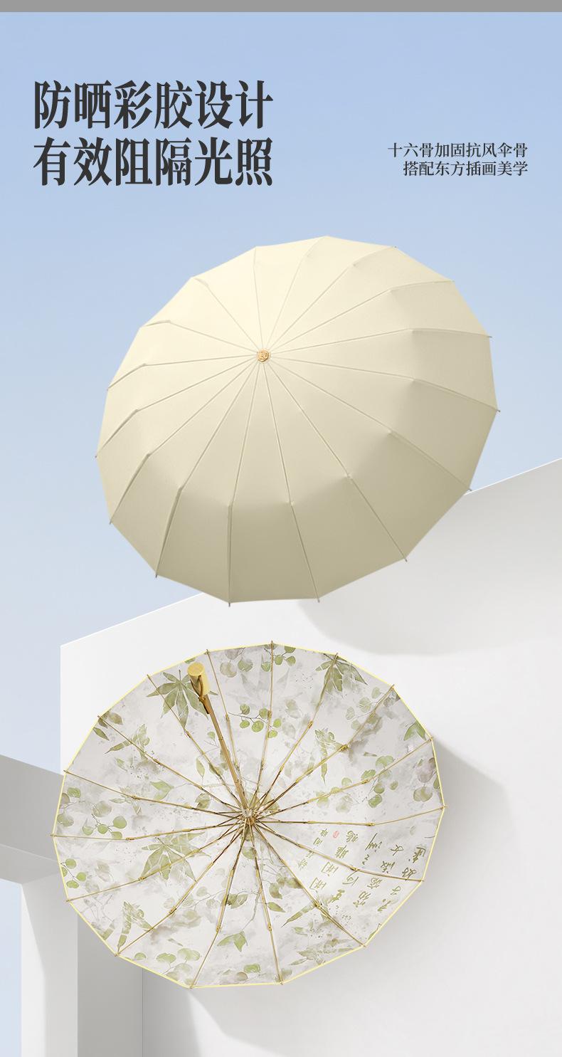 Paraguas de Estilo Antiguo de 16 Varillas, Paraguas Grande Plegable, Lluvia o Sol, Sombrilla para Mujer, Protección Solar, Protección UV, Paraguas Solar con Pegamento de Color