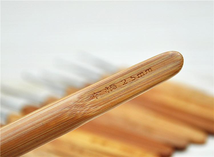 Características del producto: Aguja de crochet de bambú carbonizado, mano de obra fina, cuerpo de aguja suave, buena sensación en la mano.