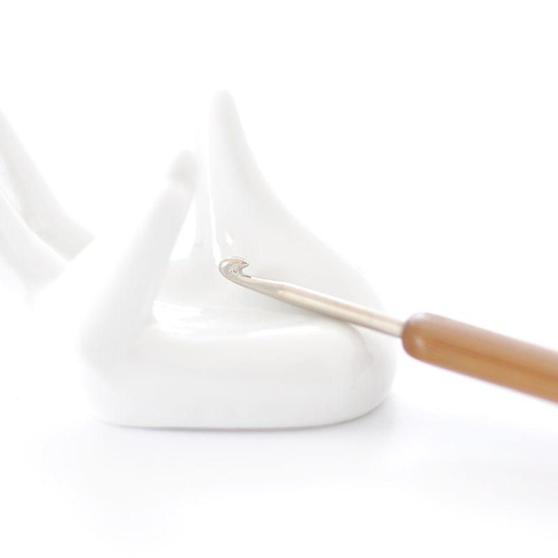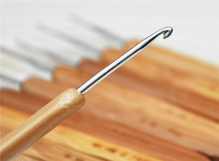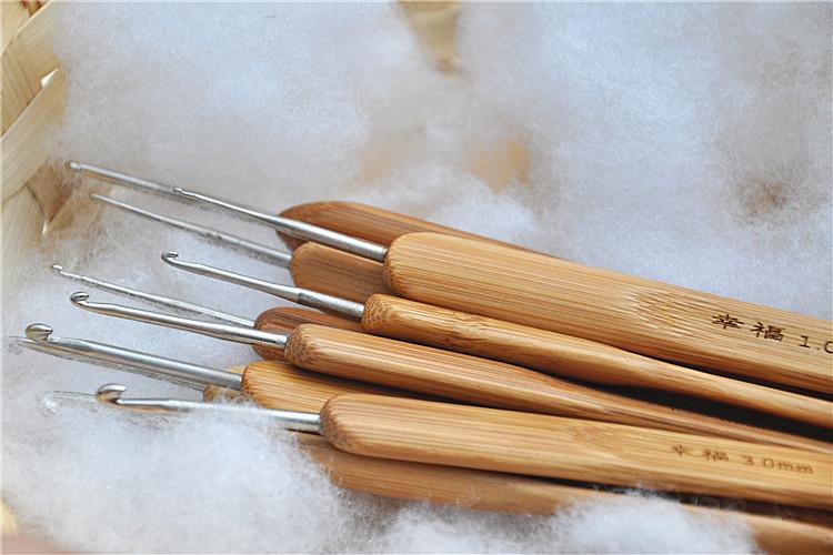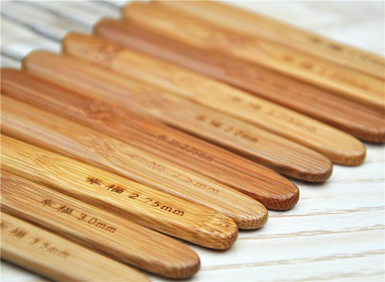 Aguja de crochet con cabeza de metal y mango de bambú. Modelos: 1,0 mm/1,25 mm/1,5 mm/1,75 mm/2,0 mm/2,25 mm/2,5 mm/2,75 mm/3,0 mm/3,5 mm.