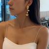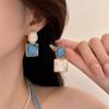 Pendientes de plata 925 con diseño de red de moda europea y americana, con diseño geométrico de contraste de color y borde cruzado para mujer