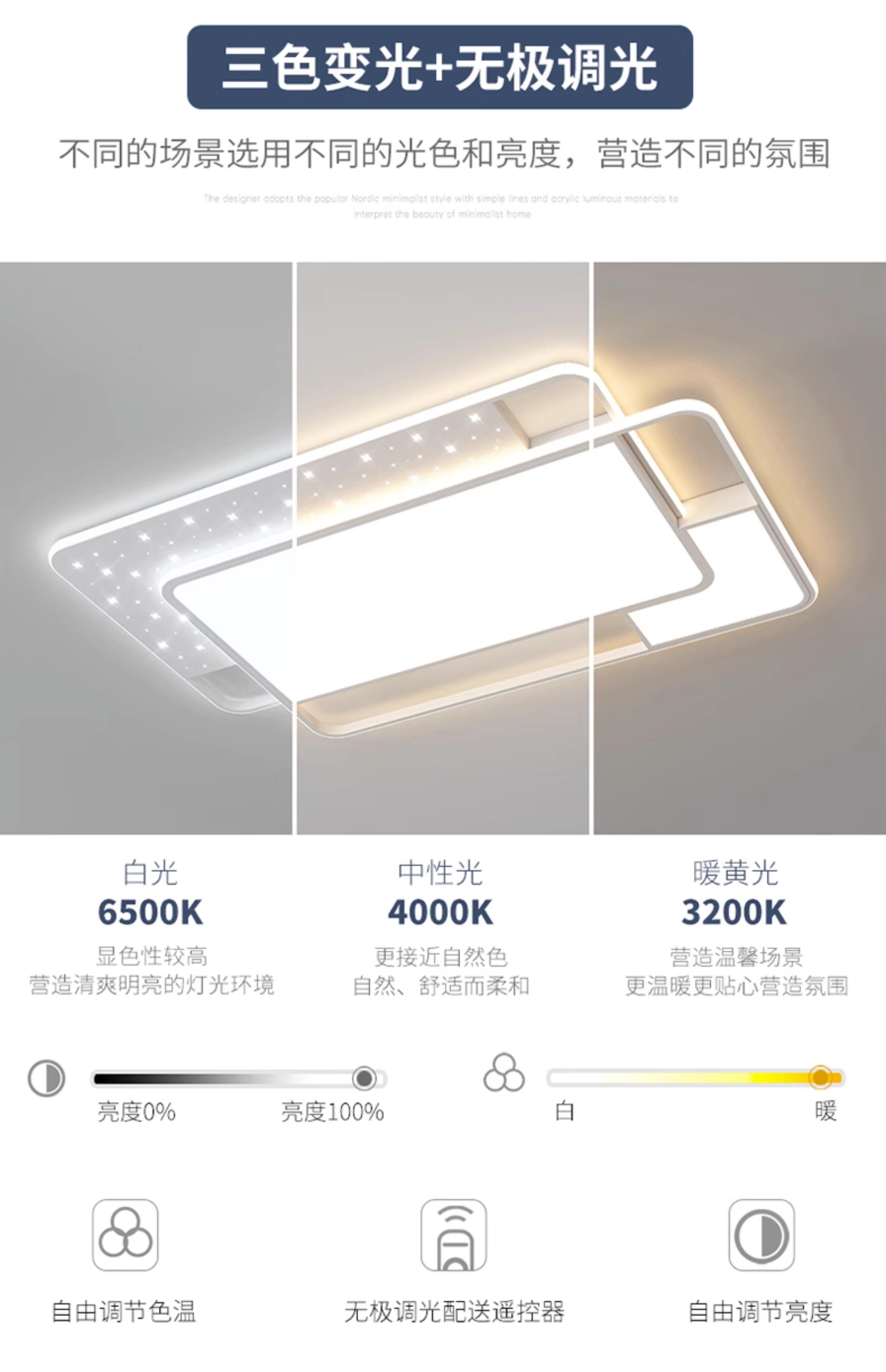 Lámpara LED de lujo para sala de estar, lámpara principal con diseño de cielo estrellado, lámpara de techo moderna minimalista nórdica para dormitorio, paquete para toda la casa