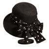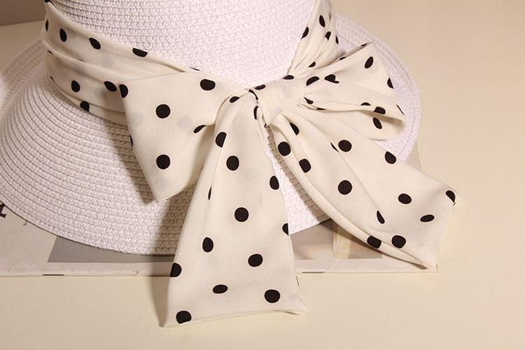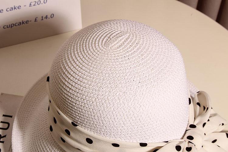 Front brim curling polka dot bow basin hat-White, Front brim curling polka dot bow basin hat-beige, Front brim...