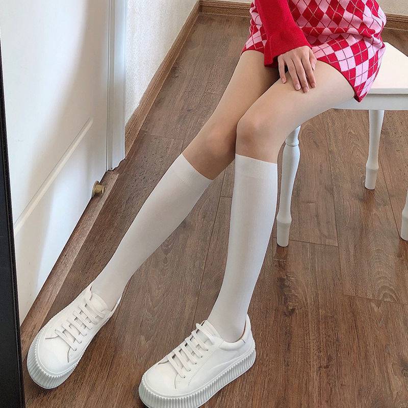 Calcetines largos de tubo falsos de primavera y verano por encima de la rodilla con base de costura de tubo alto falso, medias negras JK, pantimedias blancas japonesas para mujer
