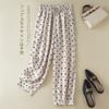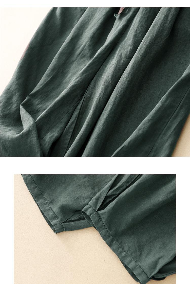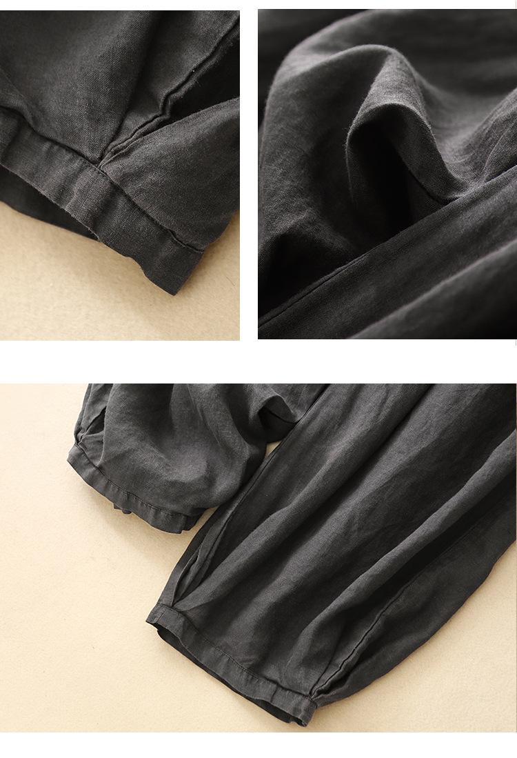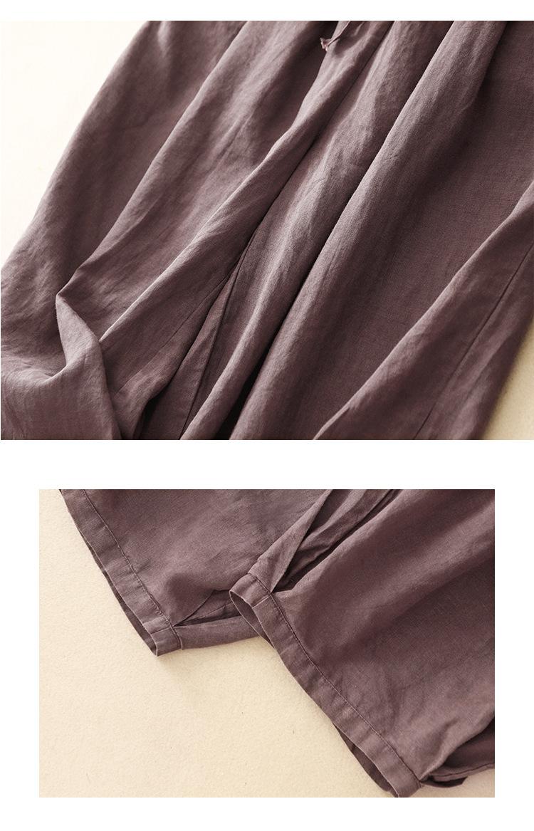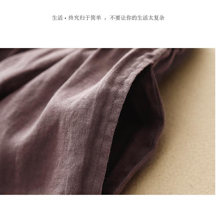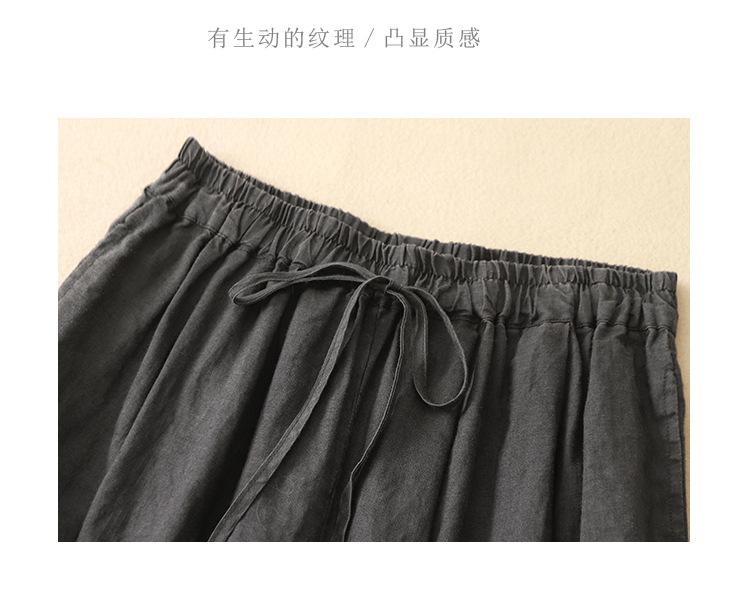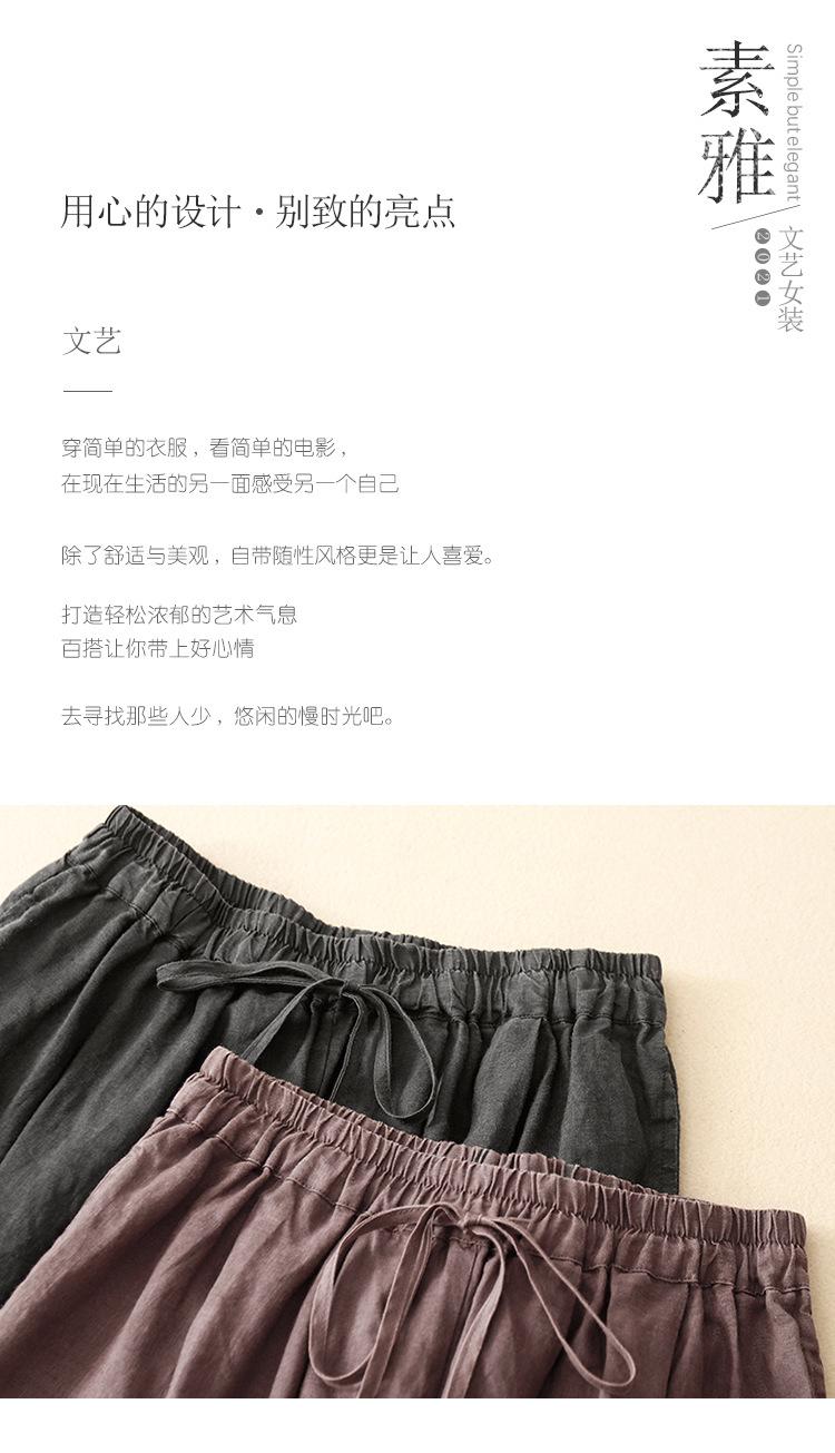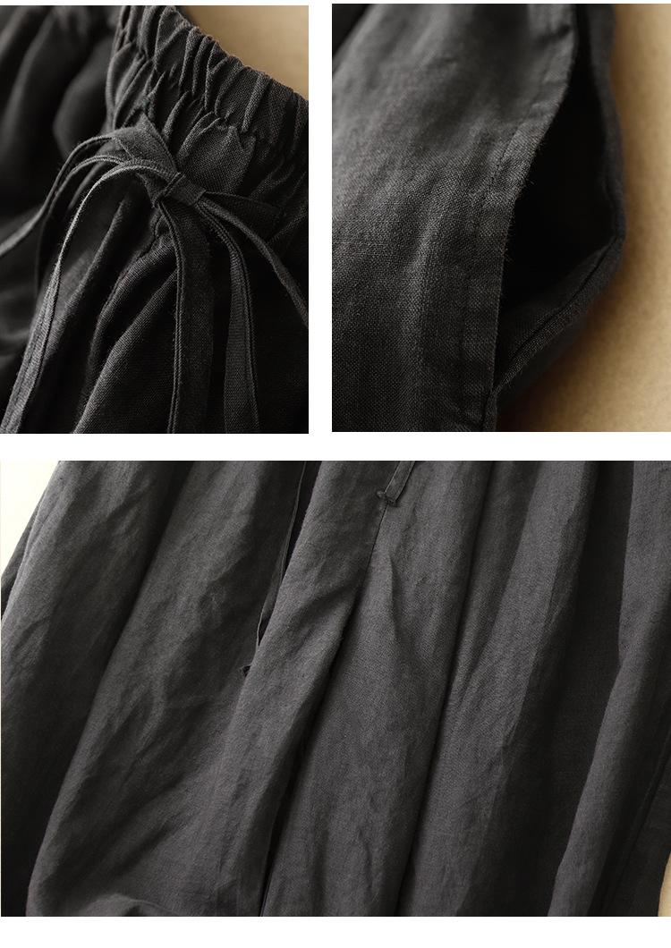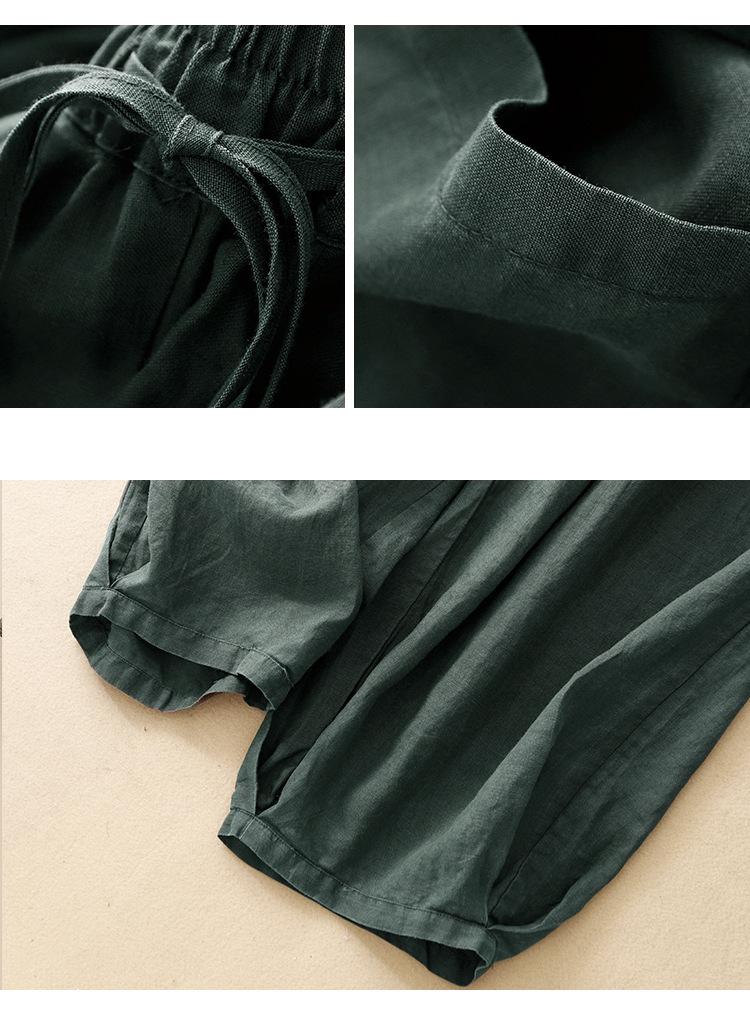 Pantalones casuales recortados con cintura elástica de color sólido, sueltos, retro, literarios, de algodón y lino, de verano 2024, para mujer