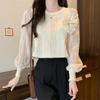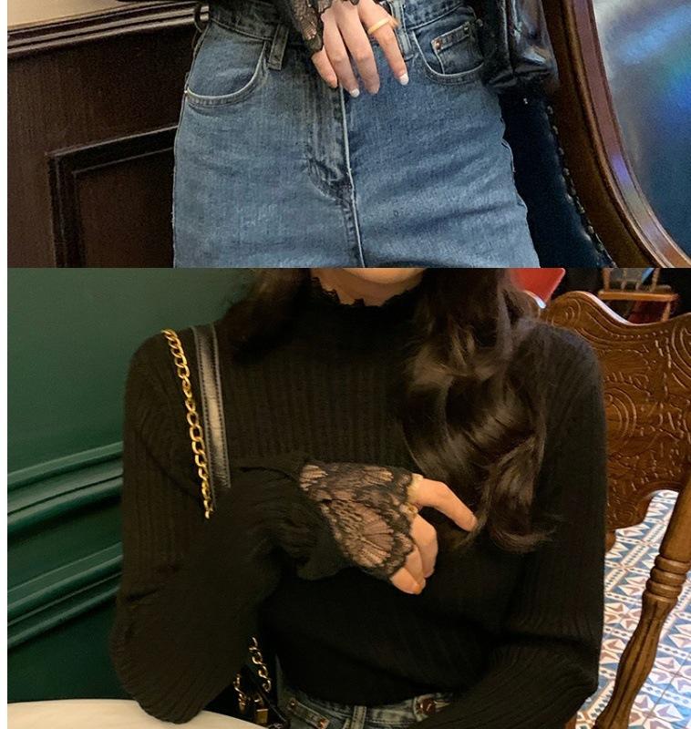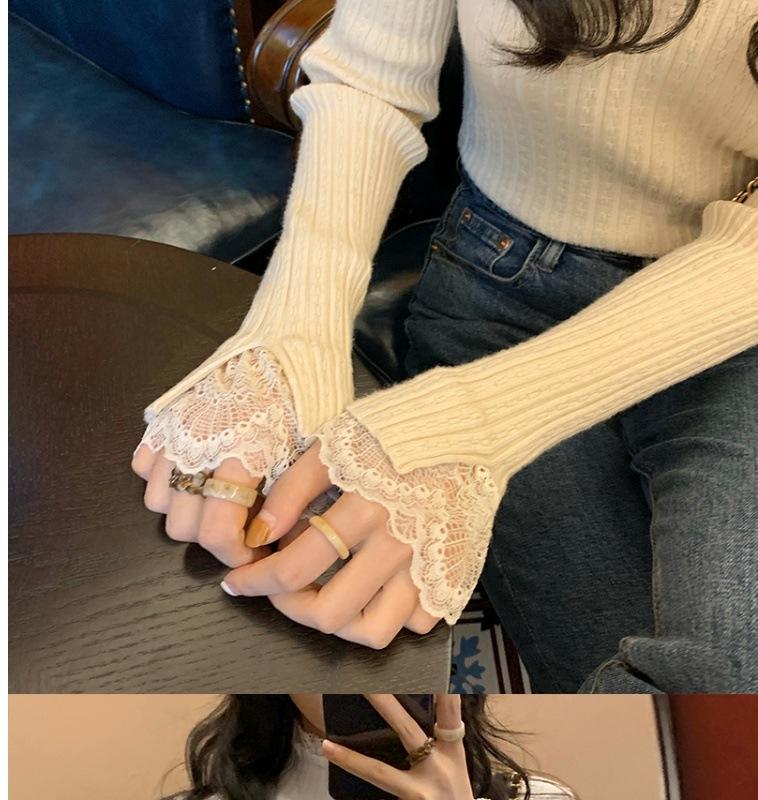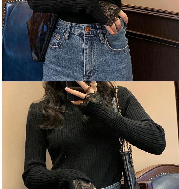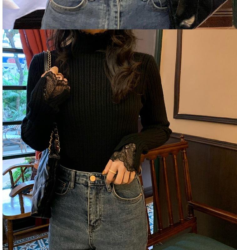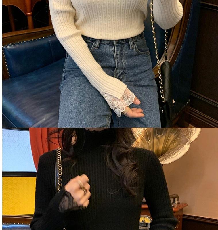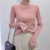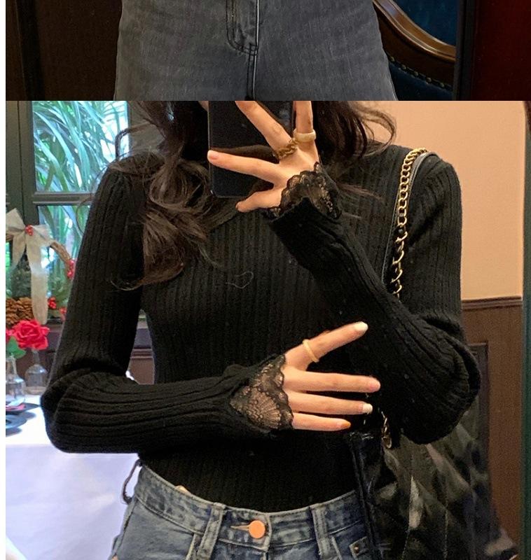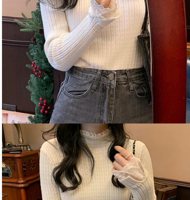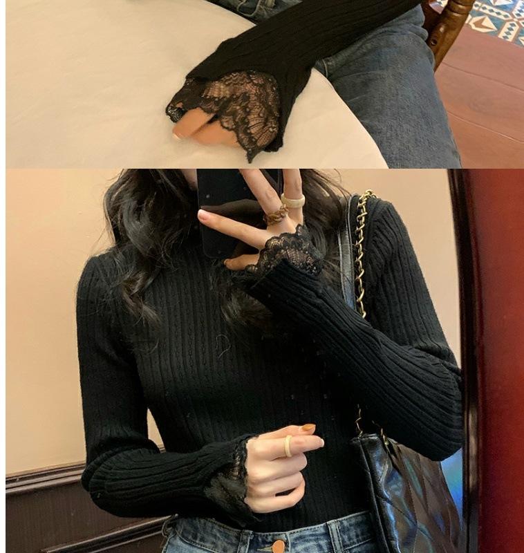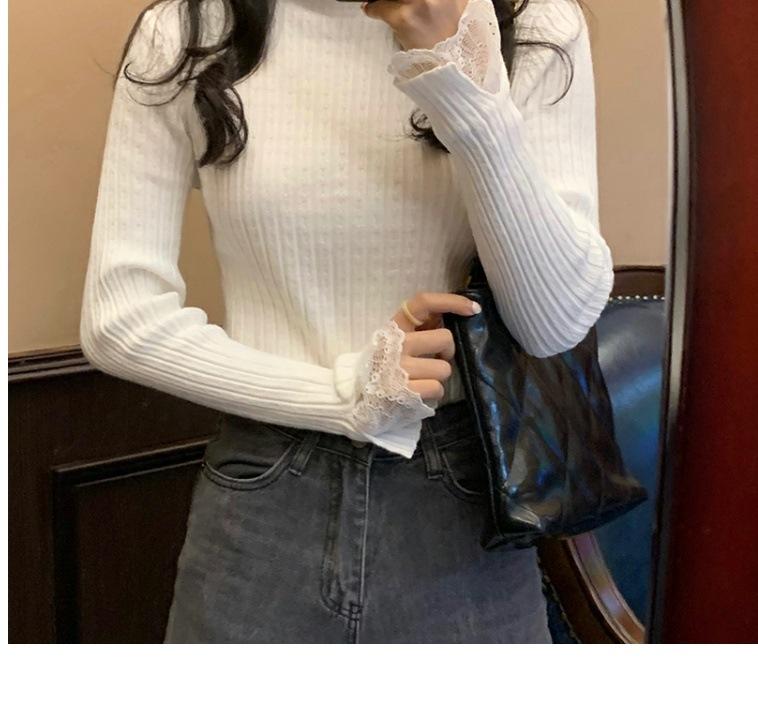 Camisa de base de encaje para mujer, otoño e invierno, cuello medio alto, corte entallado, suéter elegante, color albaricoque, suéter de manga larga.