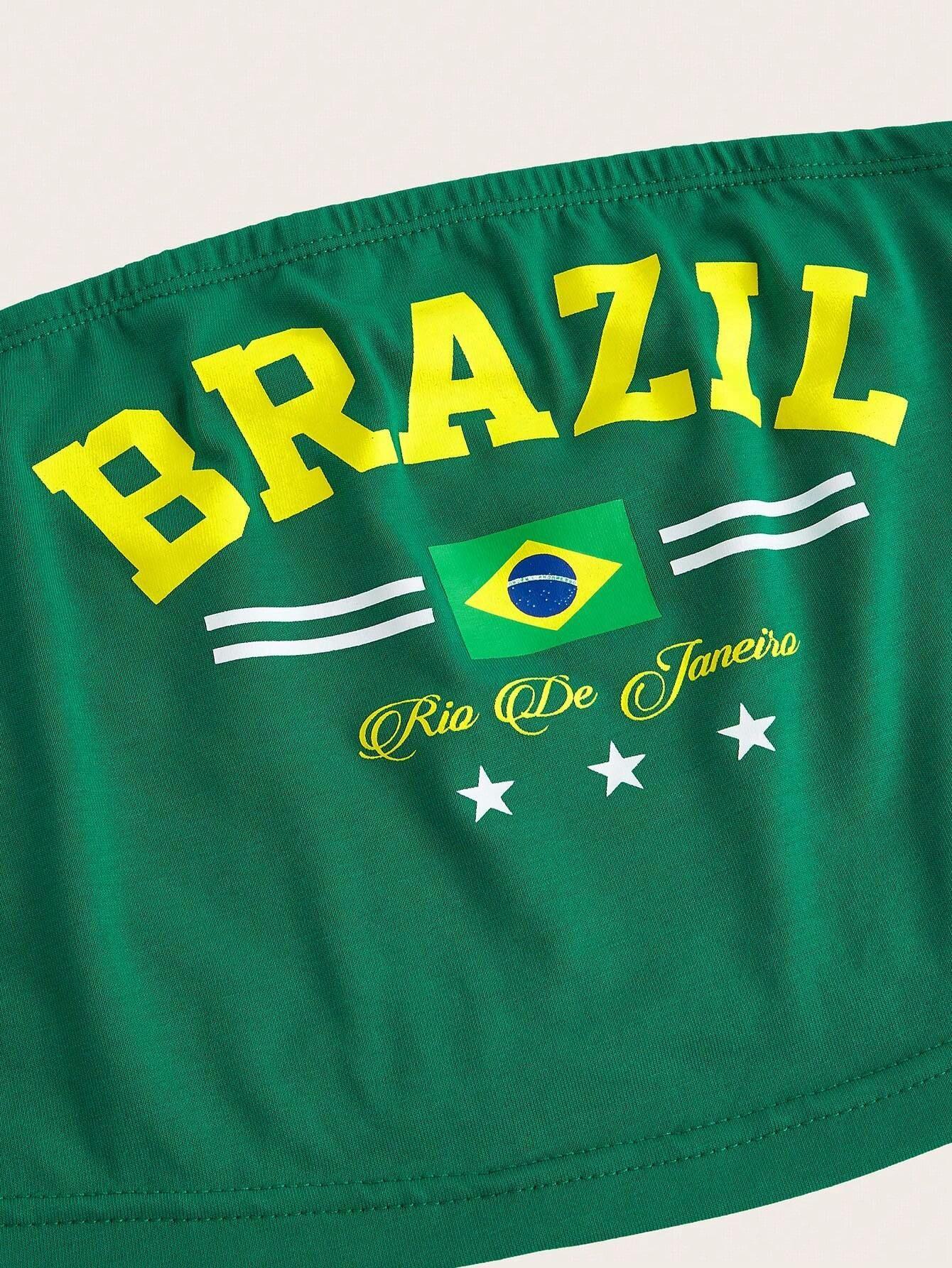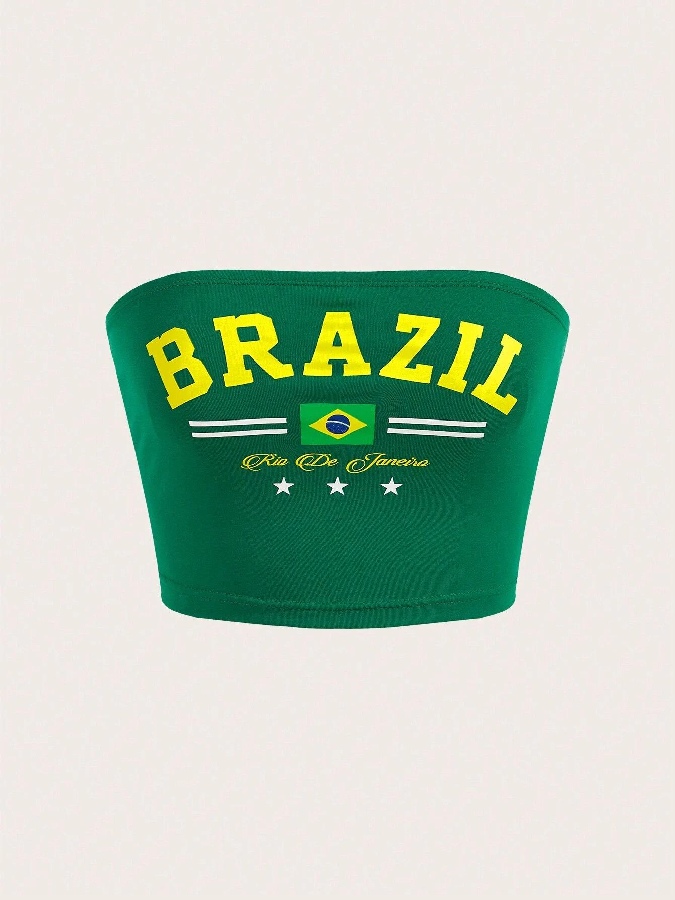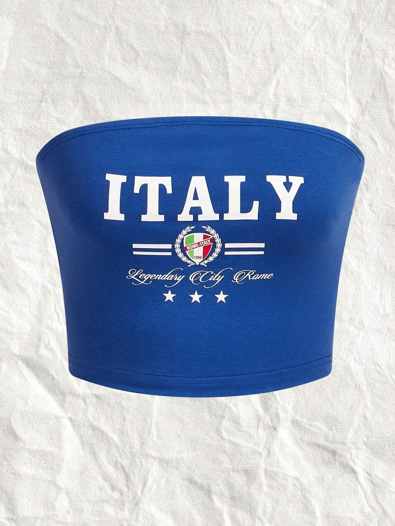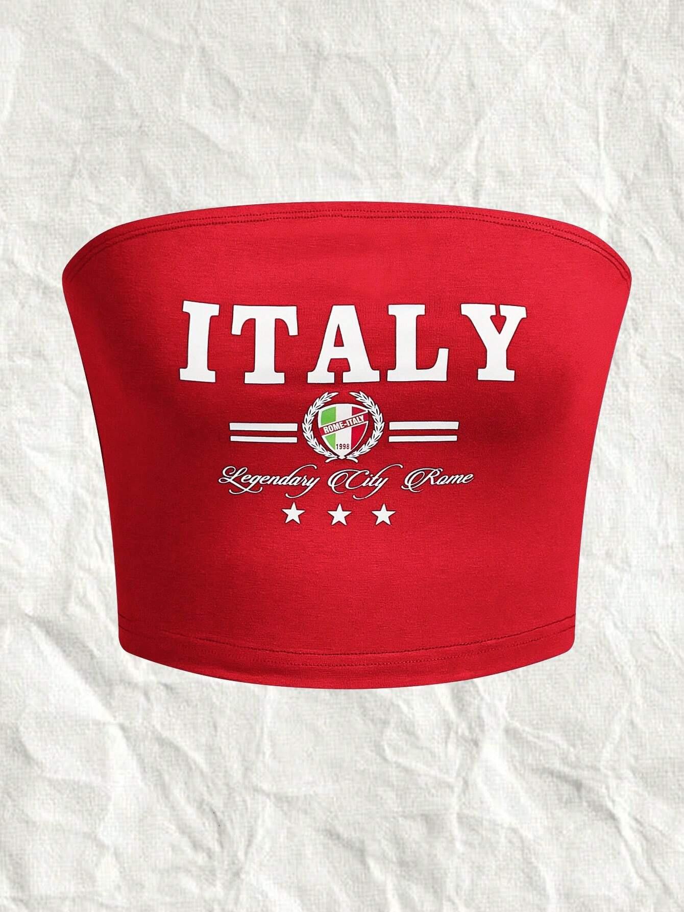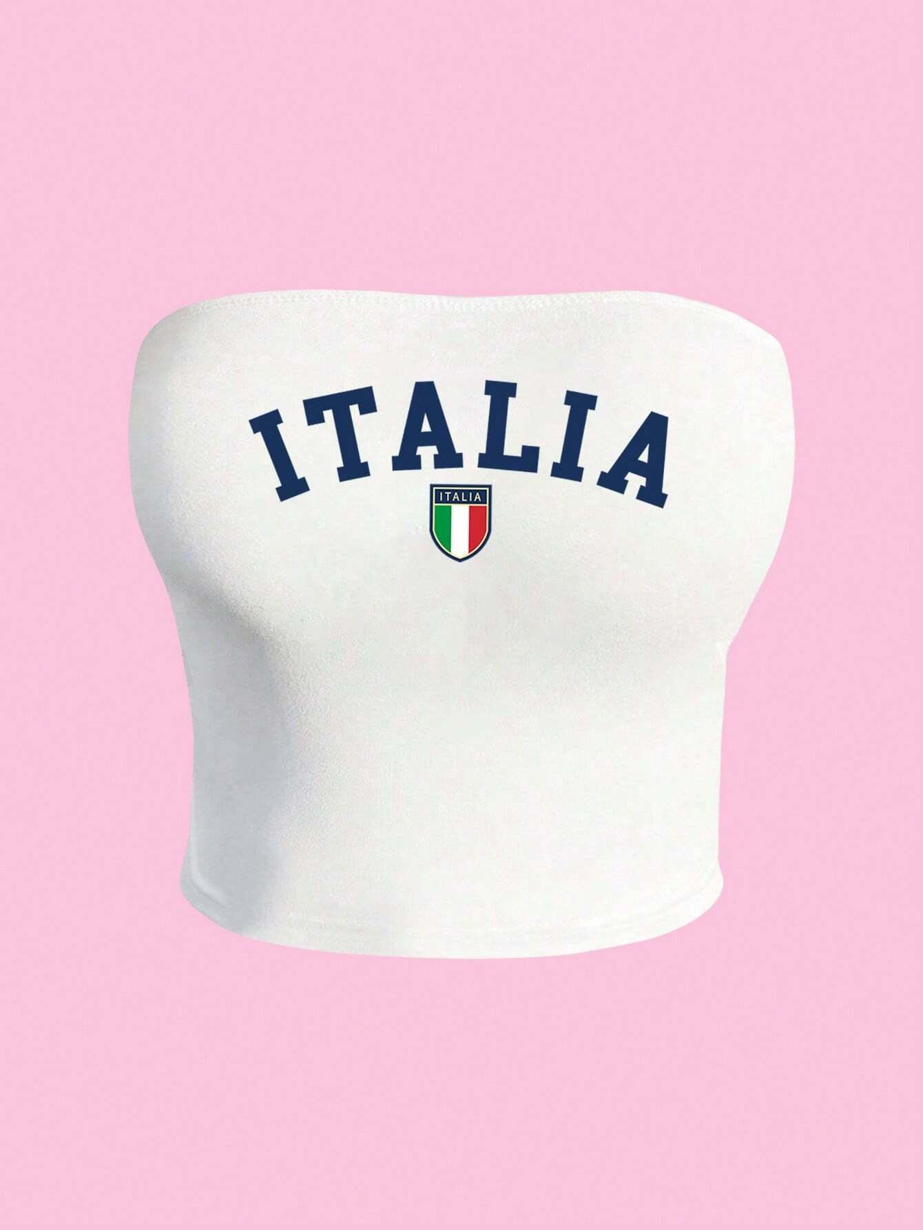 Europeo y Americano Transfronterizo 2024 Verano Estampado de Letras Sexy Strapless Street Spice Girl Top Corto Recortado para Mujer