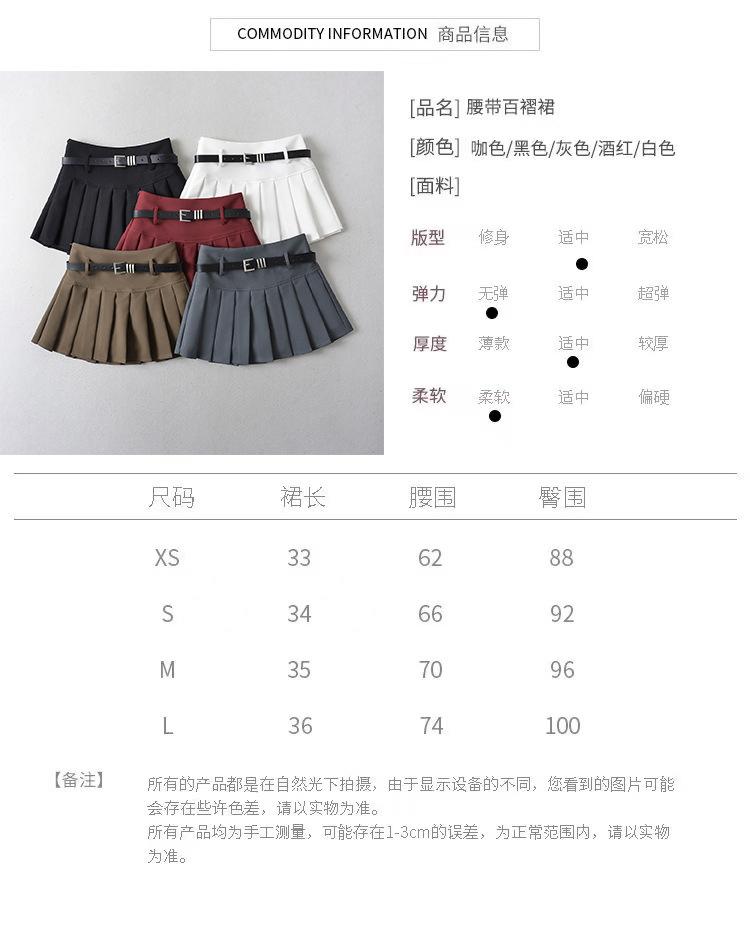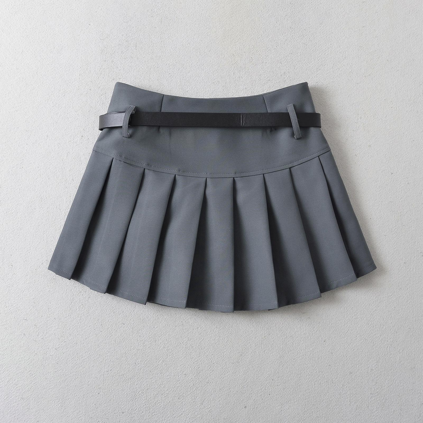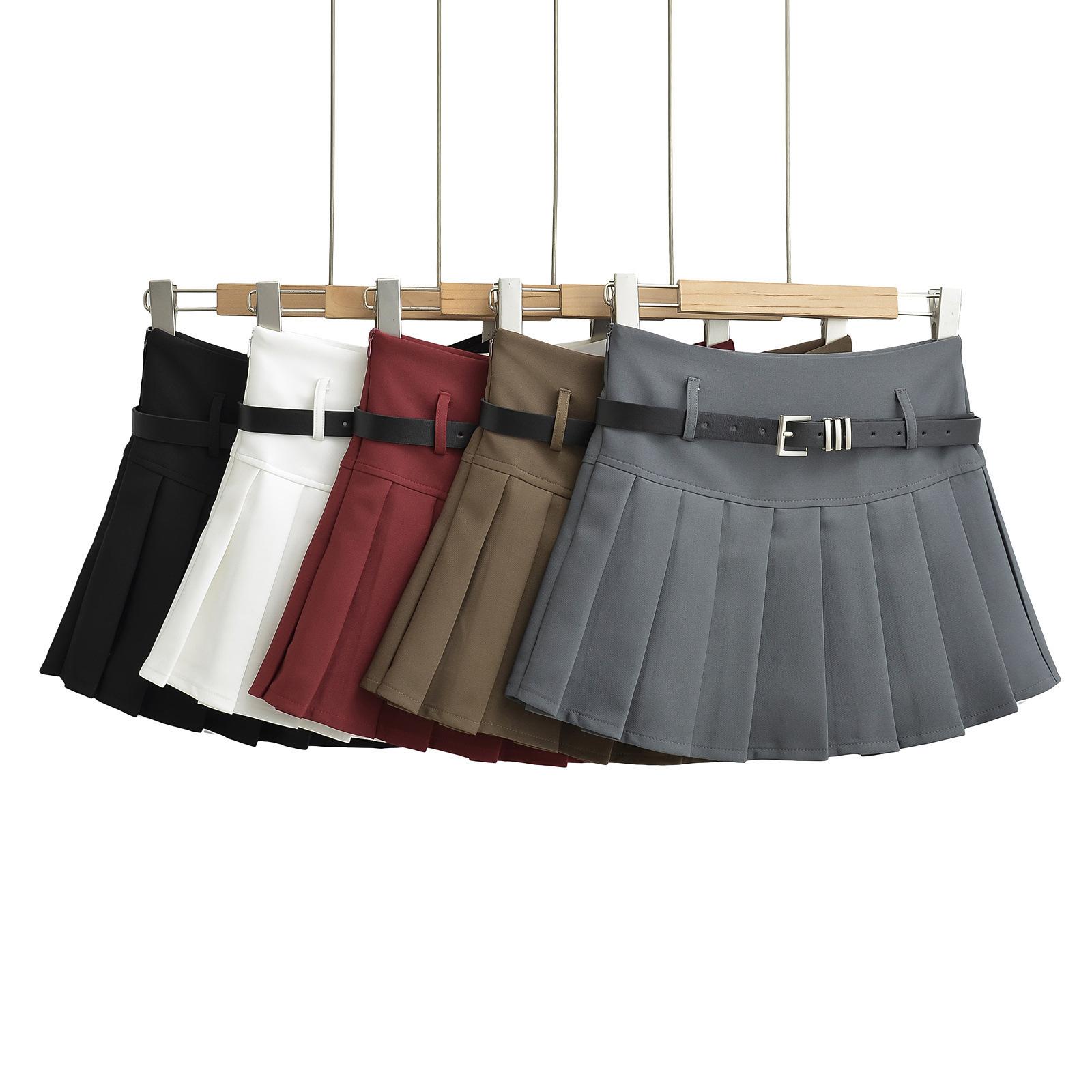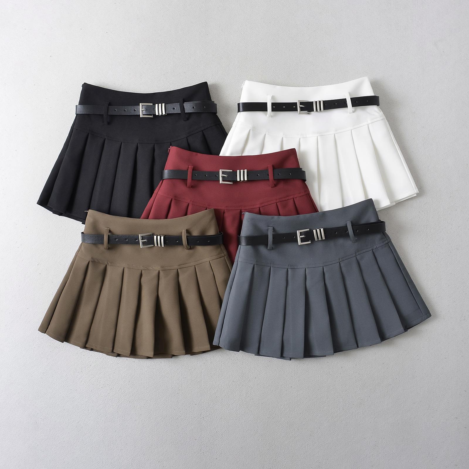 24 años estilo europeo y americano para mujer cintura alta con cinturón falda plisada 5 colores pequeña línea A ultra corta estilo universitario traje falda chat