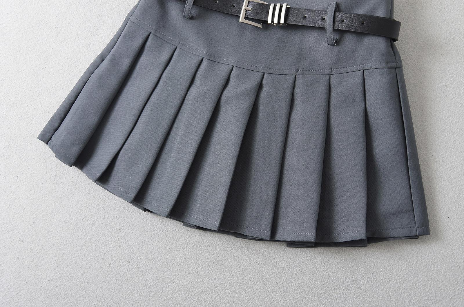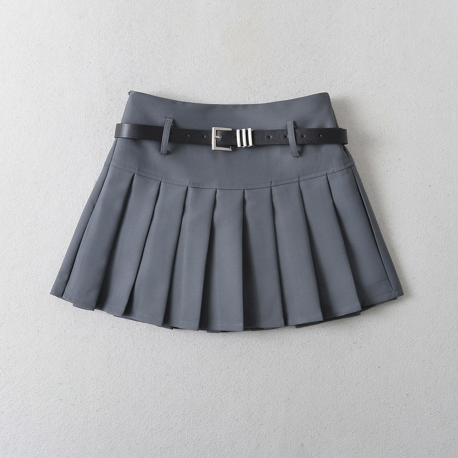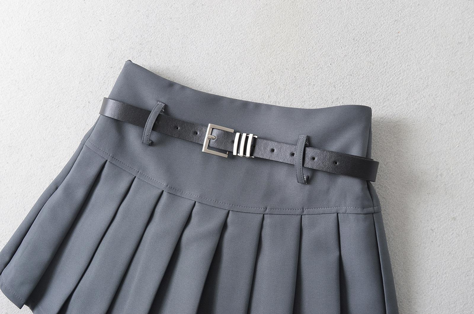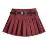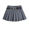 24 años estilo europeo y americano para mujer cintura alta con cinturón falda plisada 5 colores pequeña línea A ultra corta estilo universitario traje falda chat