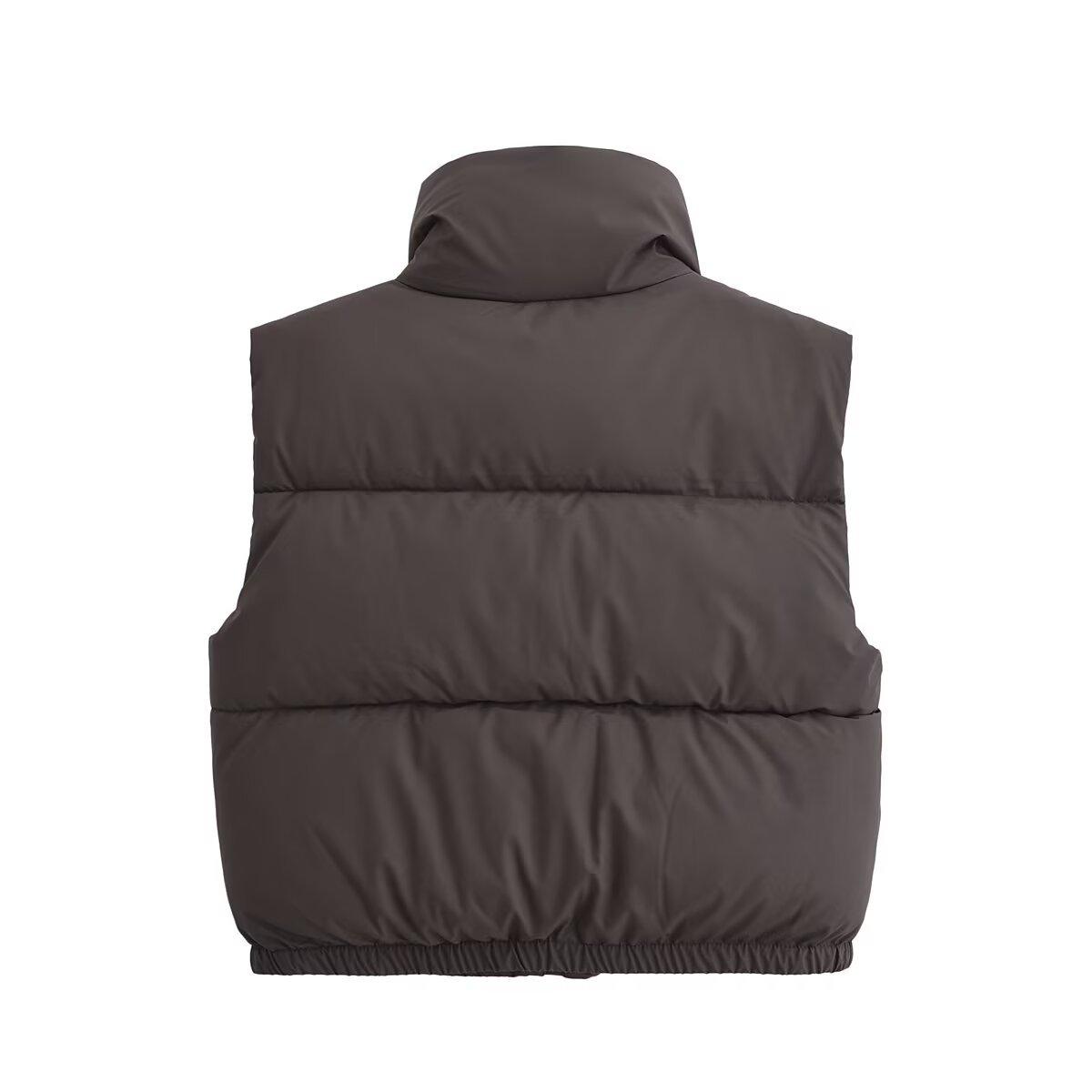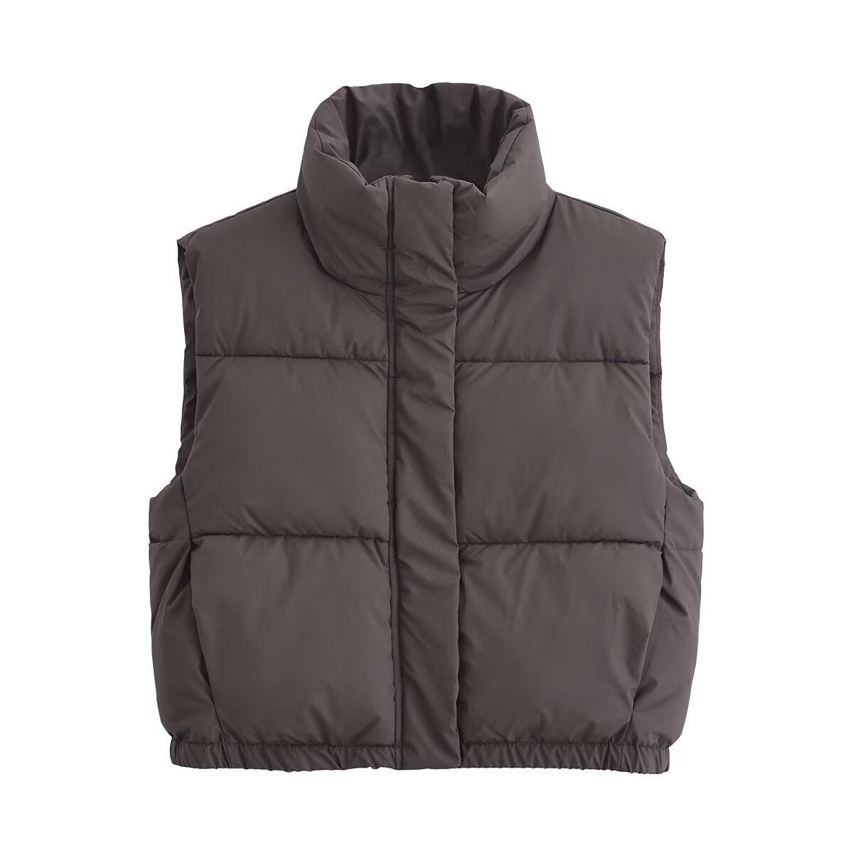 Otoño e invierno cálido negro cuello alto pegado a presión color sólido chaleco chaleco de mujer 2024 invierno nuevo estilo europeo y americano chaleco de algodón