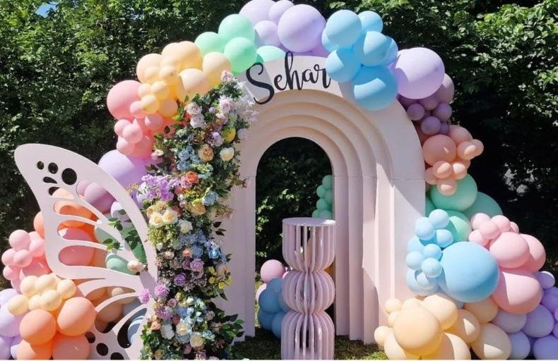 Conjunto de globos con temática de hadas de arcoíris transfronterizos, fondo de decoración para fiesta de cumpleaños y aniversario