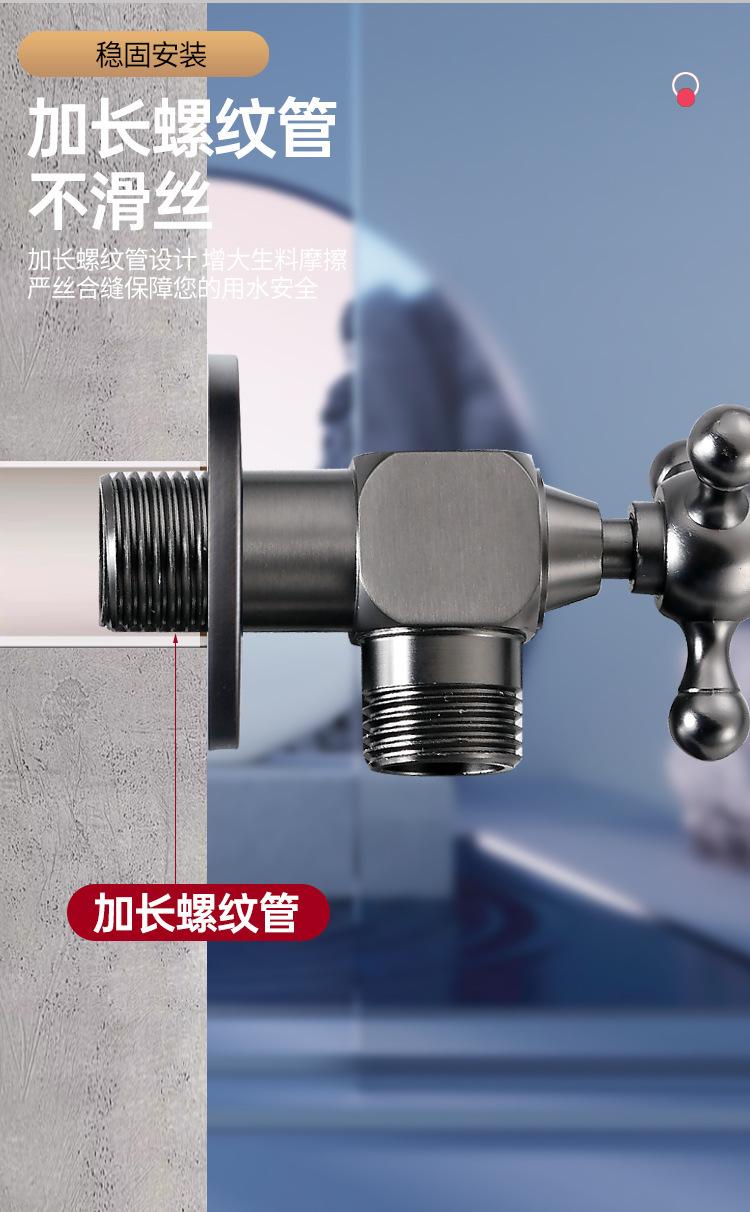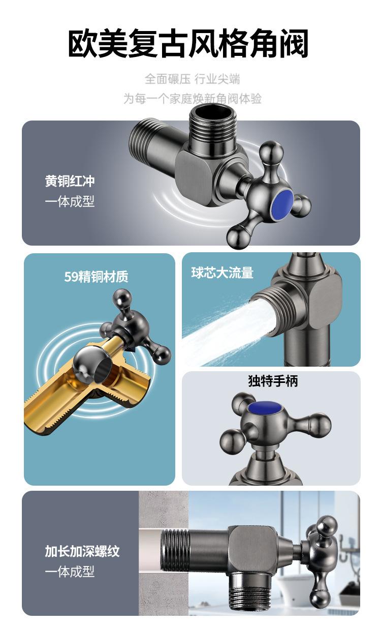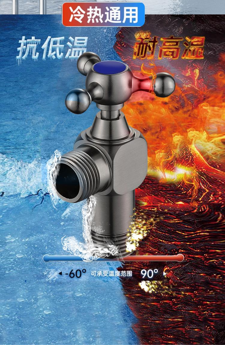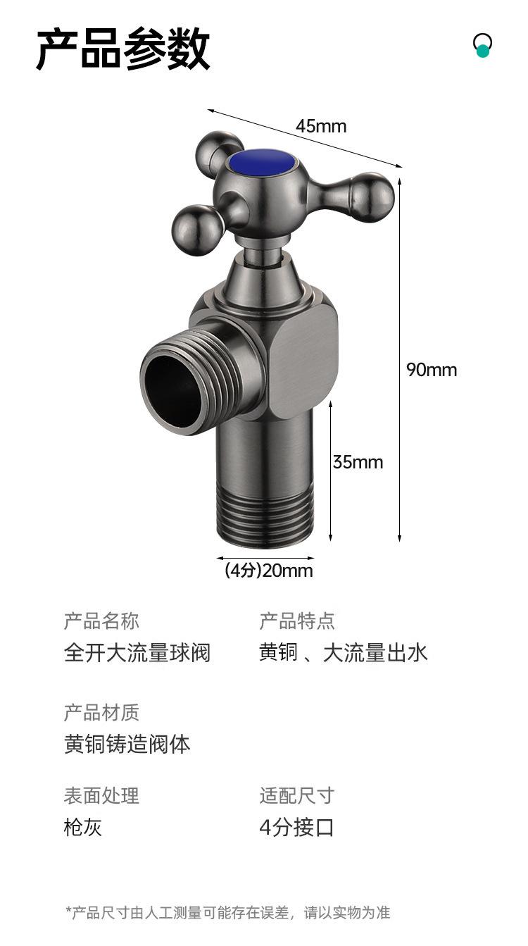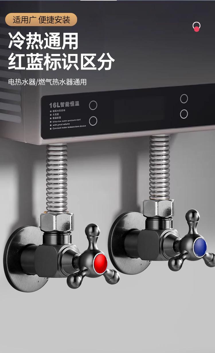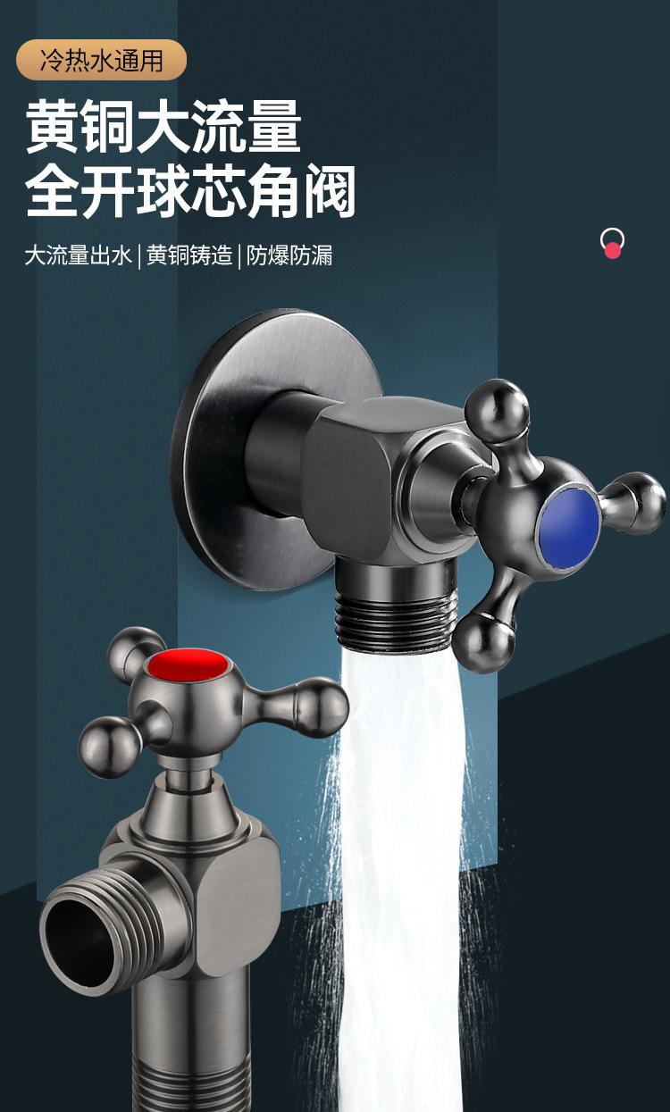 Válvula de ángulo de flujo grande con núcleo de bola totalmente abierto, todo de cobre, calentador de agua a gas para agua fría y caliente, válvula de bola especial, interruptor de válvula triangular de 4 puntos