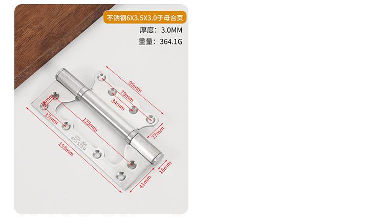 Bisagra hembra de 4/5 pulgadas con rodamiento de bolas sin ranuras, silenciosa, de acero inoxidable 304, para puerta de madera de interior GB