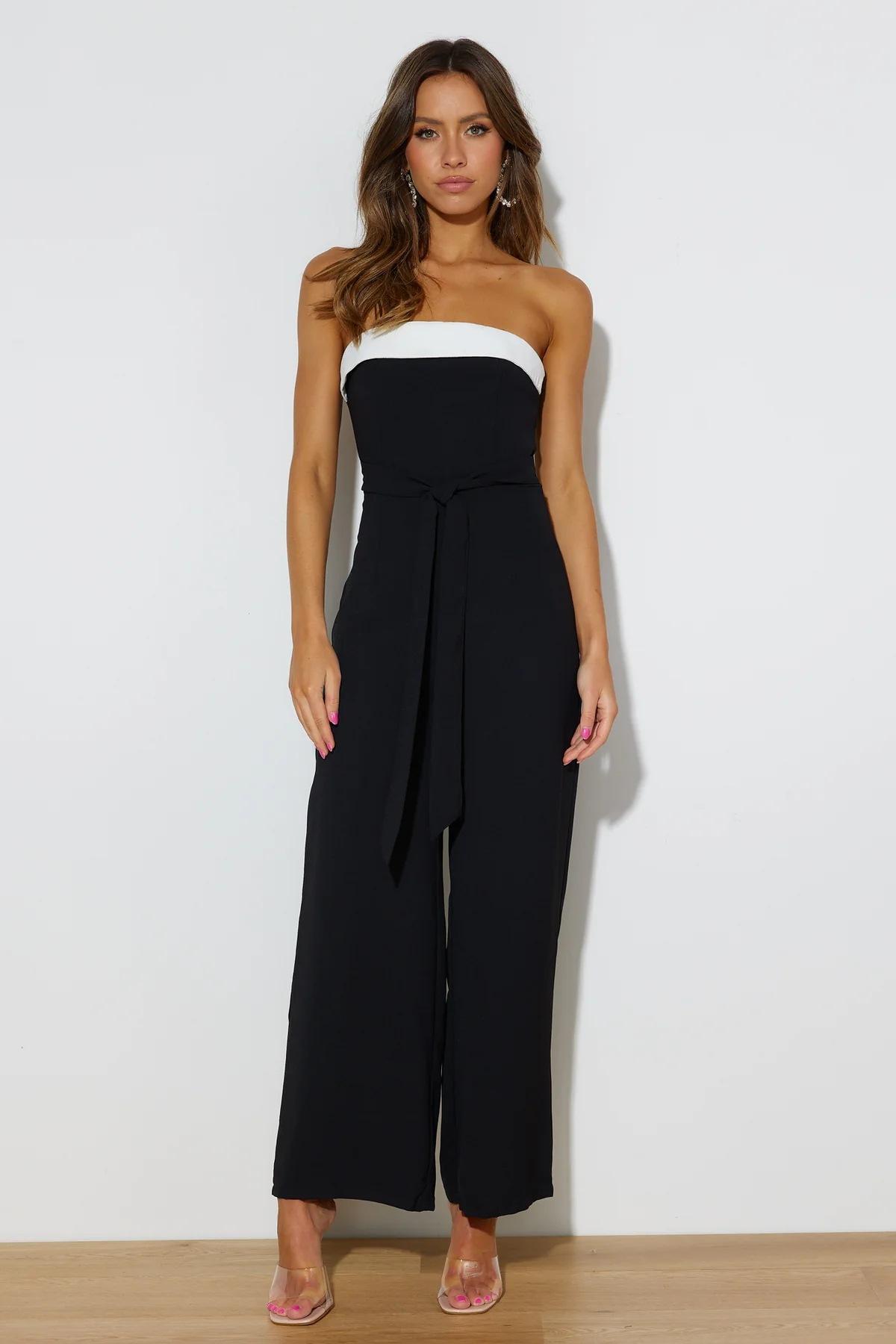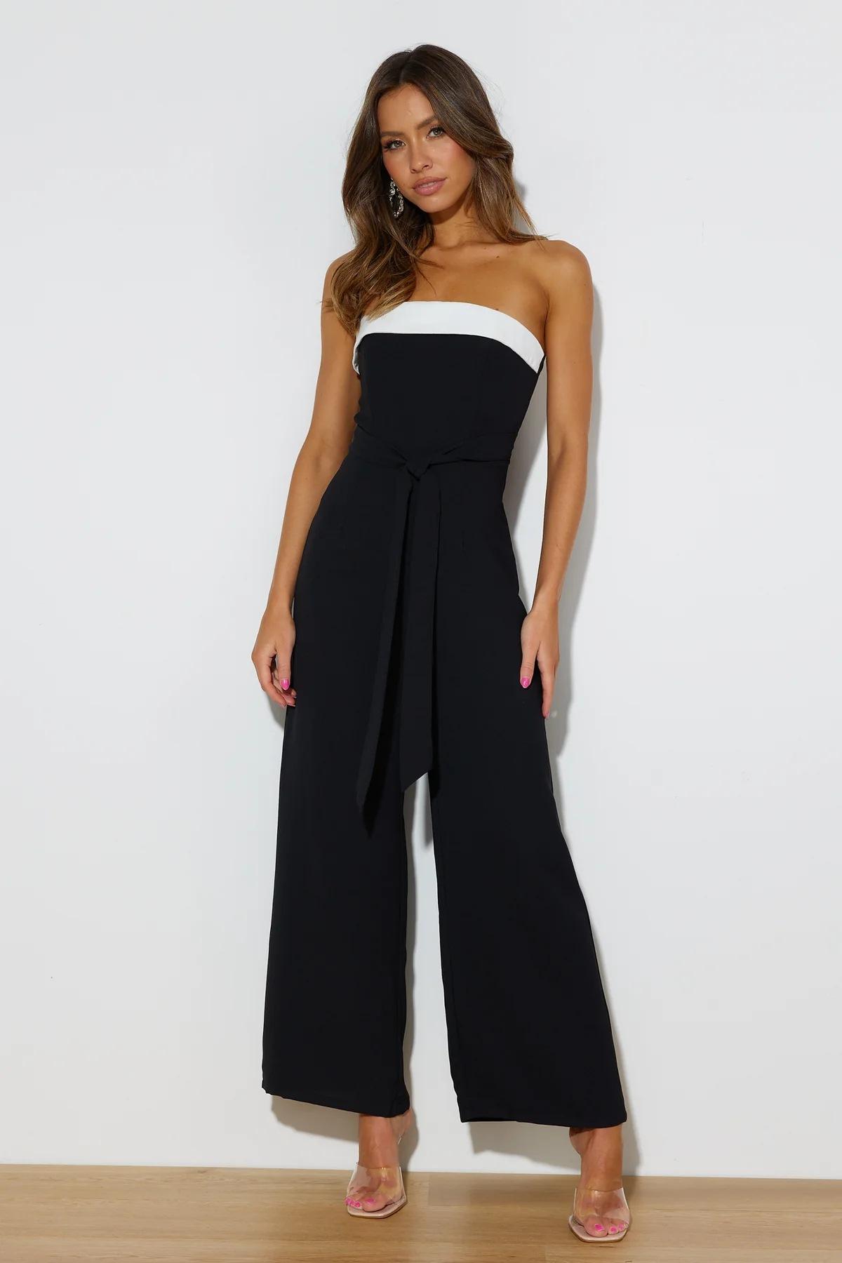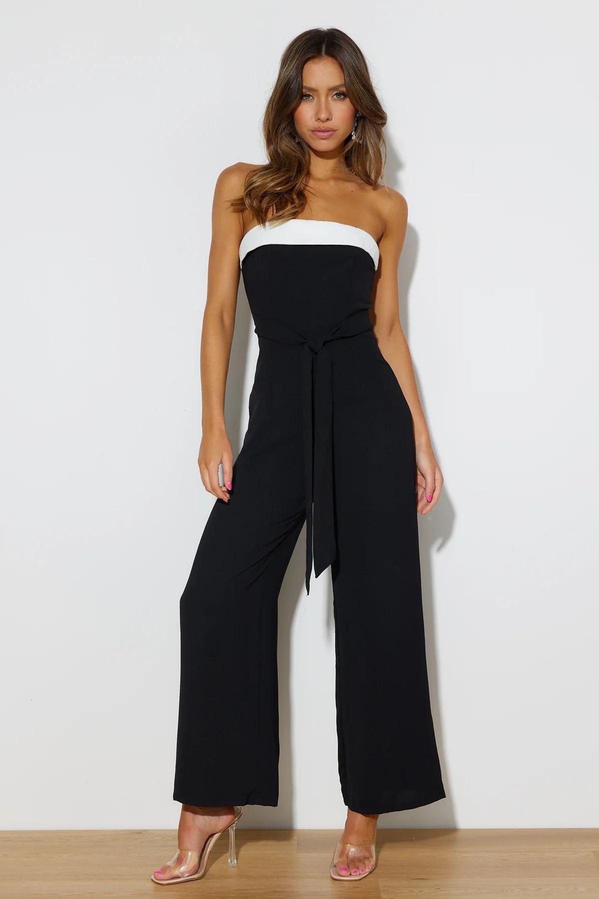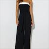 Mameluco para mujer de estilo europeo y americano de moda transfronteriza 2025, bloque de color moderno, hombros descubiertos, ceñido a la cintura, mameluco largo para mujer