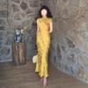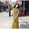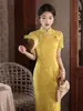 [Disponible transfronterizamente] Nuevo cheongsam chino, verano 2024, vestido largo amarillo mejorado para mujer.