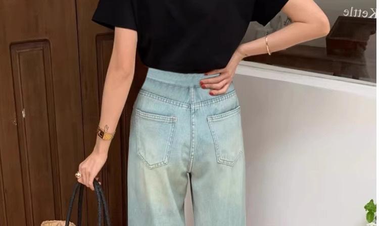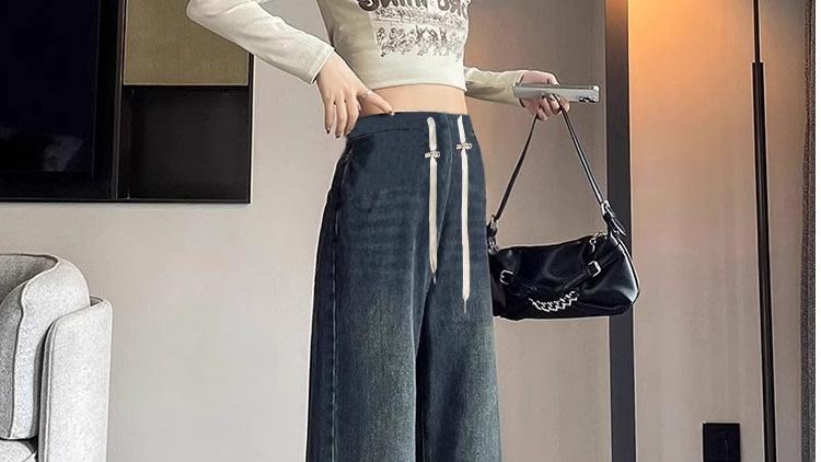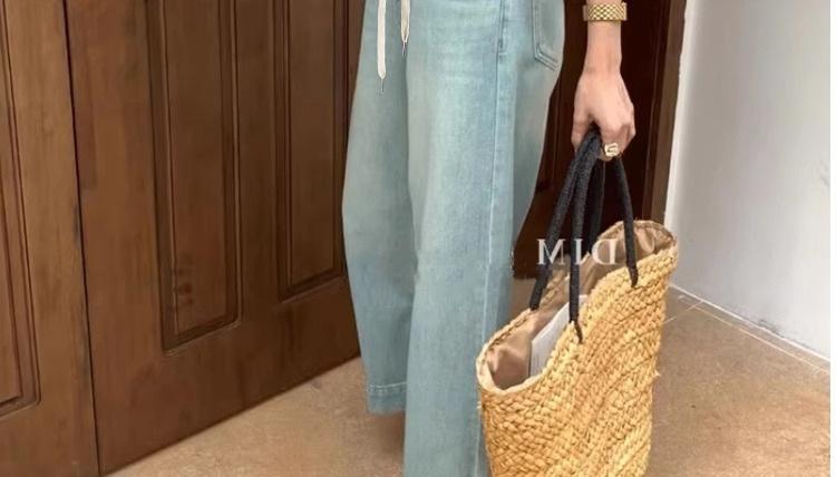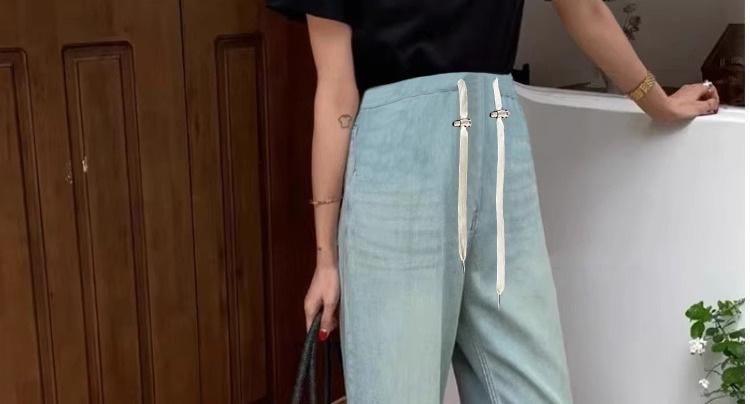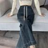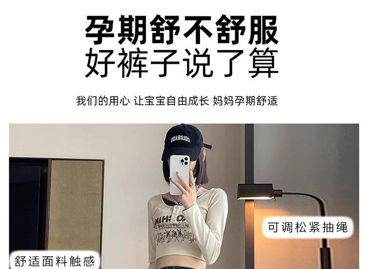 Calidad en stock Pantalones vaqueros para embarazadas de primavera y otoño, sin abdomen, con cordón, pantalones rectos de pierna ancha, pantalones para embarazadas, ropa de otoño