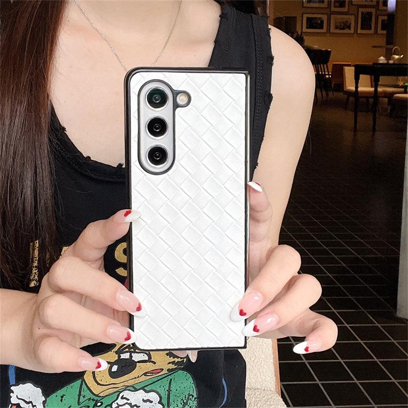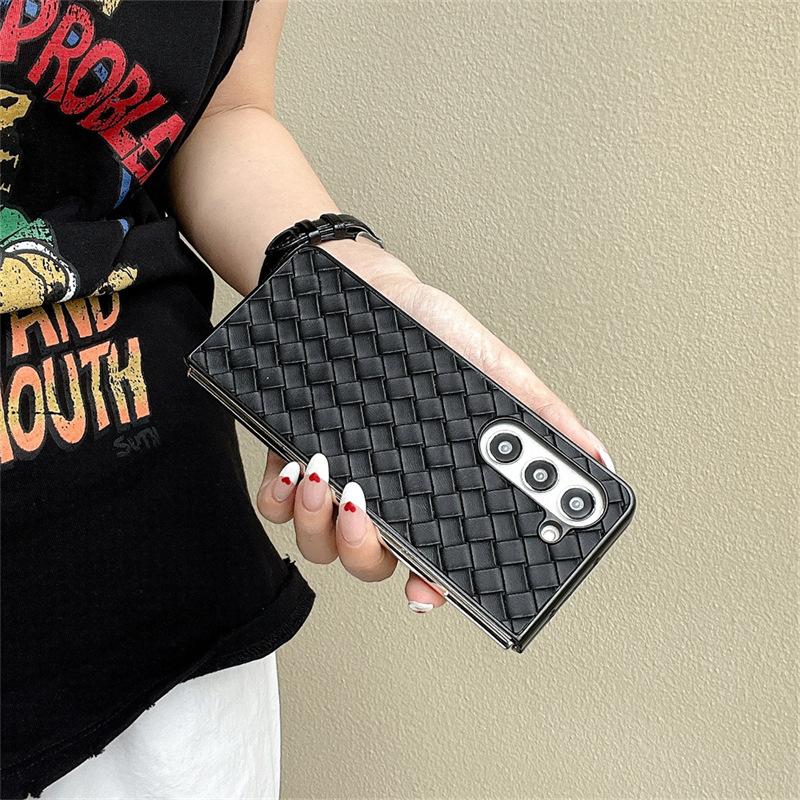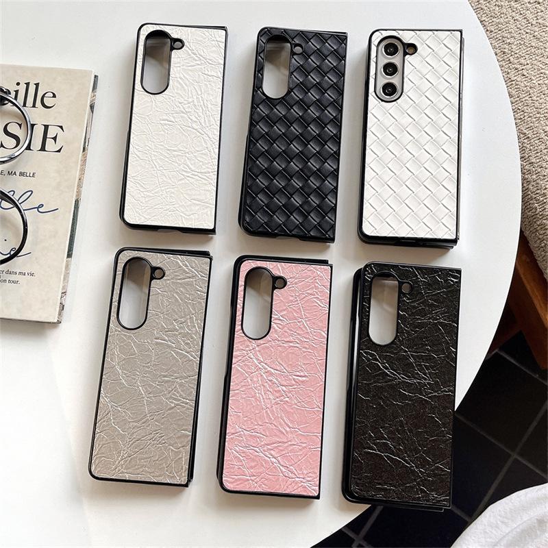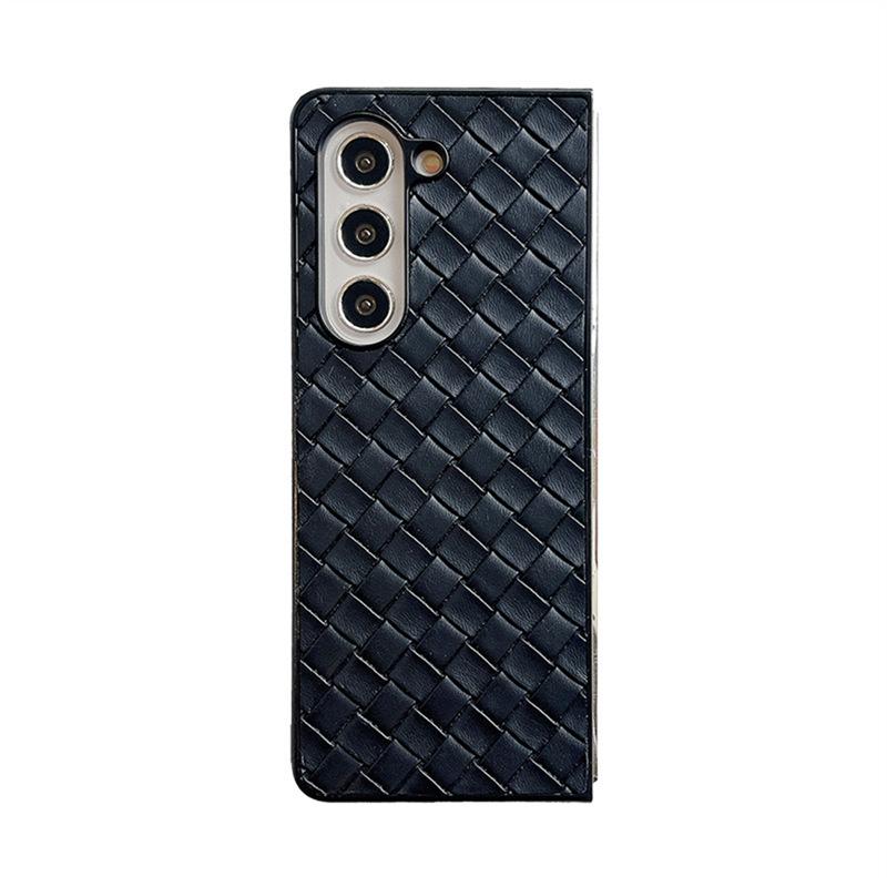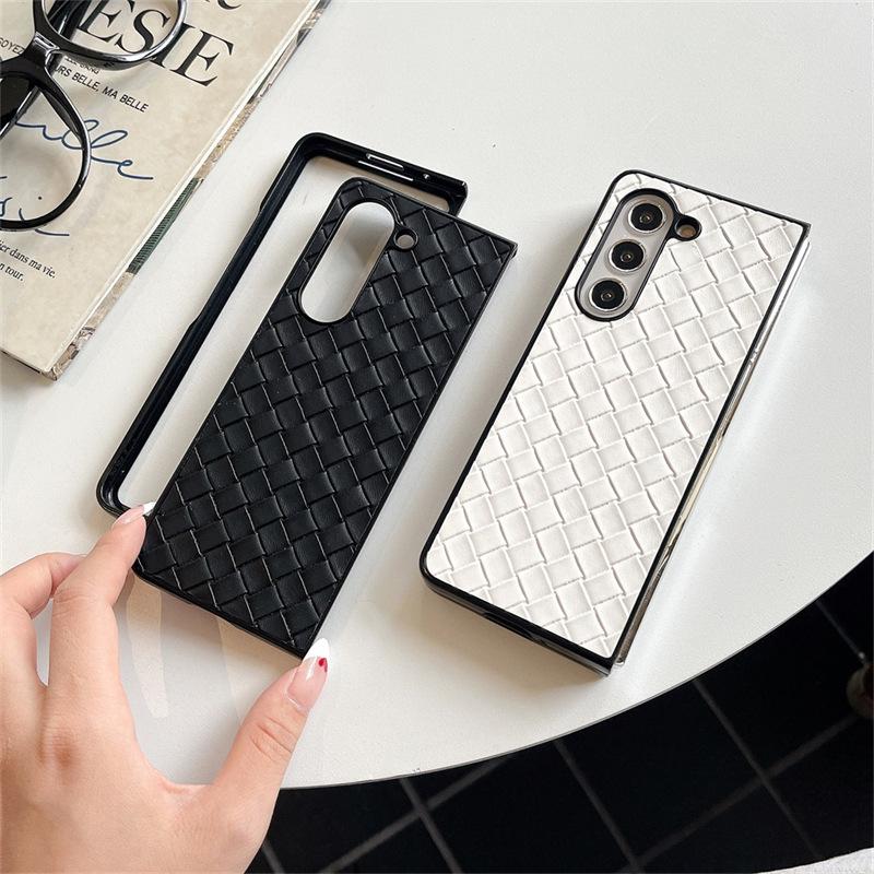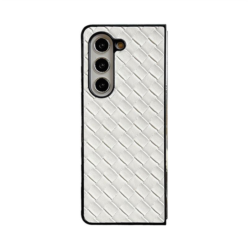 Funda para teléfono Samsung ZFlip6 con patrón tejido, funda protectora trasera rígida con patrón de cuero y pantalla plegable para ZFlip5