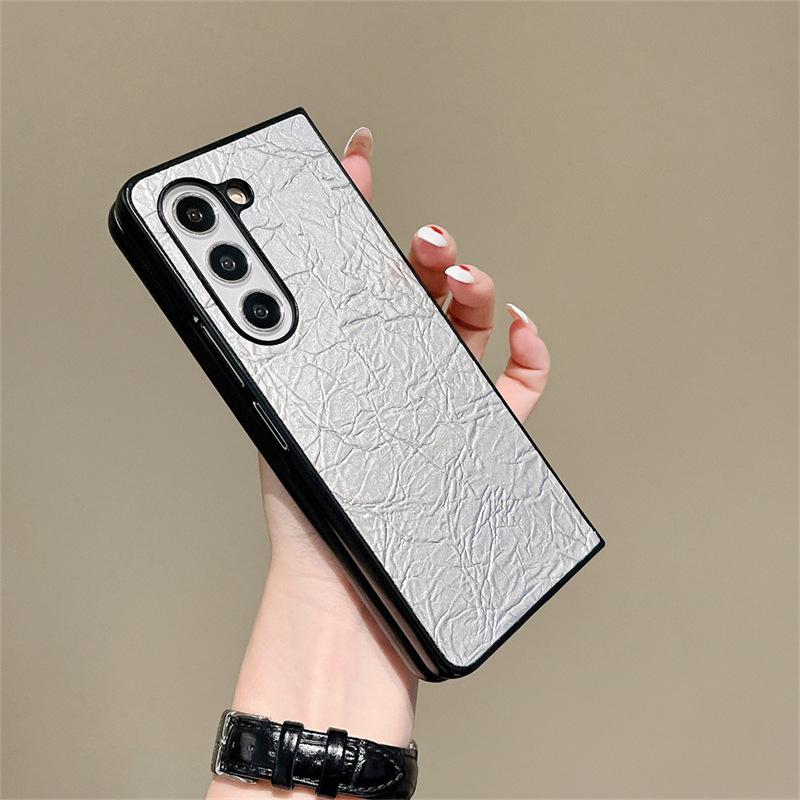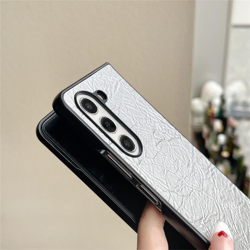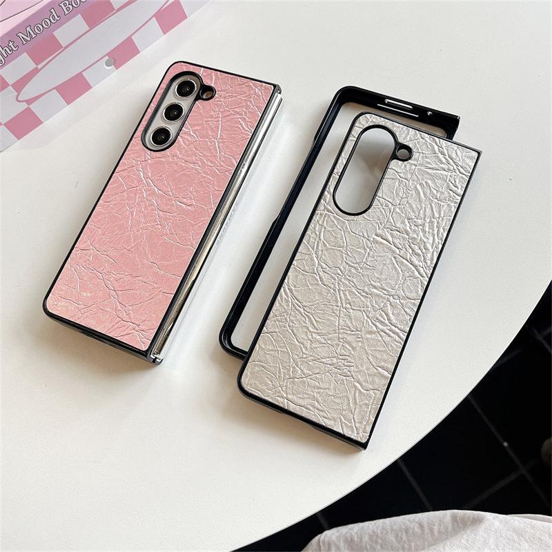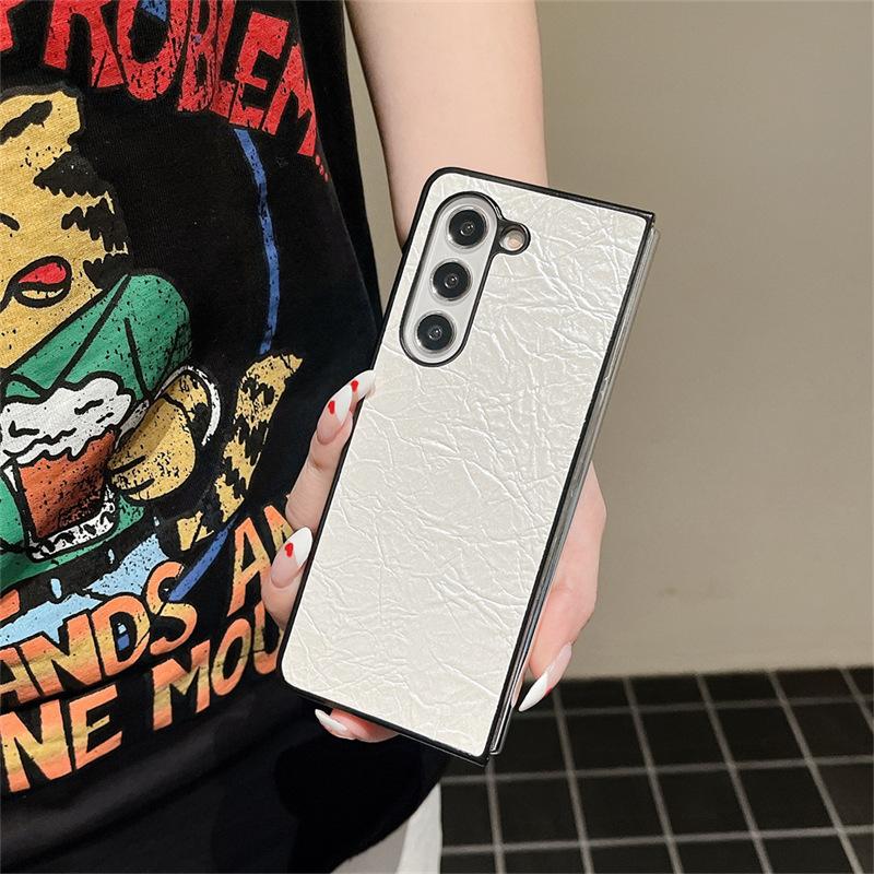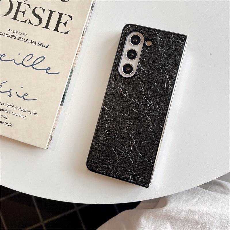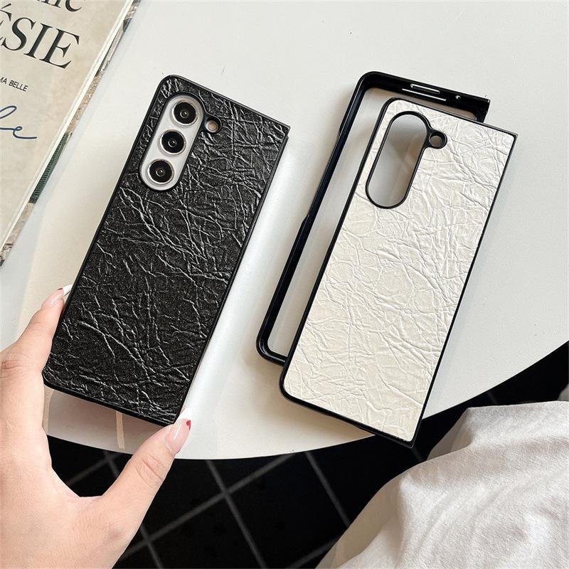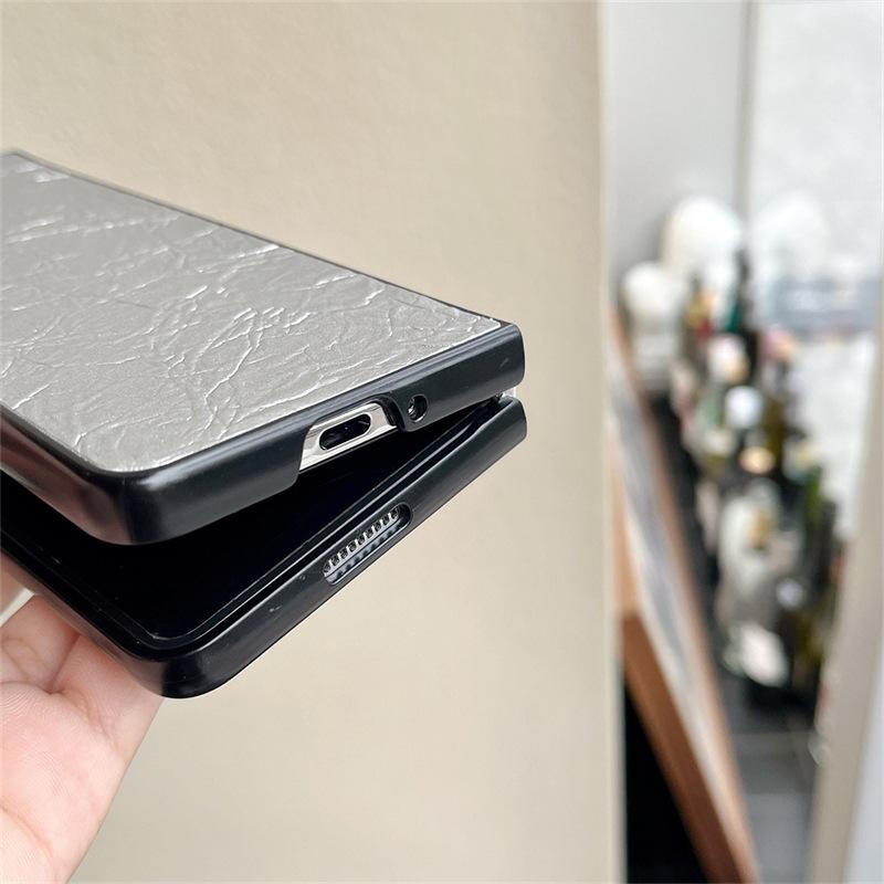 Funda para teléfono Samsung ZFlip6 con patrón tejido, funda protectora trasera rígida con patrón de cuero y pantalla plegable para ZFlip5