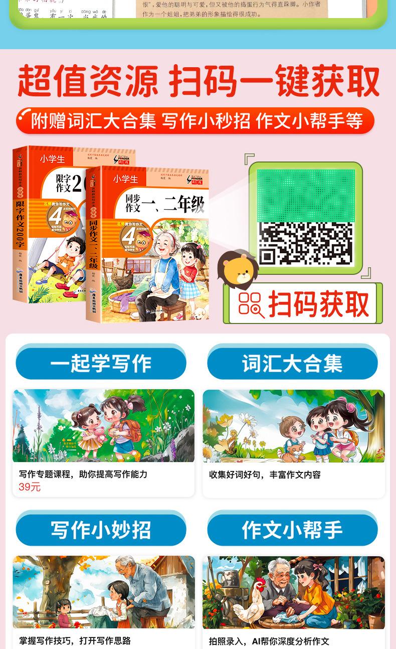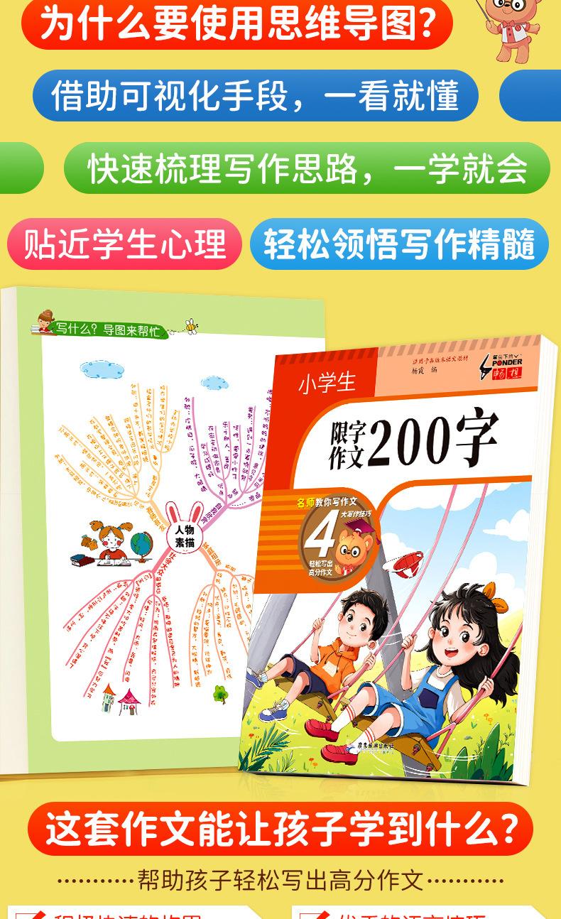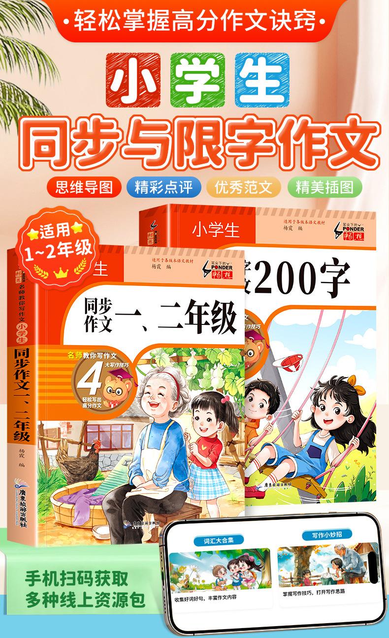 Composición sincrónica de primer, segundo, tercer, cuarto, quinto y sexto grado, 200 palabras, palabras limitadas, material modelo de capacitación para estudiantes de primaria de 1.º a 6.º grado.