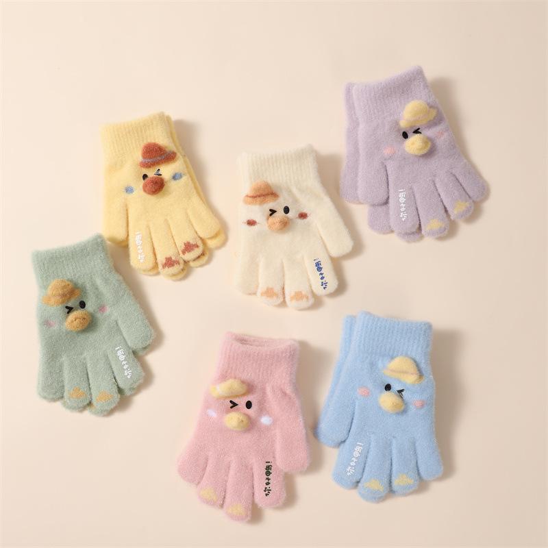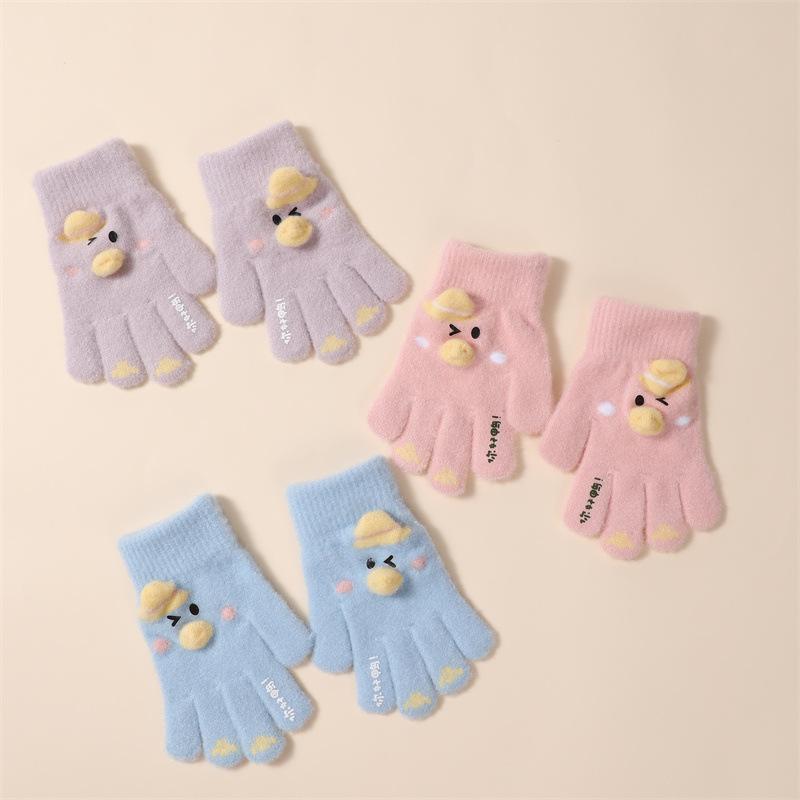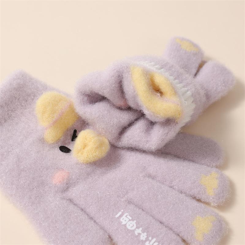 Guantes para niños de estilo coreano, otoño e invierno, nuevos y lindos guantes de dibujos animados de oso para niños y niñas, resistentes al frío y cálidos para los dedos, al por mayor