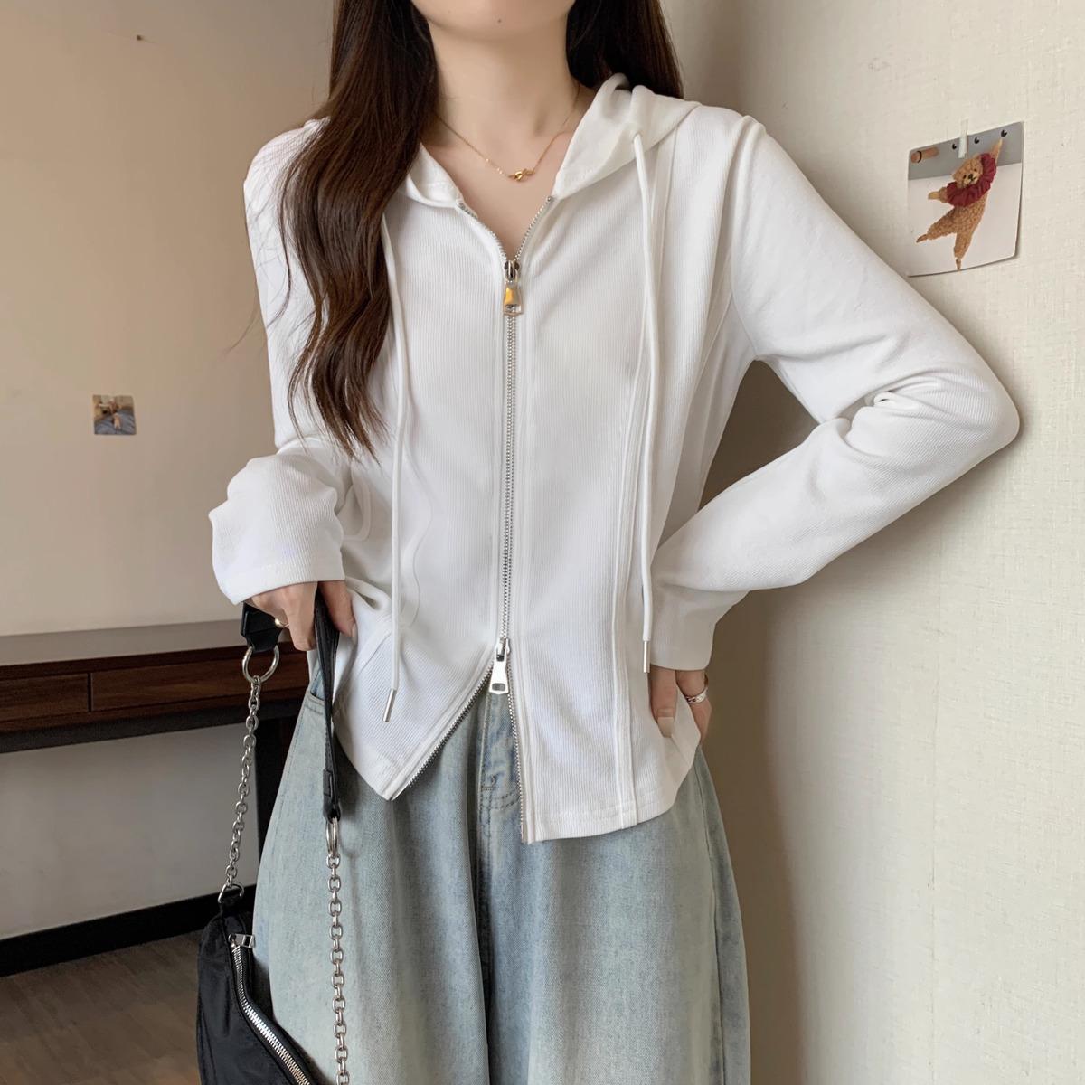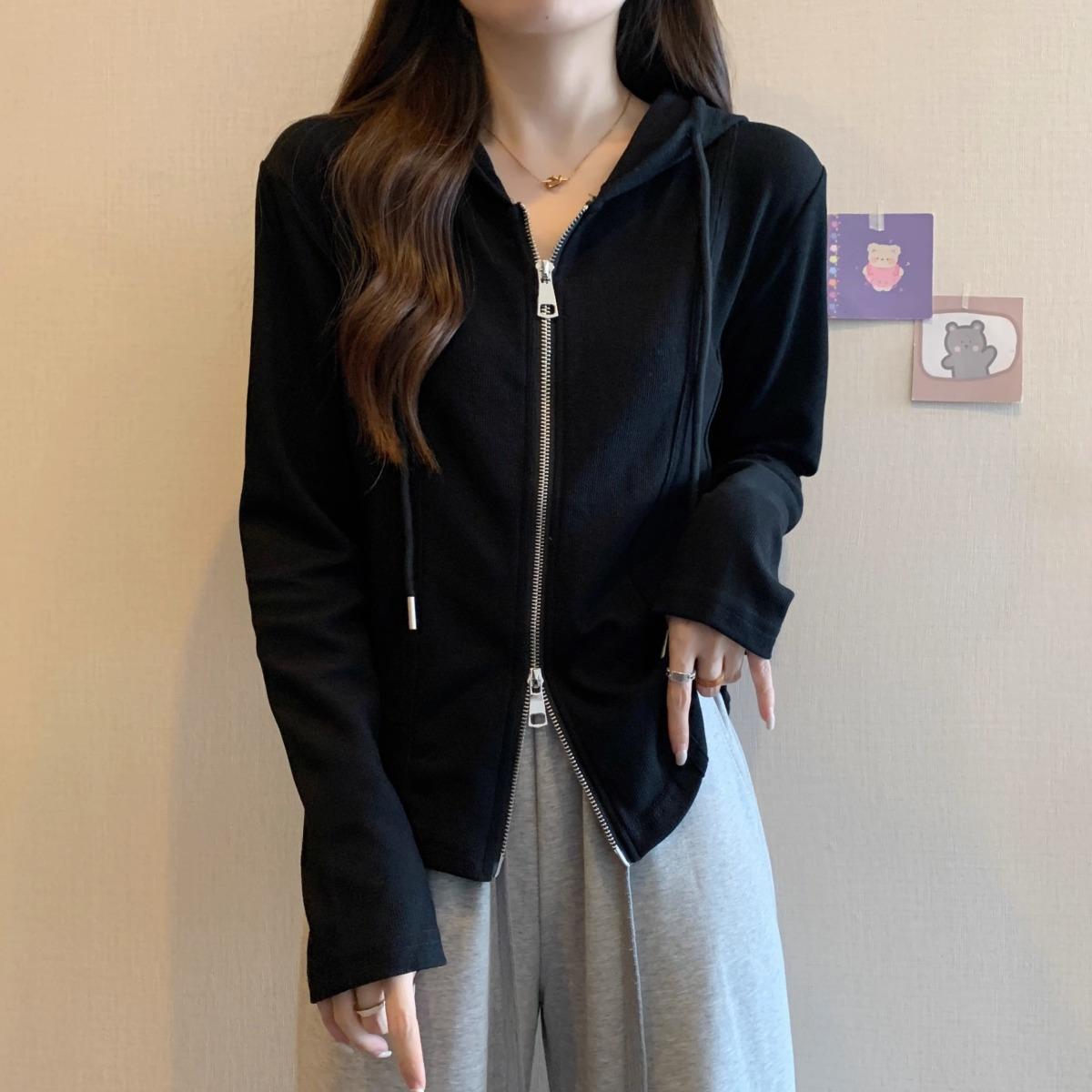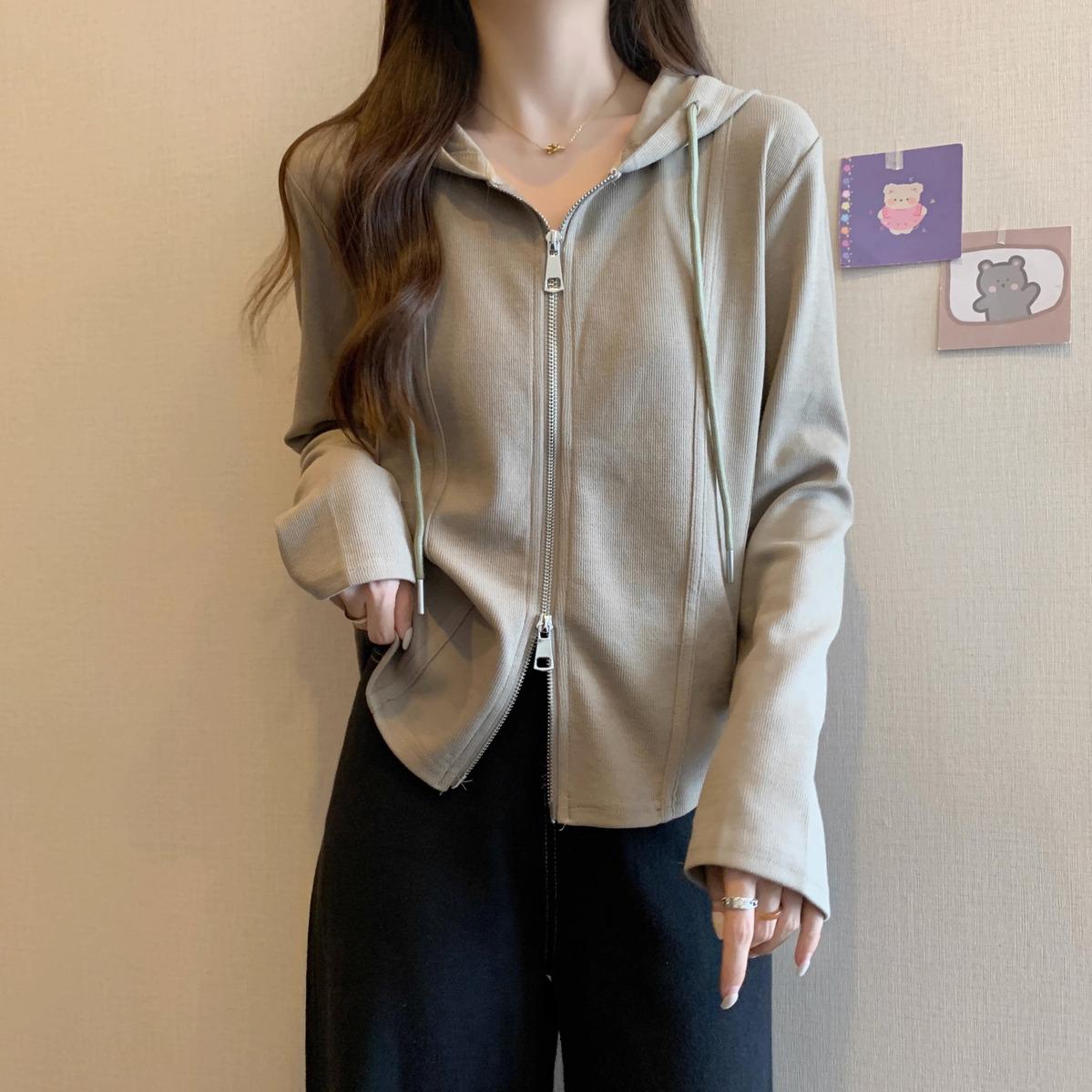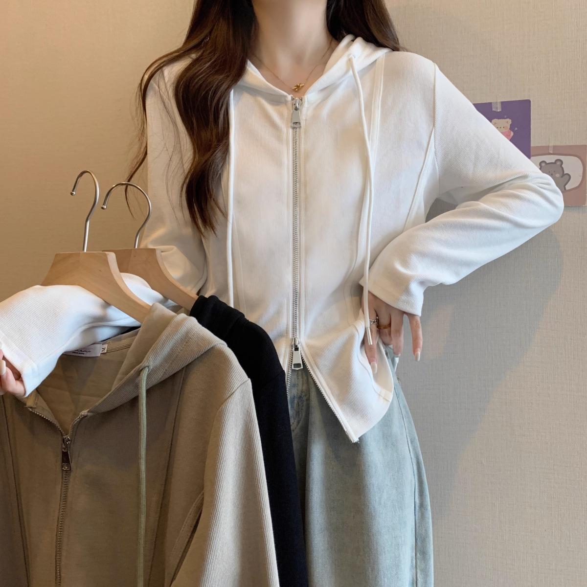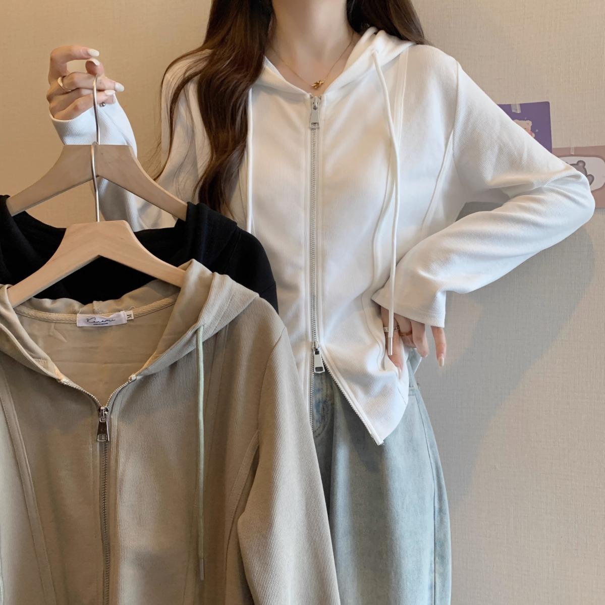 Suéter de manga larga con capucha y doble cremallera para mujer, ropa de otoño e invierno, nuevo abrigo holgado y adelgazante de talla grande, camiseta fina