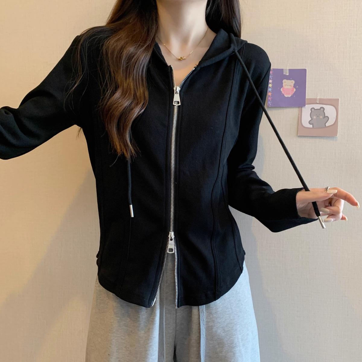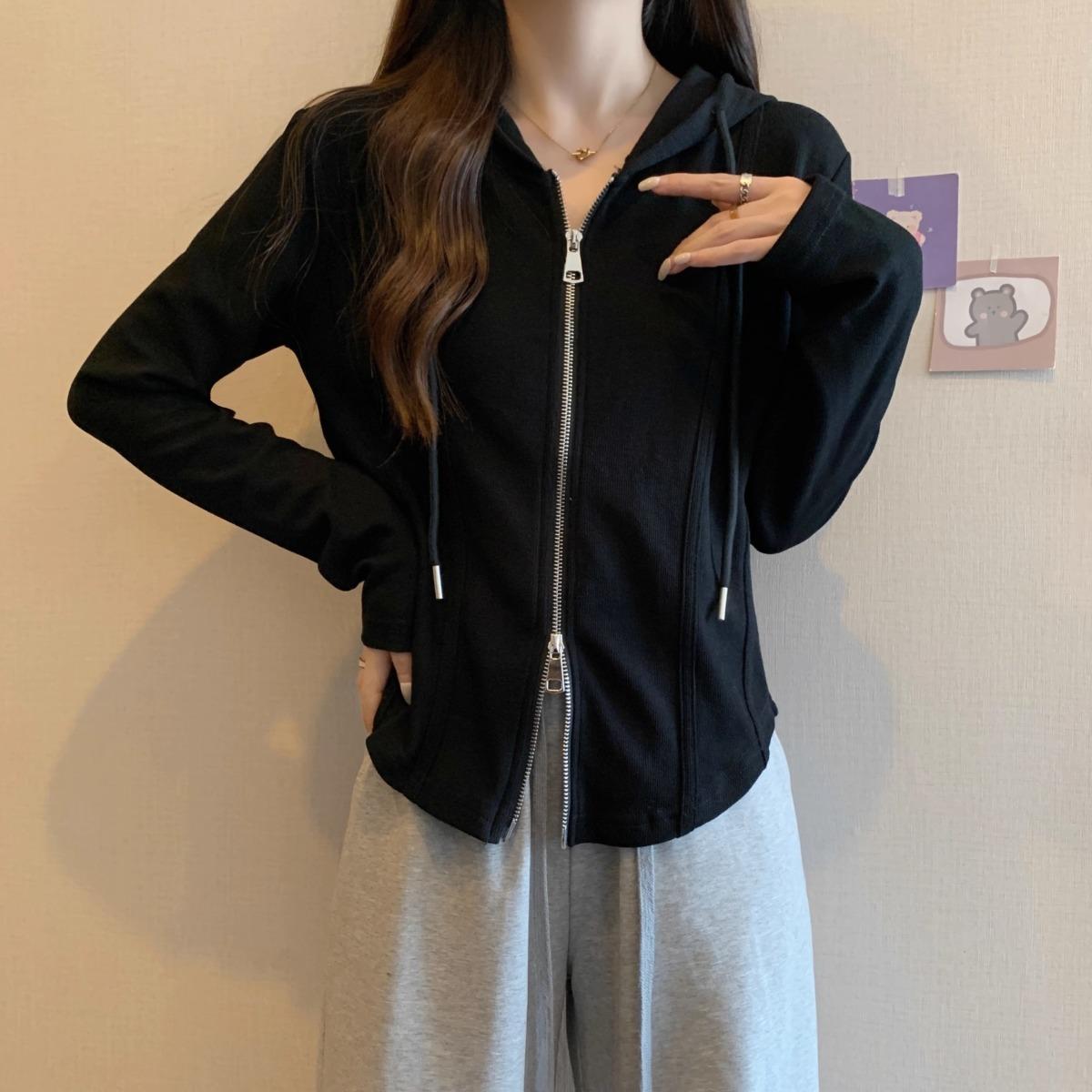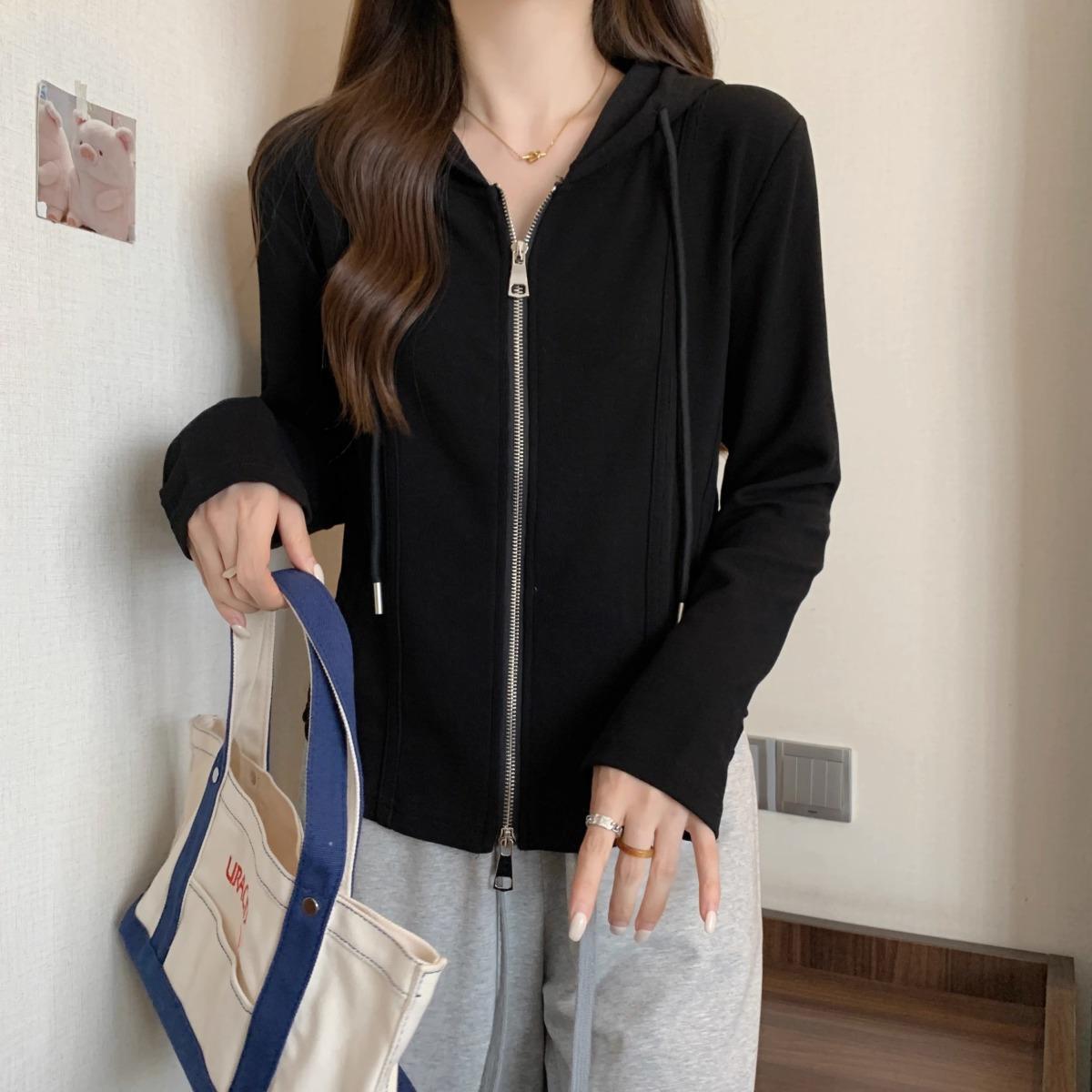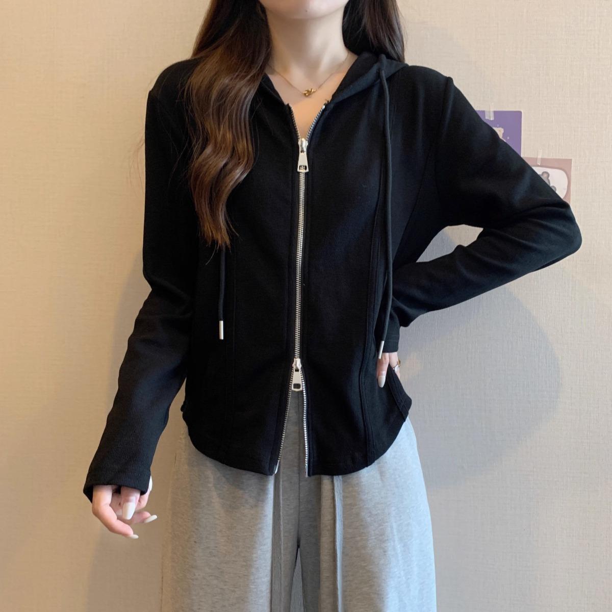 Suéter de manga larga con capucha y doble cremallera para mujer, ropa de otoño e invierno, nuevo abrigo holgado y adelgazante de talla grande, camiseta fina