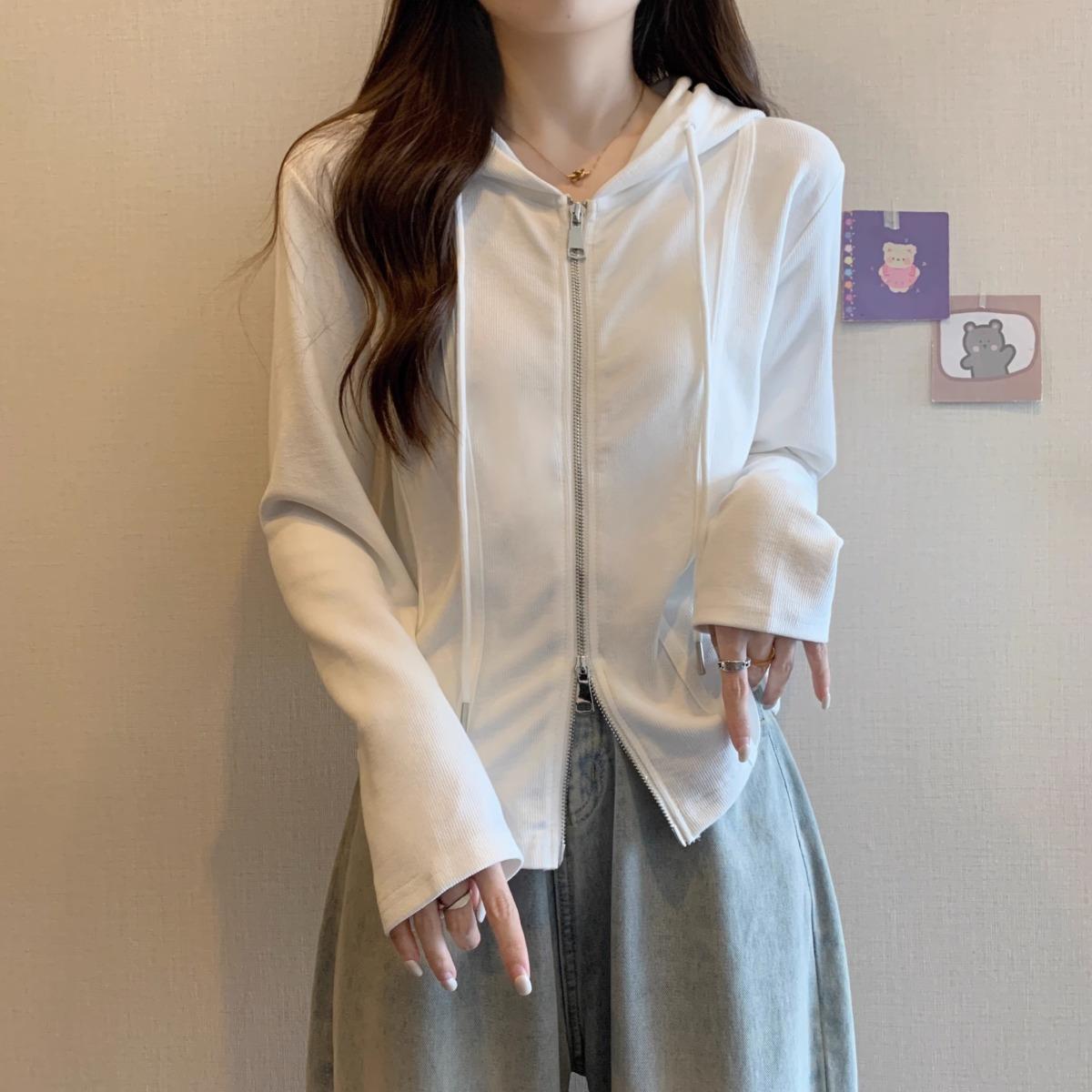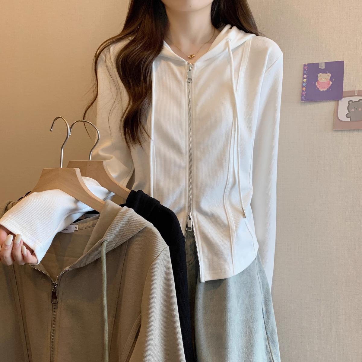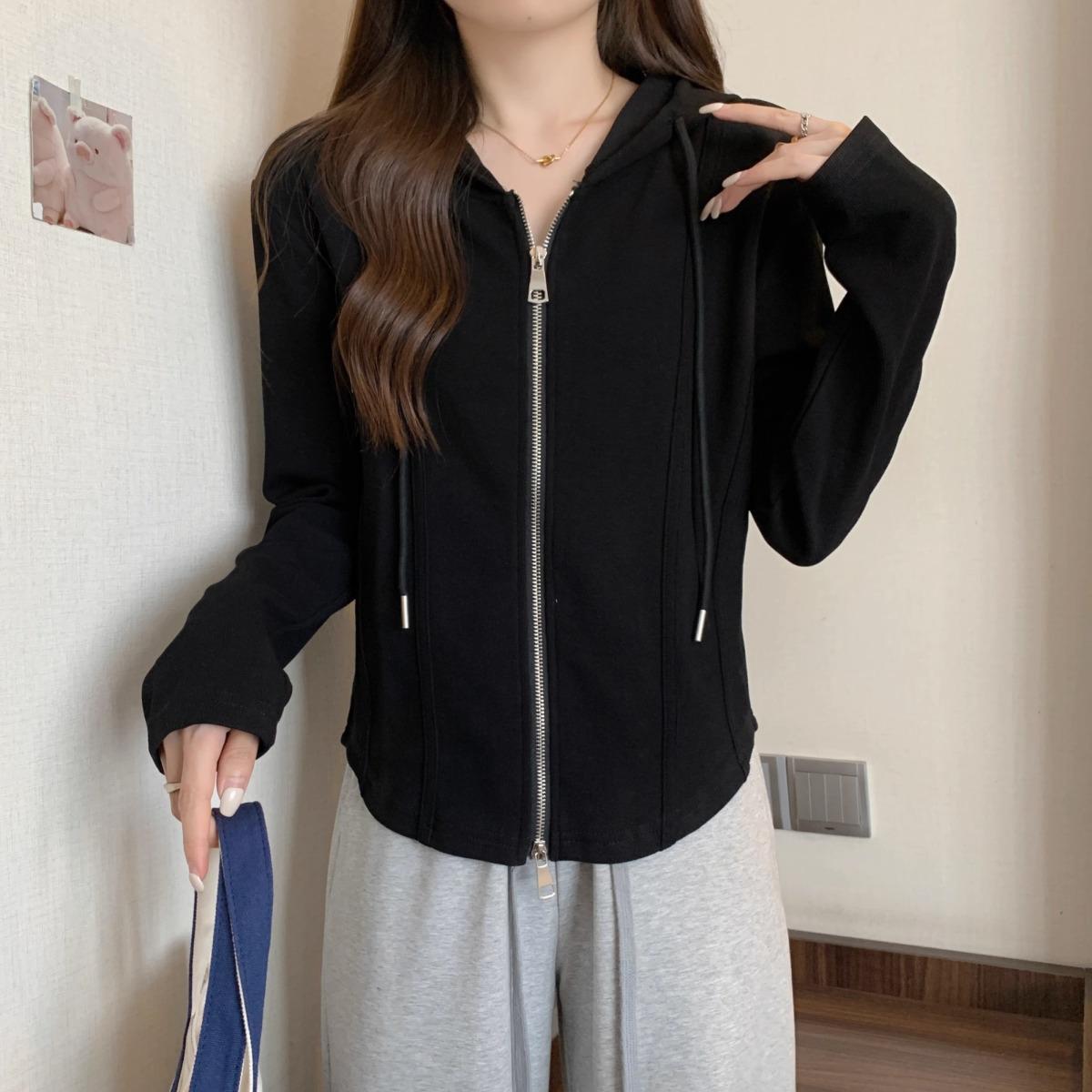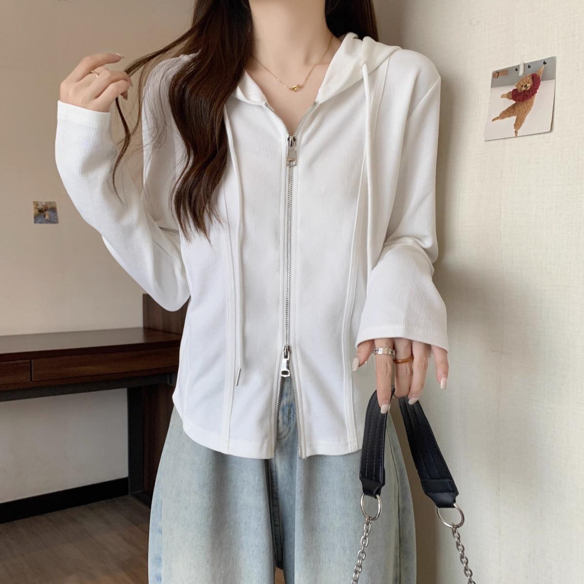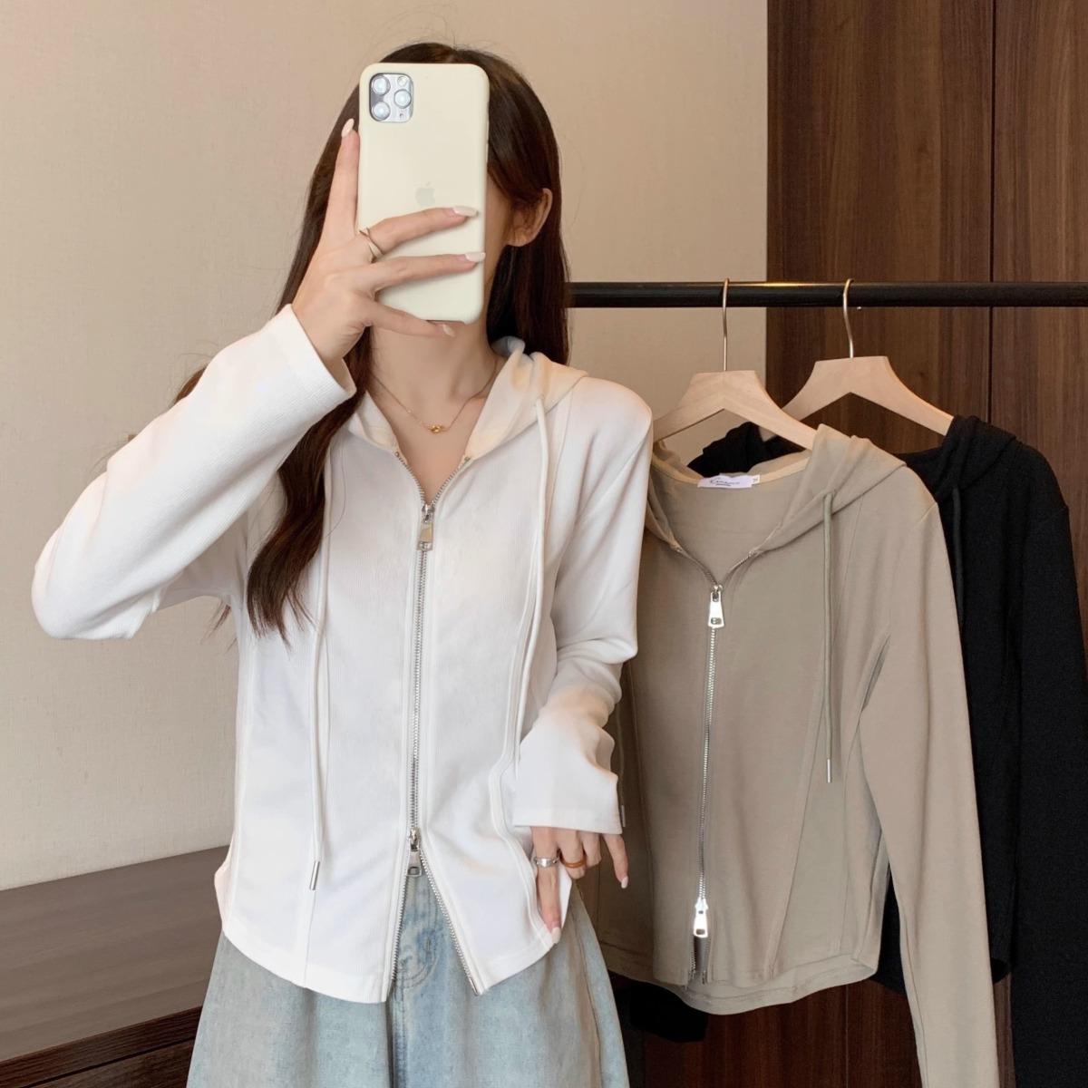Suéter de manga larga con capucha y doble cremallera para mujer, ropa de otoño e invierno, nuevo abrigo holgado y adelgazante de talla grande, camiseta fina