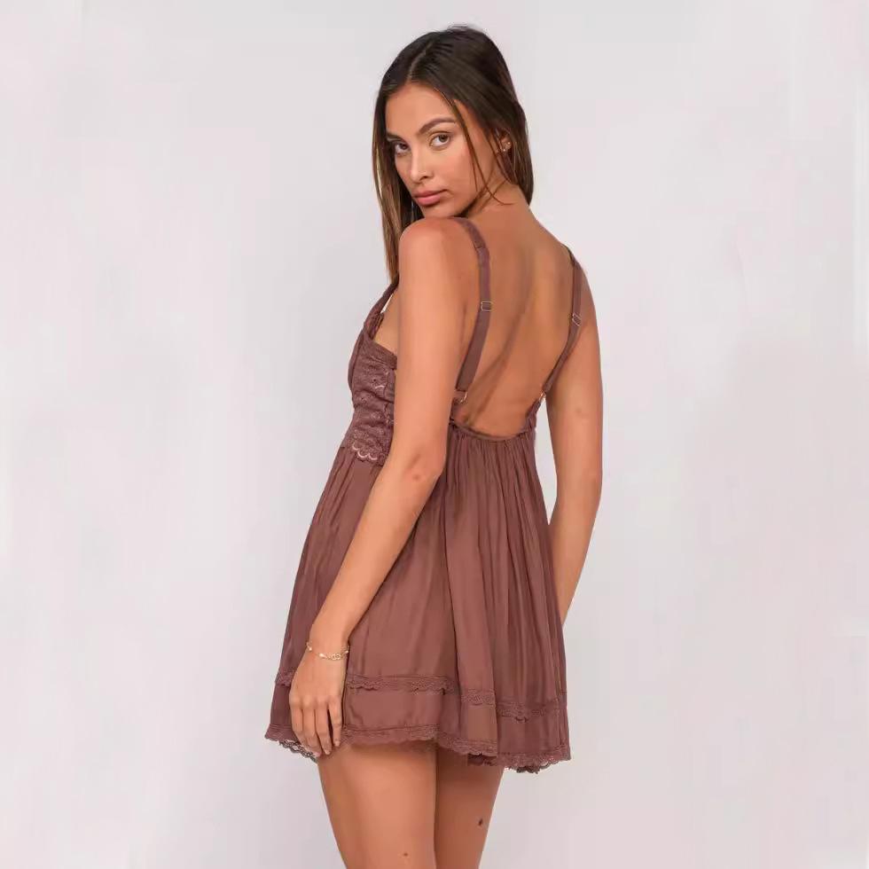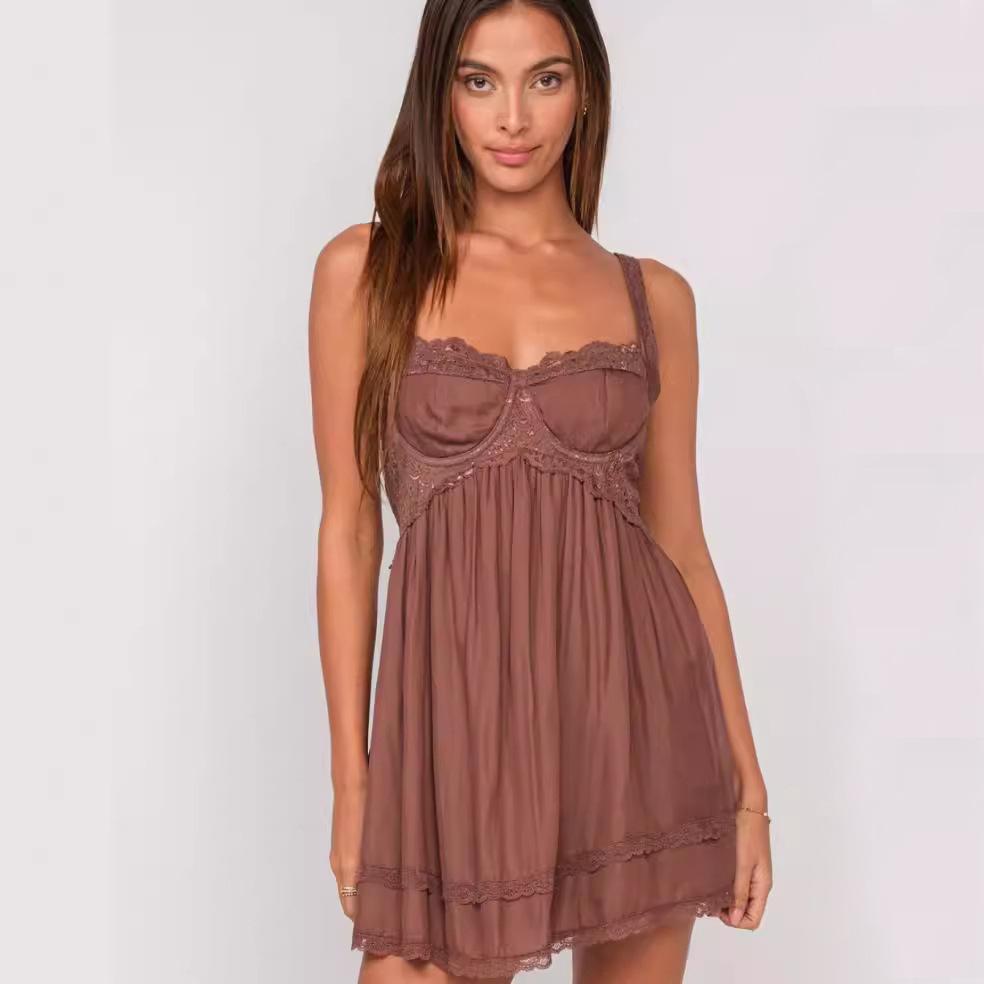 Amazon Verano Temperamento Moda Tirantes Estilo Suave Vestido Falda para Mujer Estilo Francés