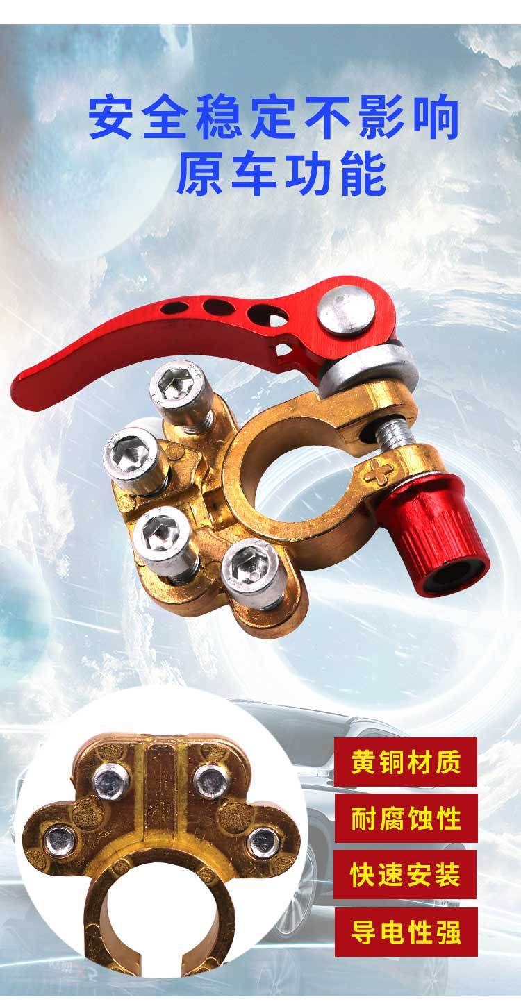 En existencia, cabezal de pila de batería de automóvil multiconector, apto para accesorios de batería multifunción de latón, mandril de batería universal