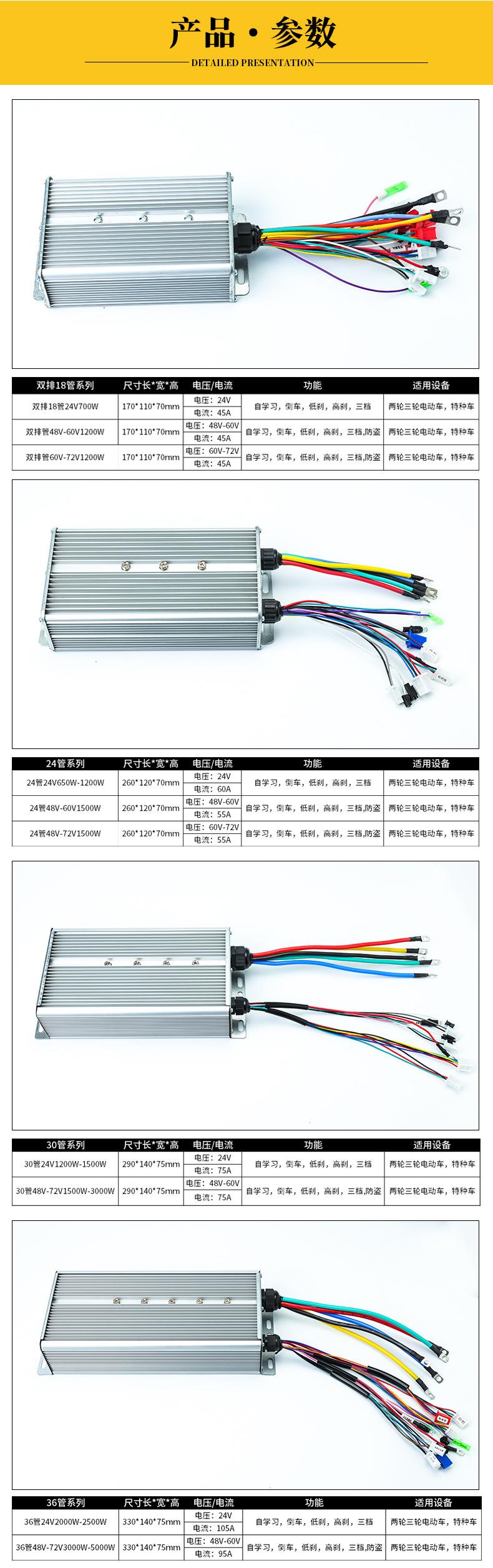 Controlador diferencial eléctrico de tres ruedas de 24 V/48 V/60 V, doble fila, 18 tubos - 36 tubos, controlador de modo dual, onda sinusoidal