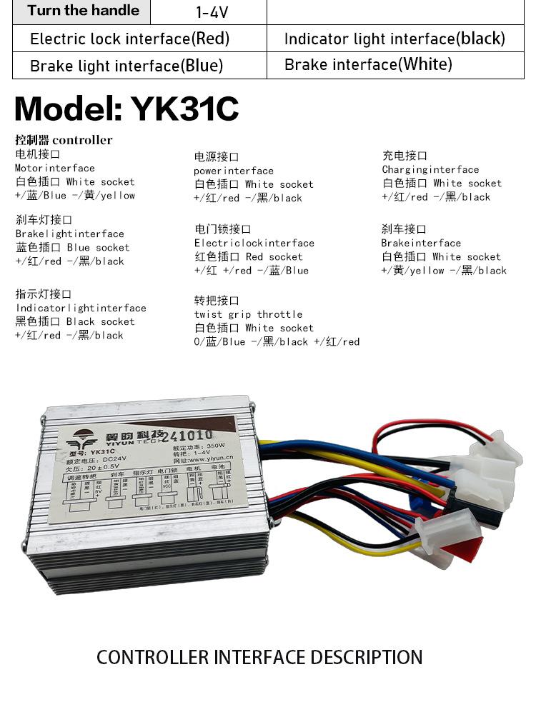 Controlador de escobillas Yiyun YK31C 24V350W para scooter eléctrico ATV, regulador especial