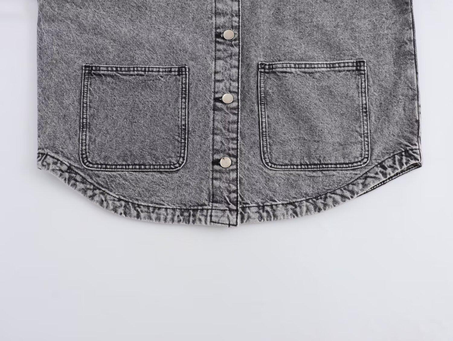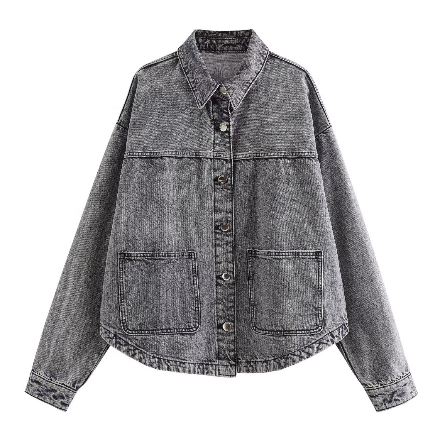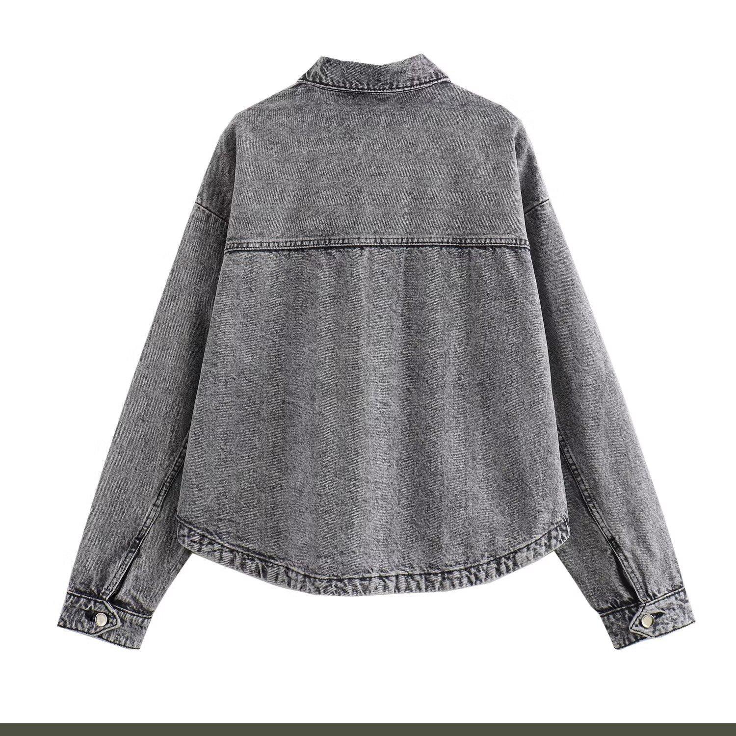 Otoño 2024 Nueva moda transfronteriza europea y americana para mujer, chaqueta vaquera holgada de manga larga lavada informal, abrigo tipo camisa