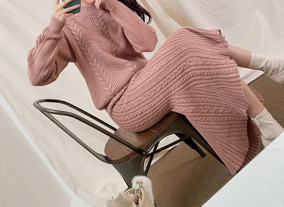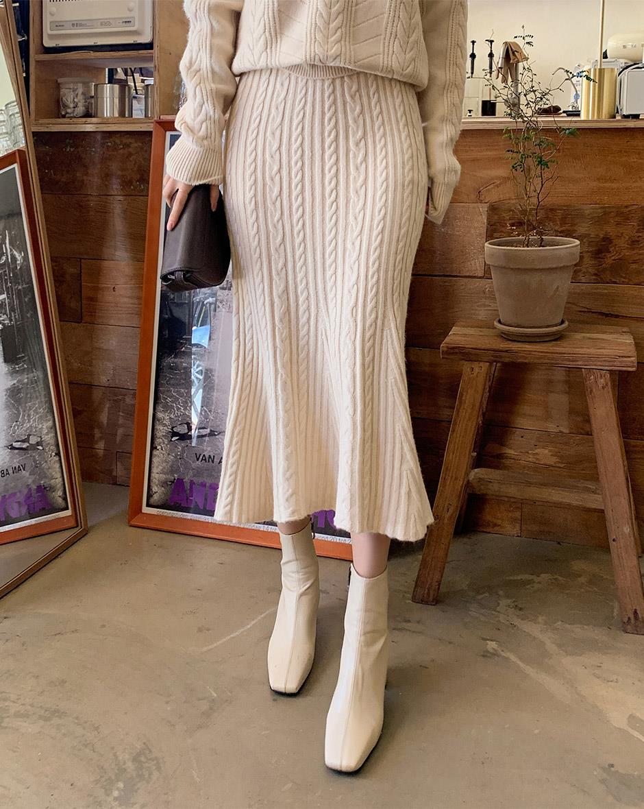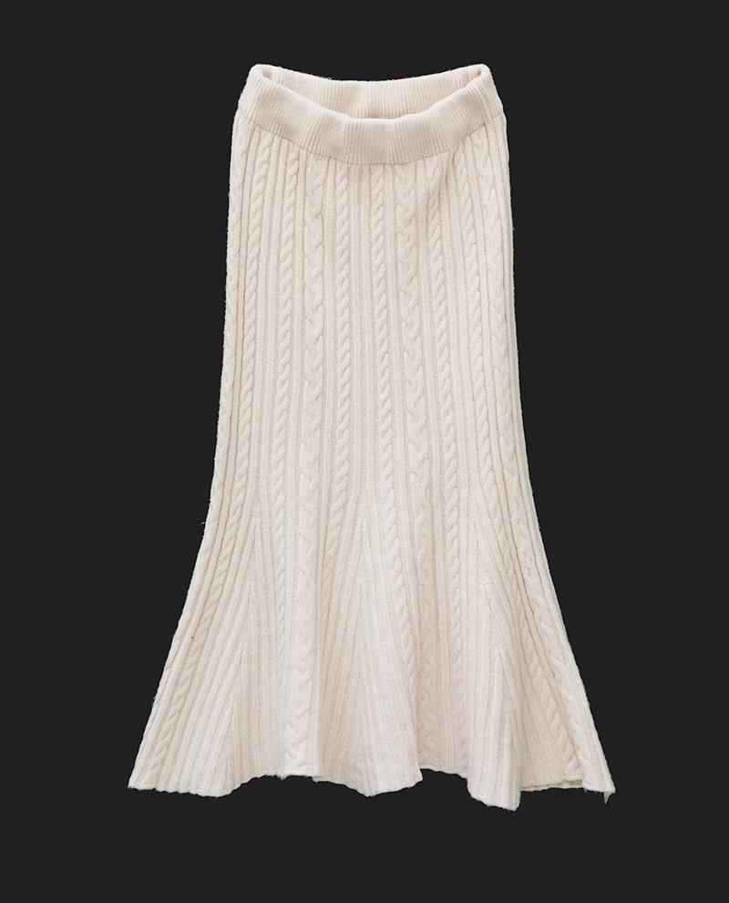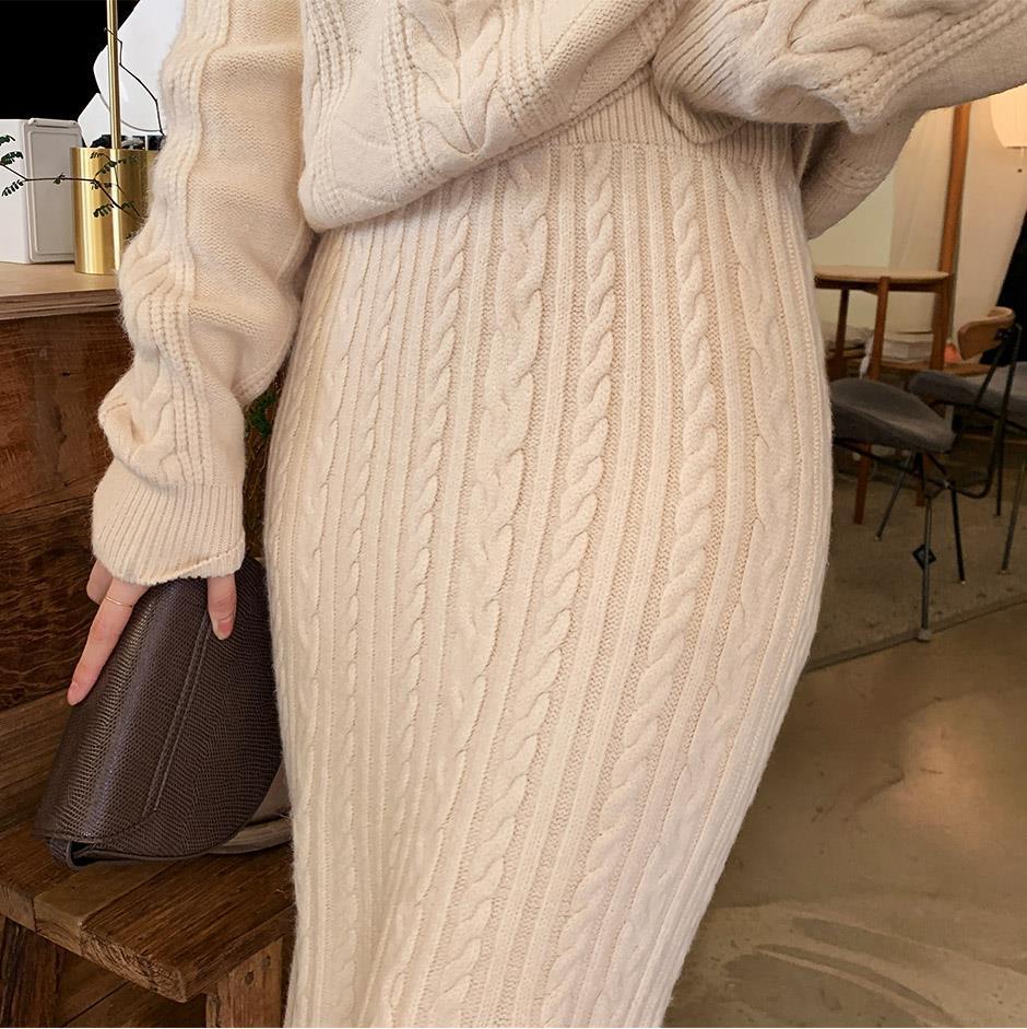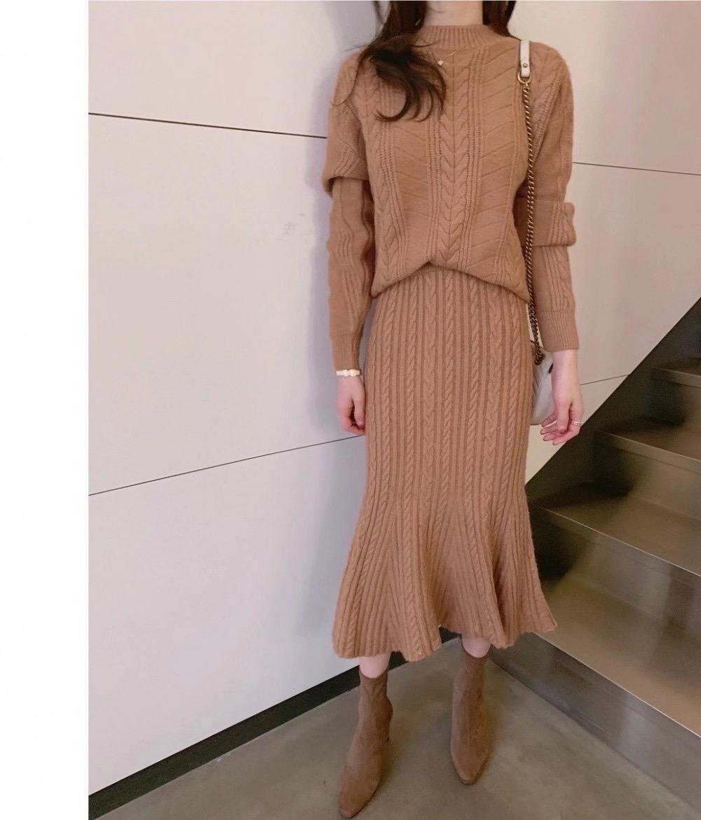 Estilo Nuevo 2025, Aspecto Reductor de Edad y Adelgazante, Suéter Elegante de Color Puro, Falda Tejida con Cola de Pez, Conjunto de Falda de Dos Piezas