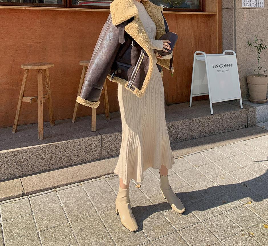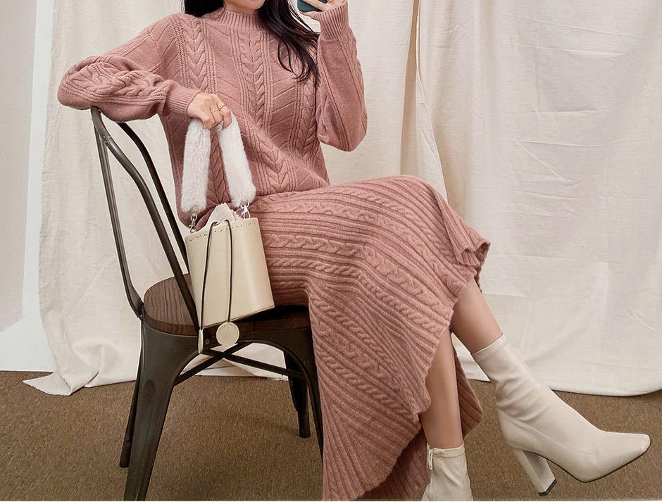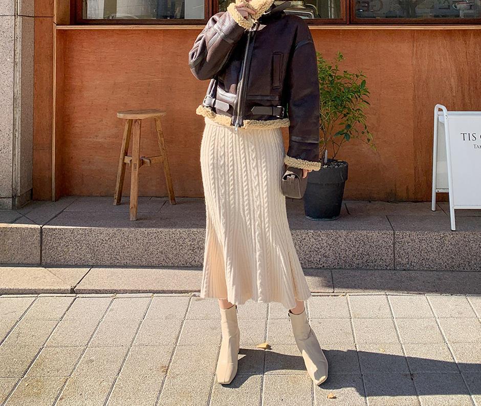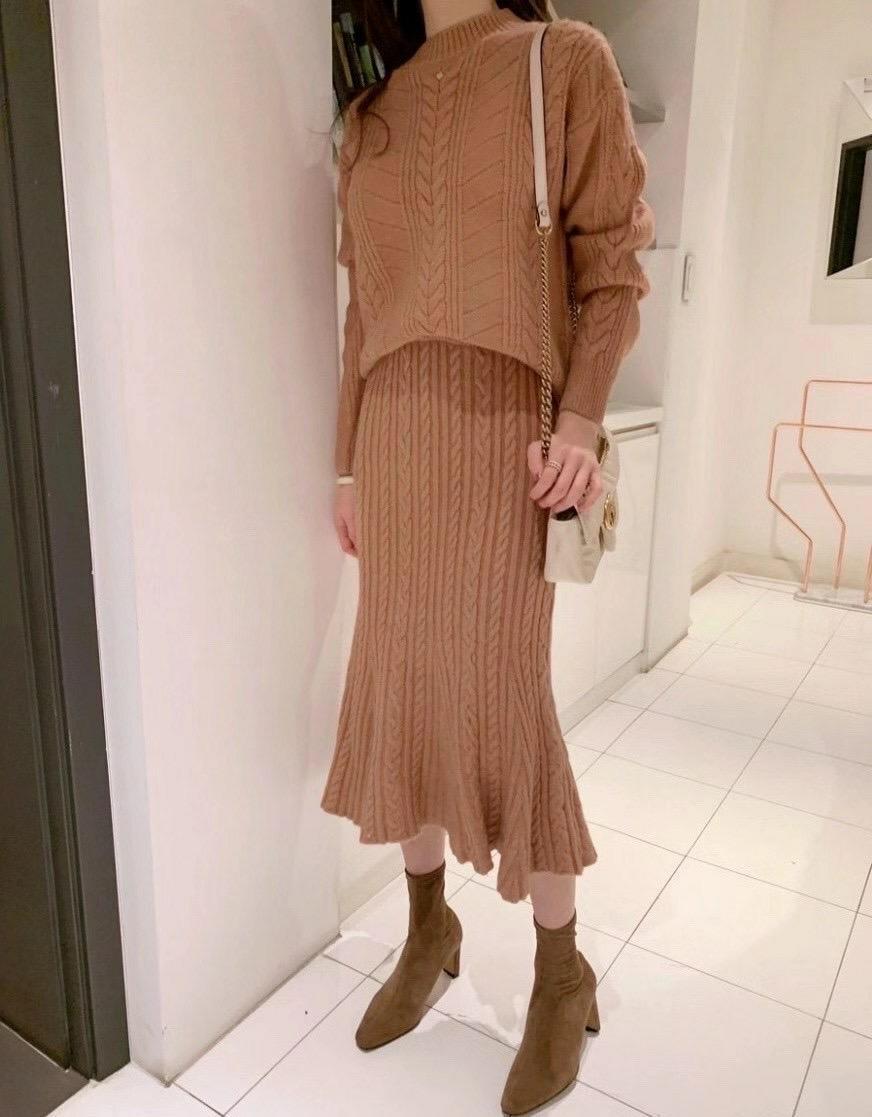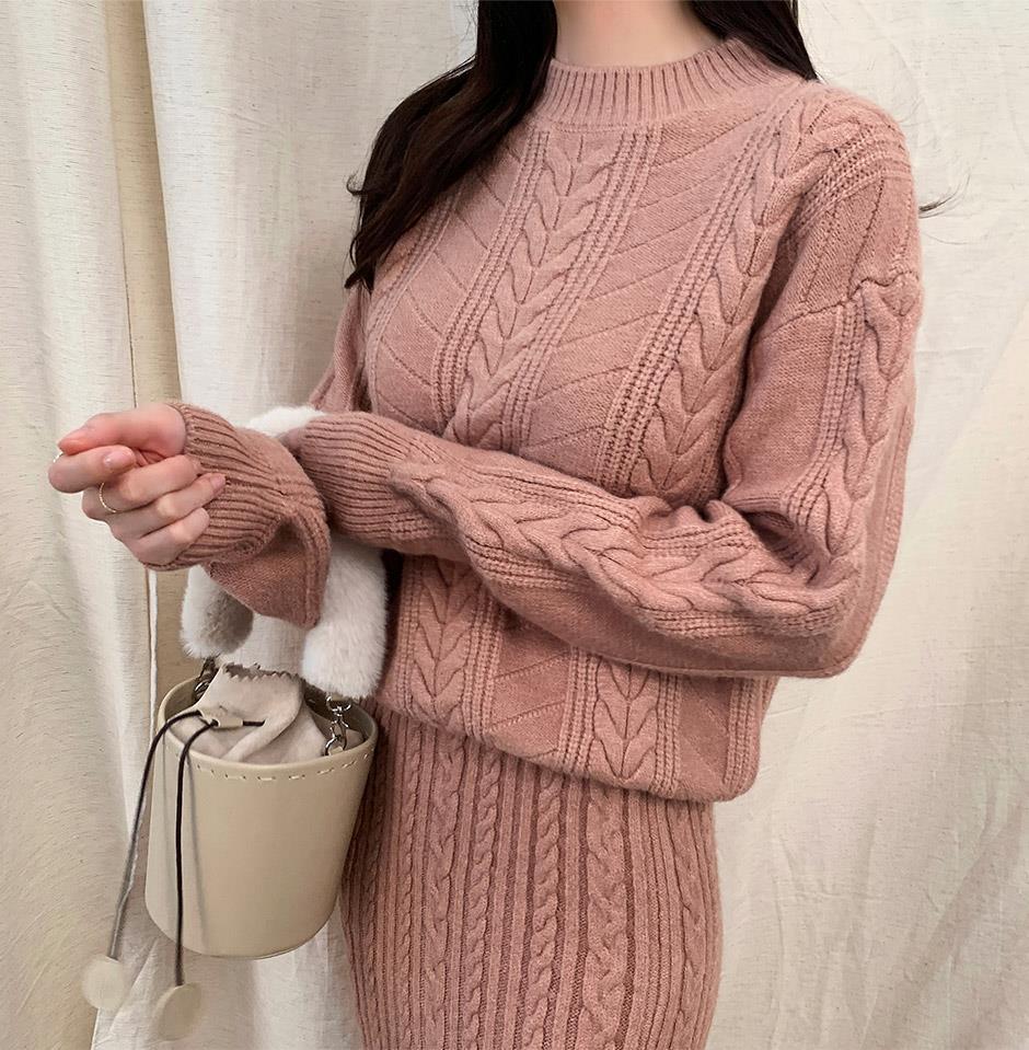 Estilo Nuevo 2025, Aspecto Reductor de Edad y Adelgazante, Suéter Elegante de Color Puro, Falda Tejida con Cola de Pez, Conjunto de Falda de Dos Piezas