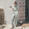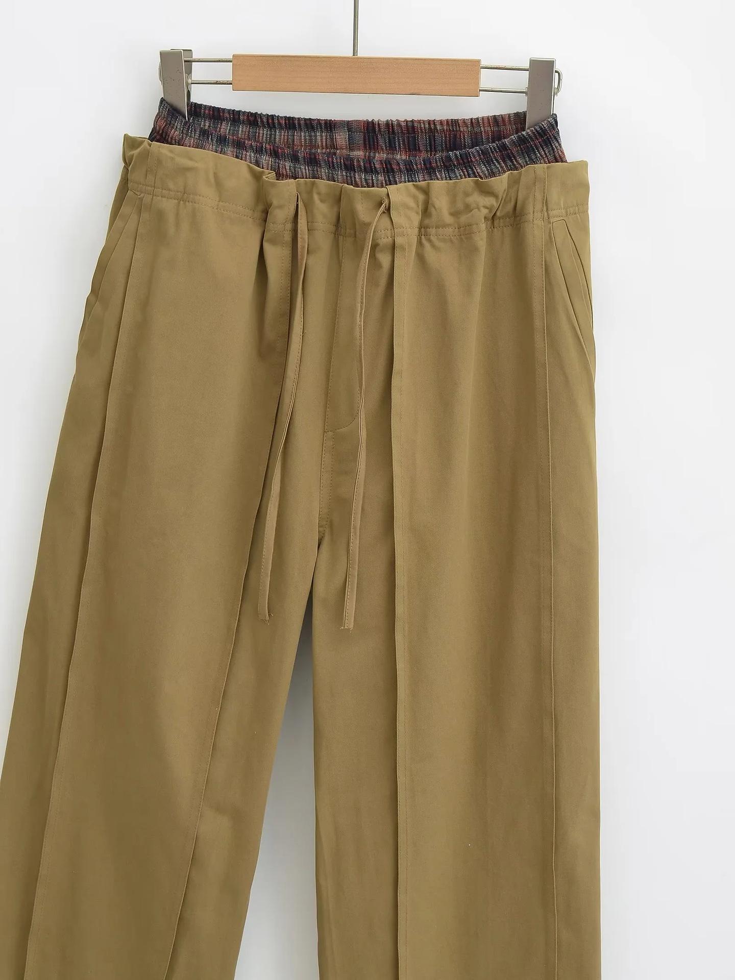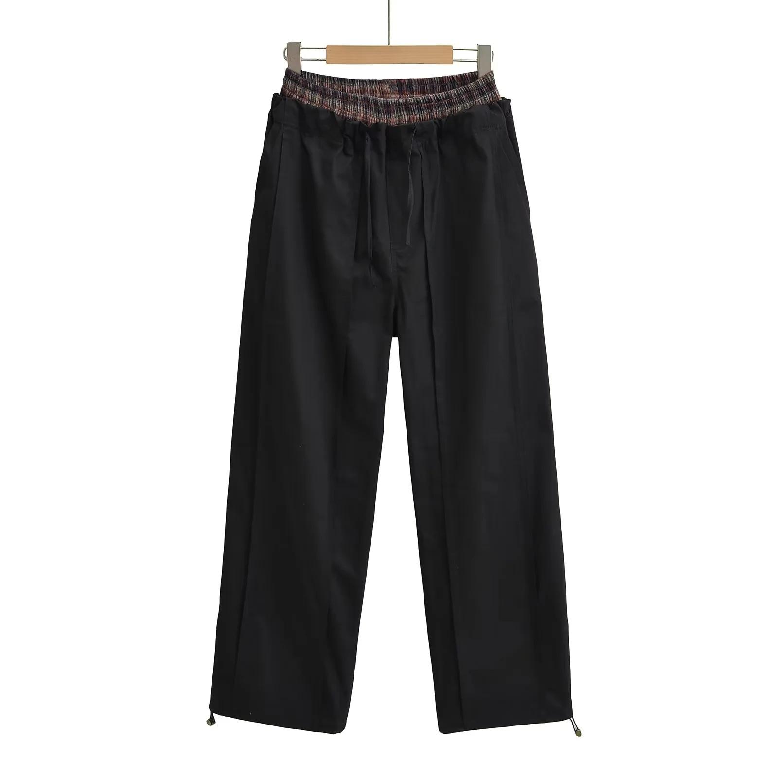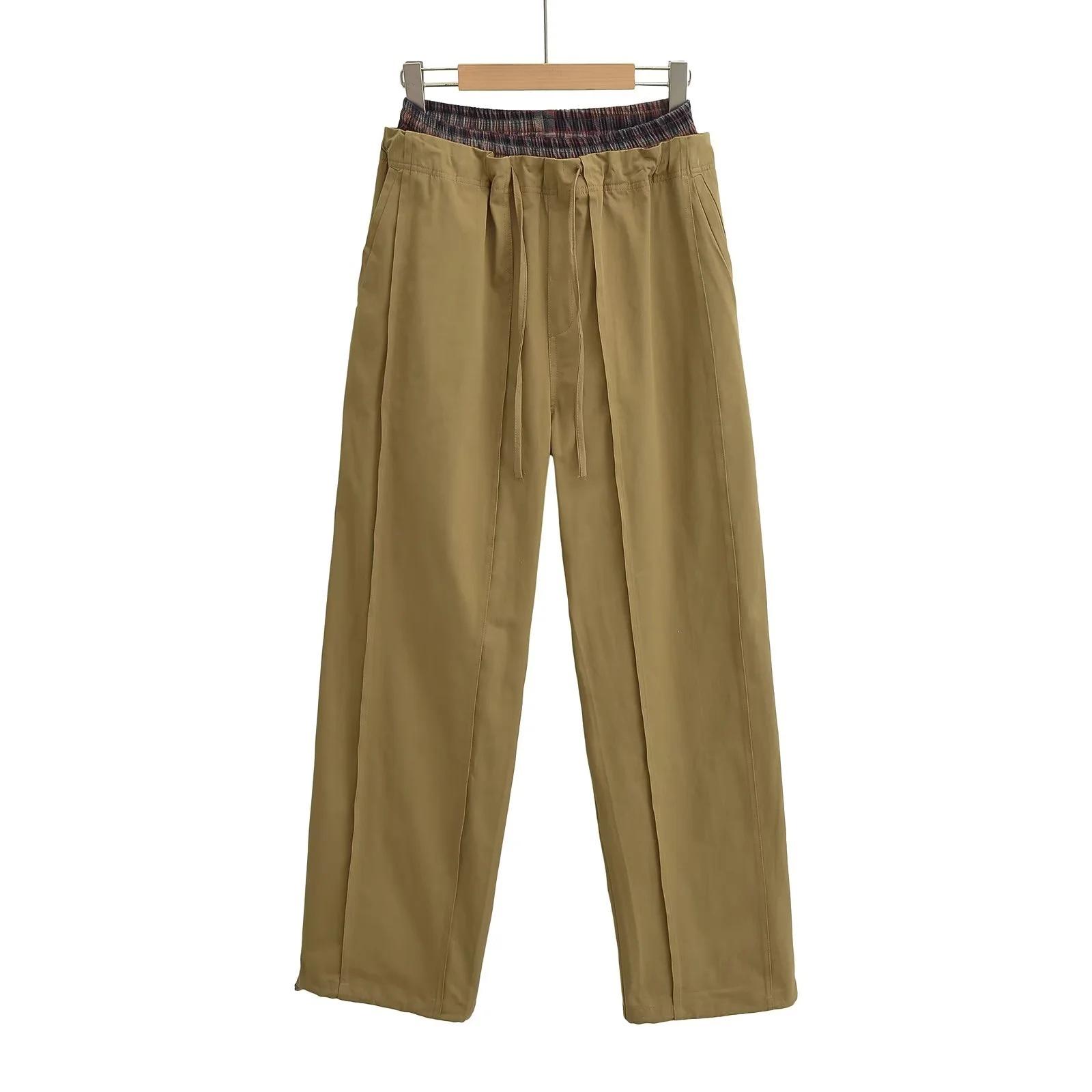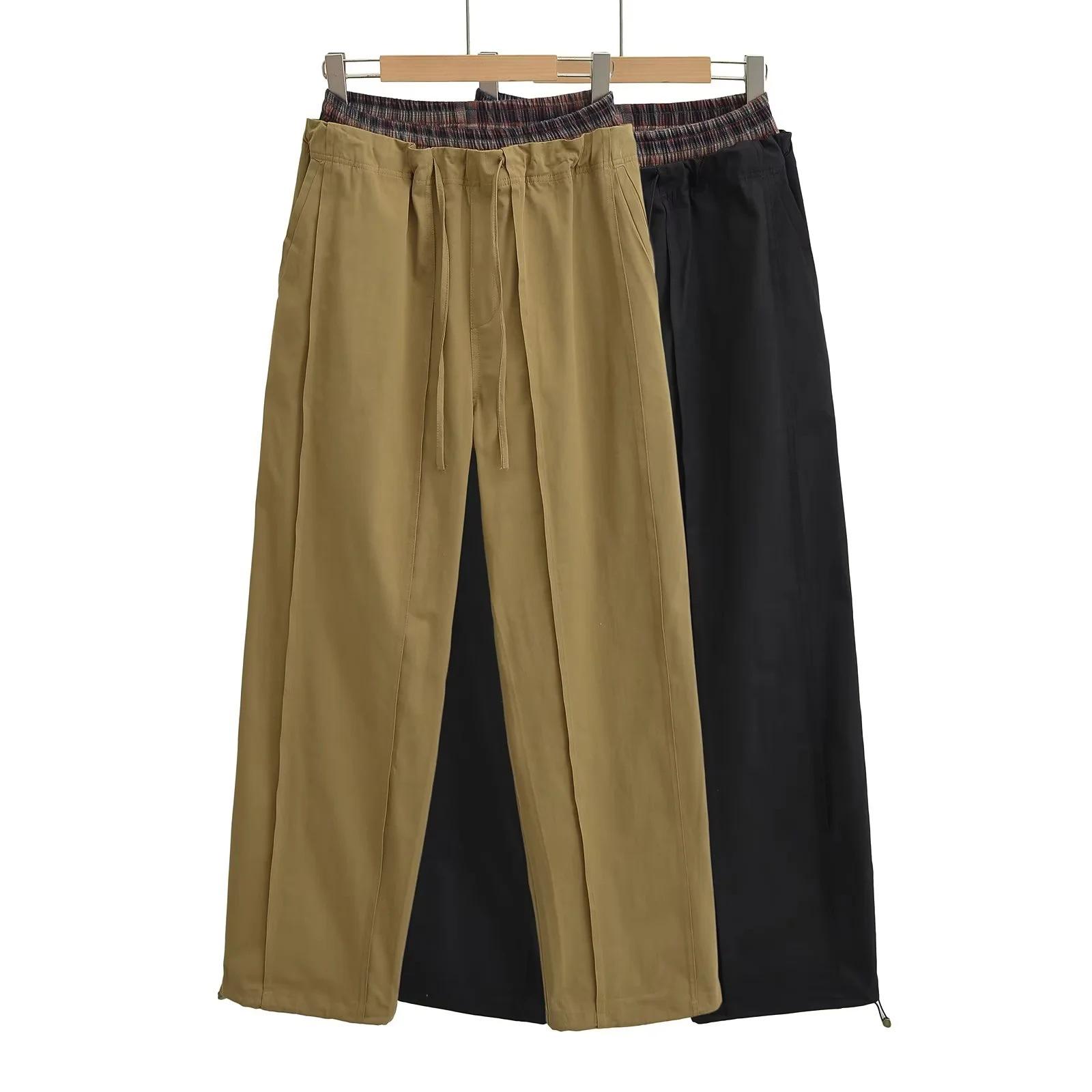 Otoño 2024 nuevo vintage costuras falso dos piezas elástico cintura baja overol mujer suelto adelgazante pierna ancha casual