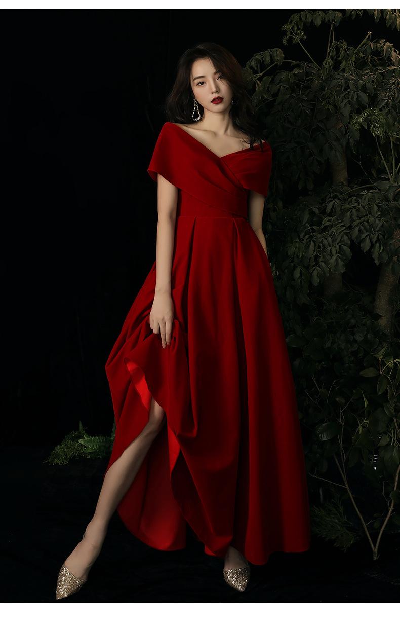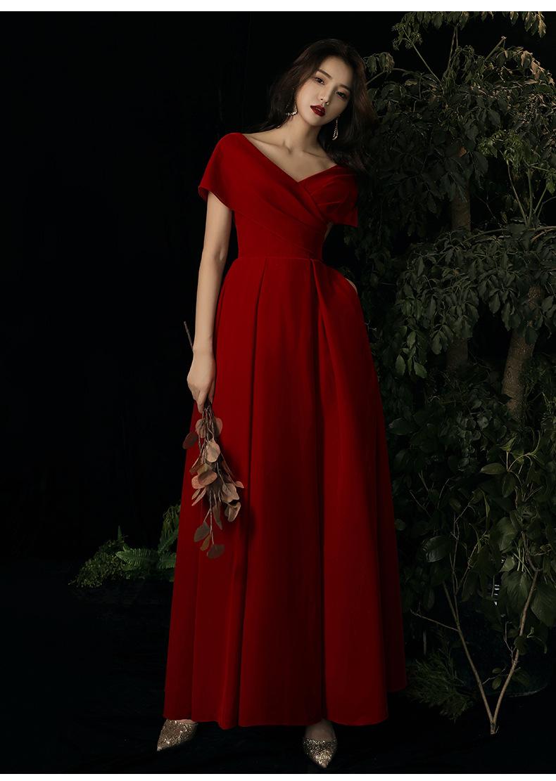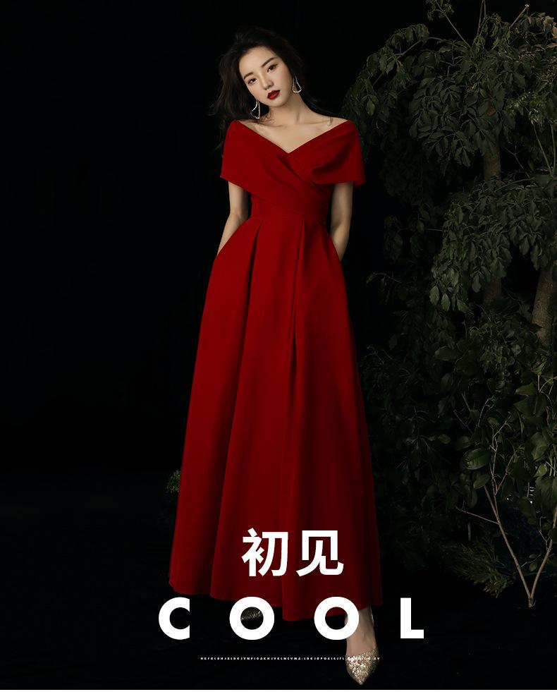 Toast Wear Novia 2025 Nuevo Verano y Primavera Vestido Largo de Noche de Banquete Borgoña Boda Vestido Puerta Trasera Cuello en V