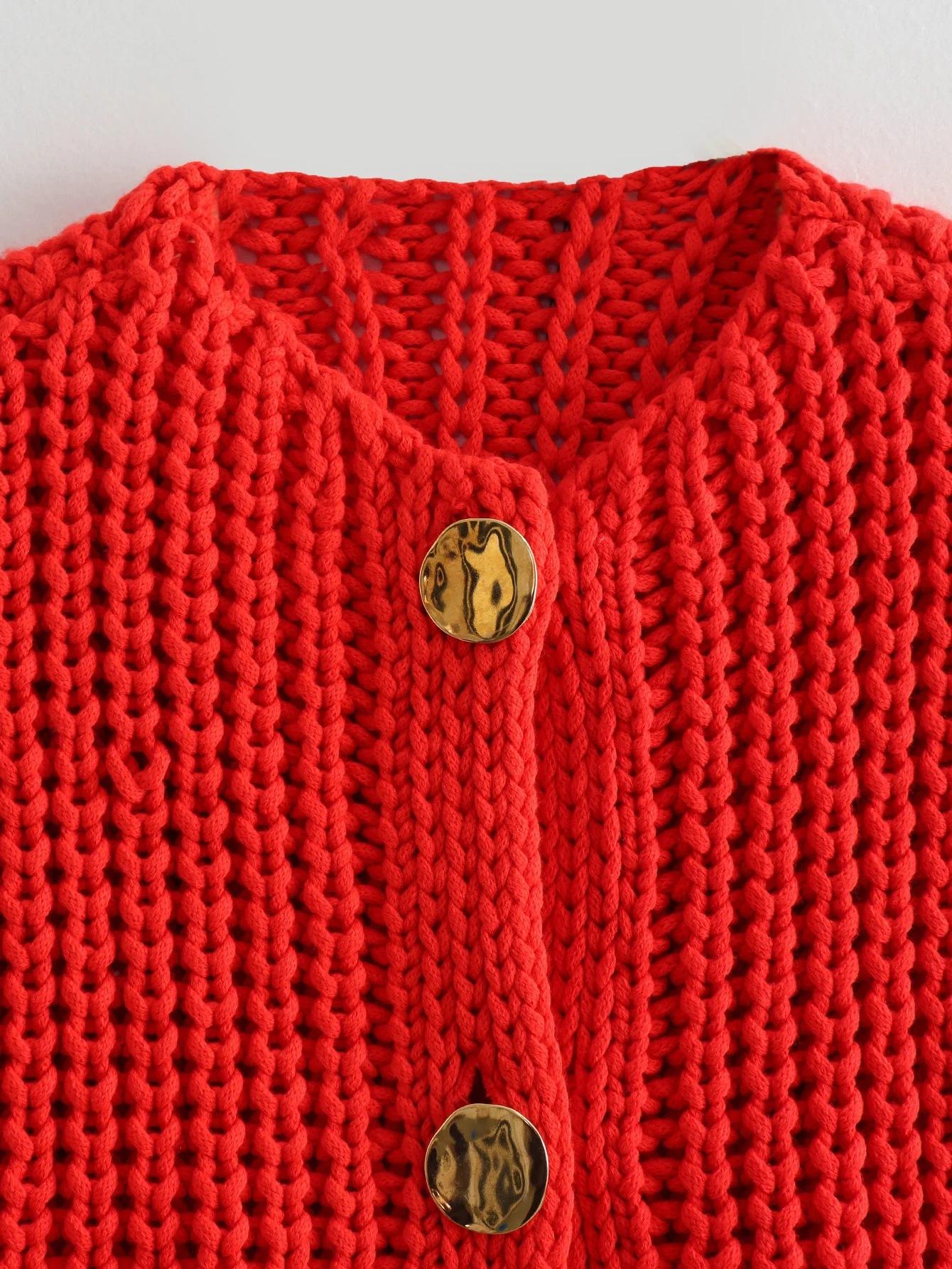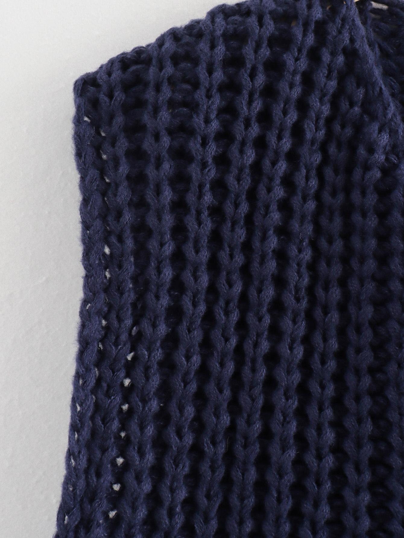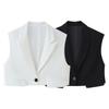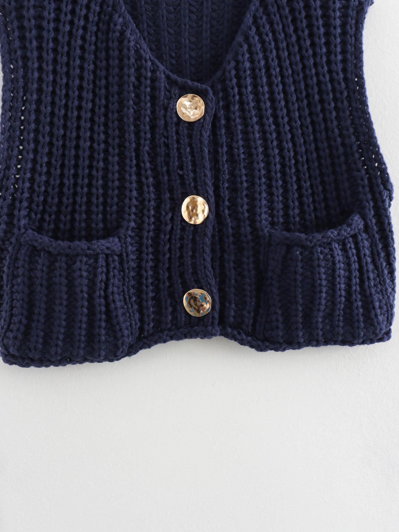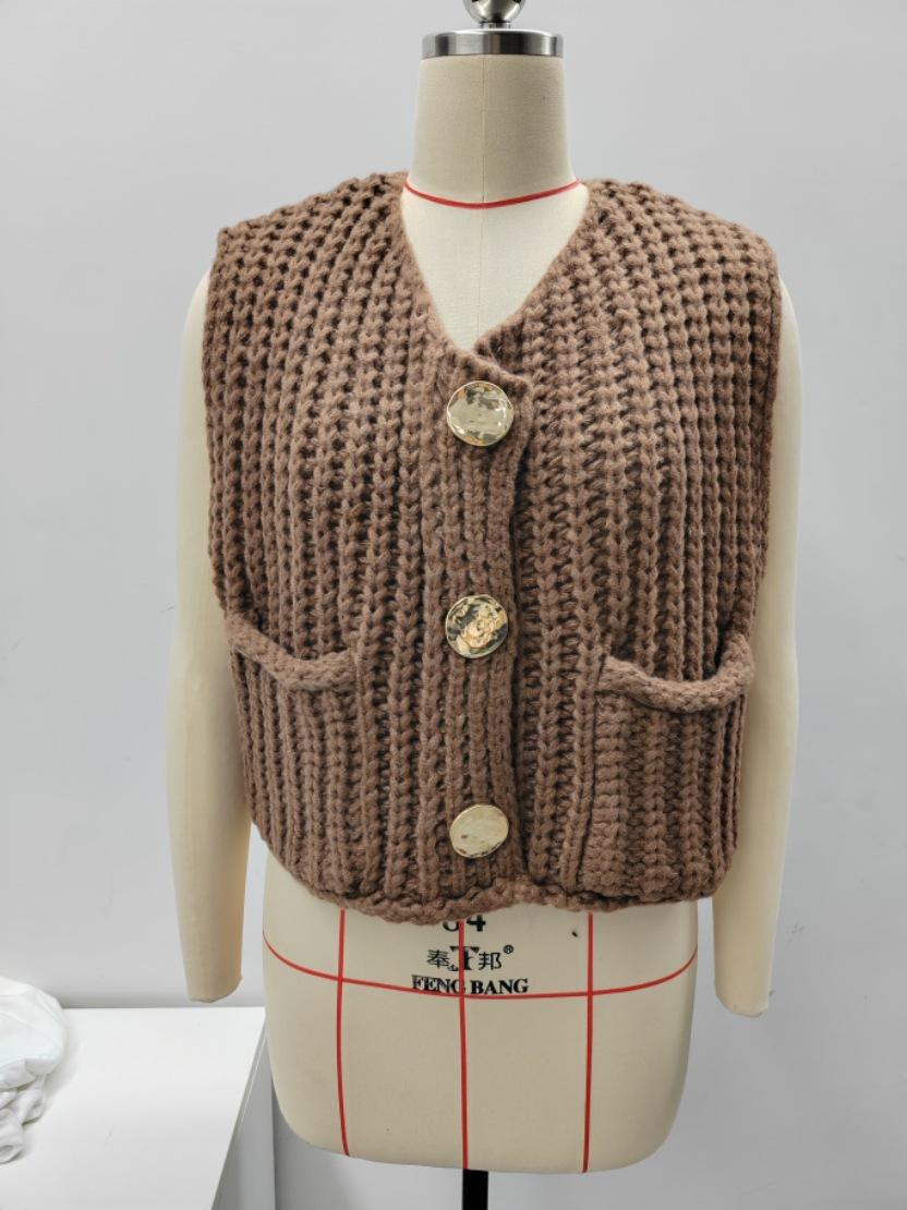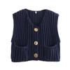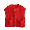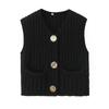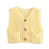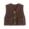 Amazon Transfronterizo 2025 Primavera y Otoño Nuevo Chaleco Cárdigan Corto de Punto sin Mangas con Bolsillos Estilo Europeo y Americano para Mujer