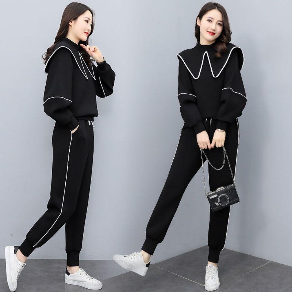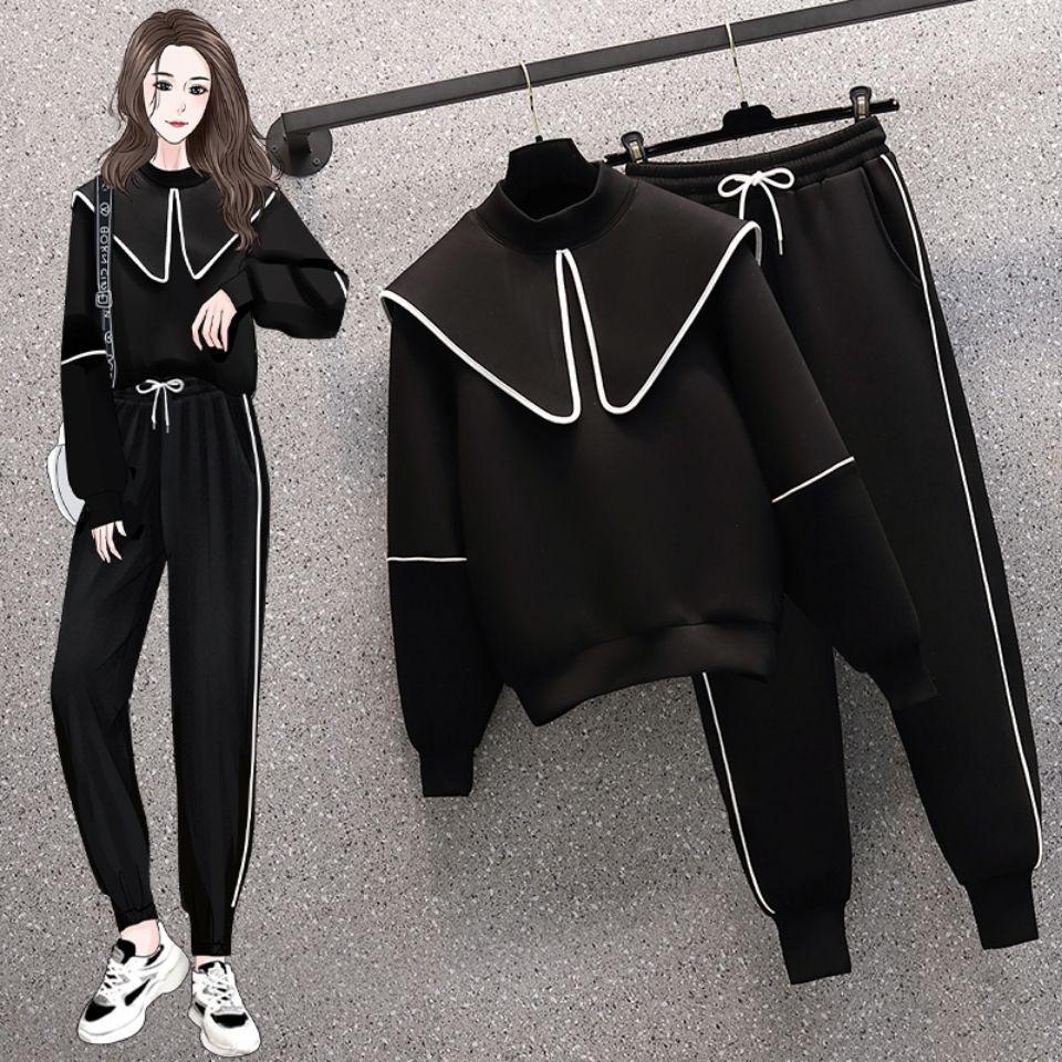 Traje deportivo de estilo coreano para mujer, primavera y otoño de 2023, nuevo conjunto de dos piezas de suéter informal de talla grande de estilo occidental de moda