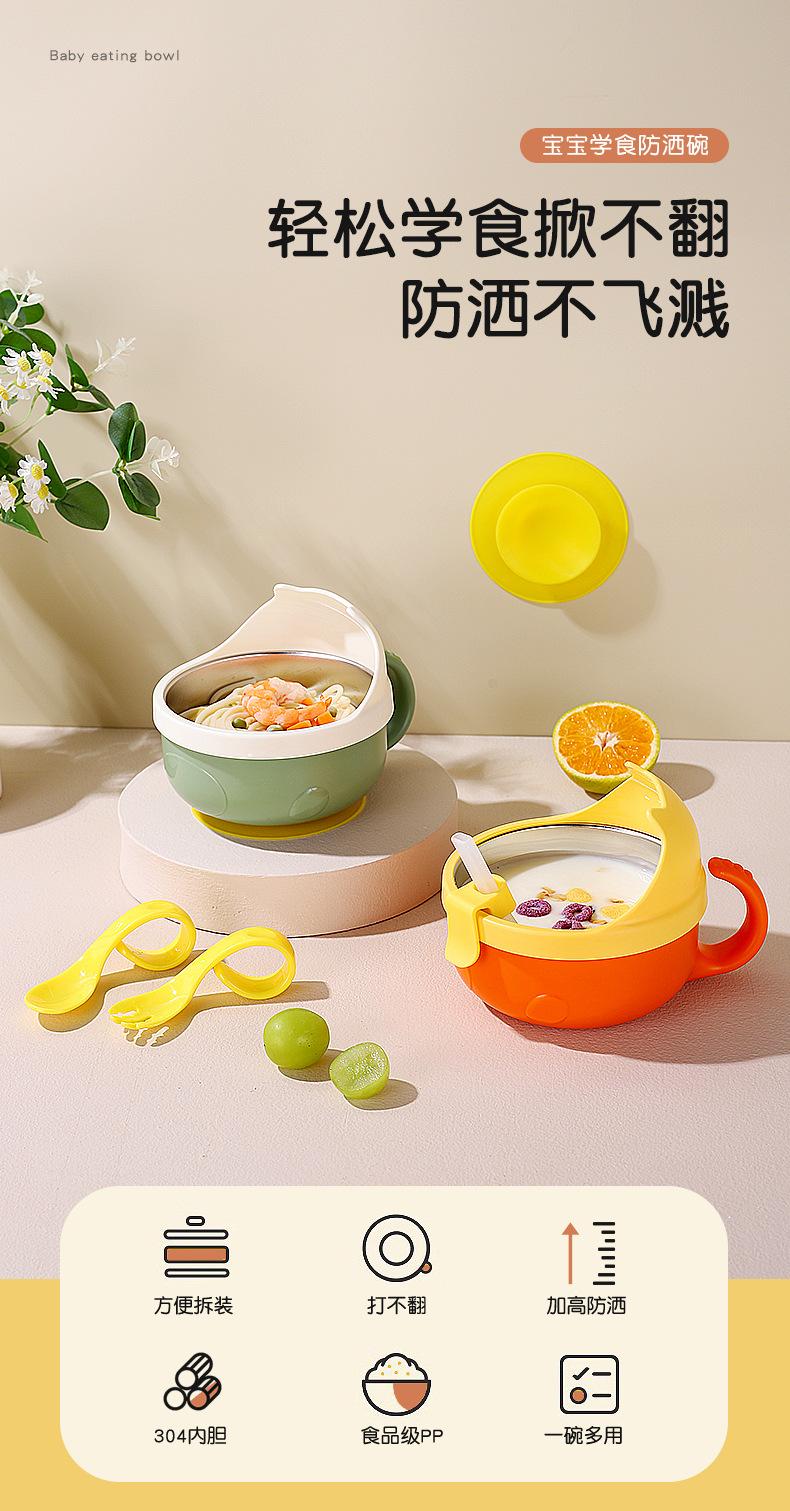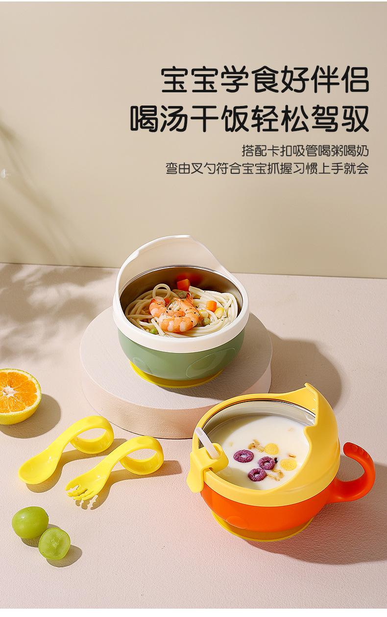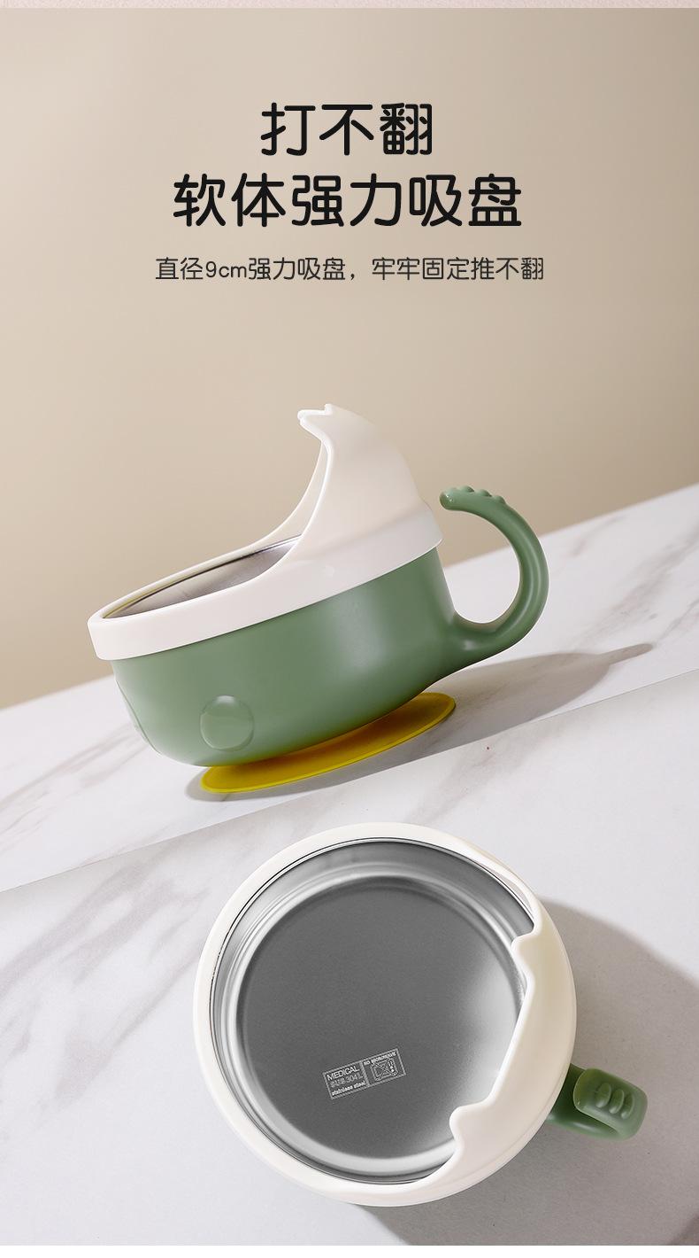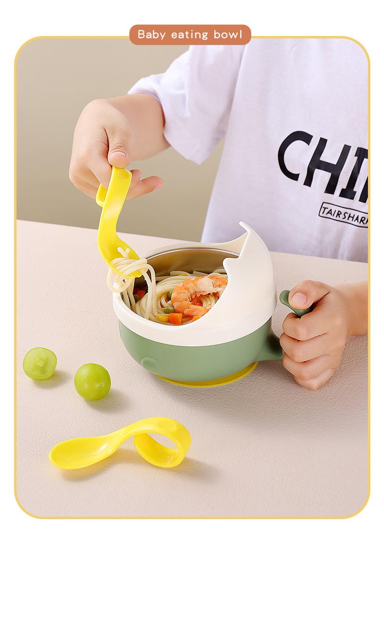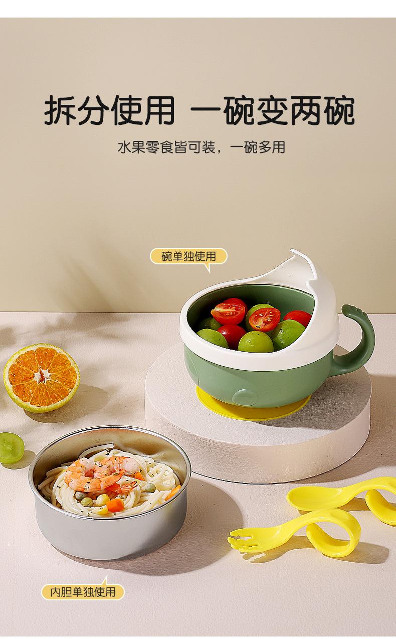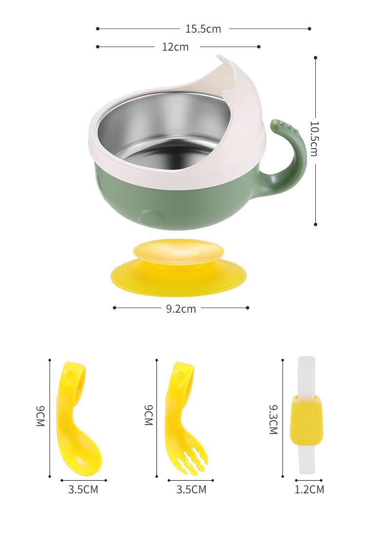 Complemento alimenticio de acero inoxidable para bebés transfronterizos, tazón con cuchara, tazón con ventosa para bebés, tazón de comida para niños resistente a caídas, vajilla para entrenamiento de alimentación.